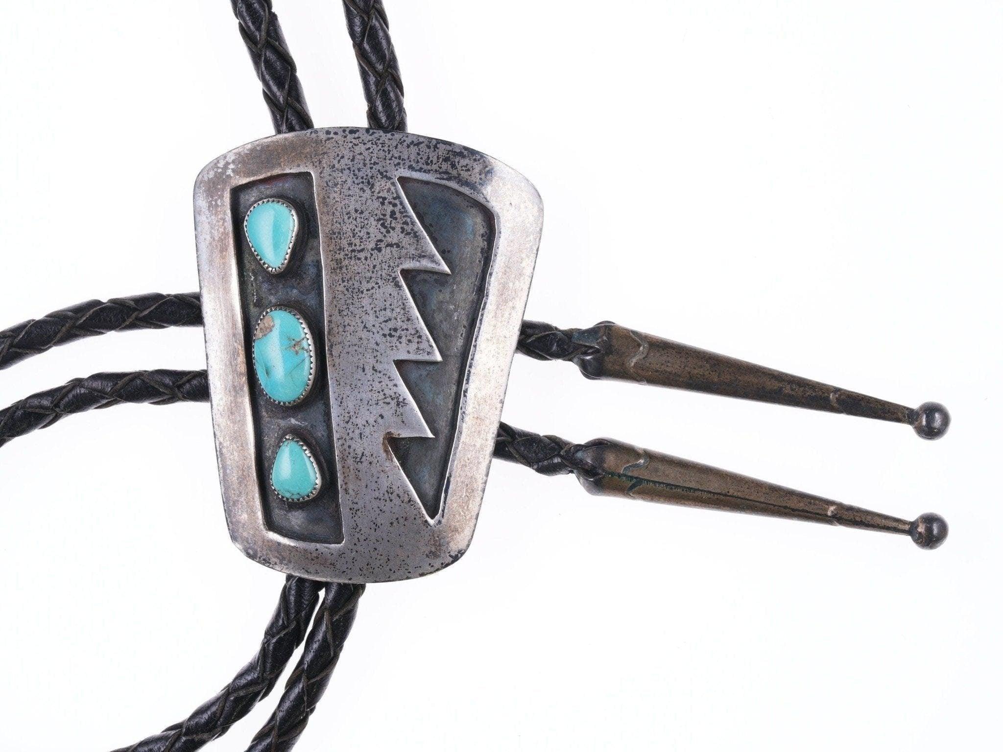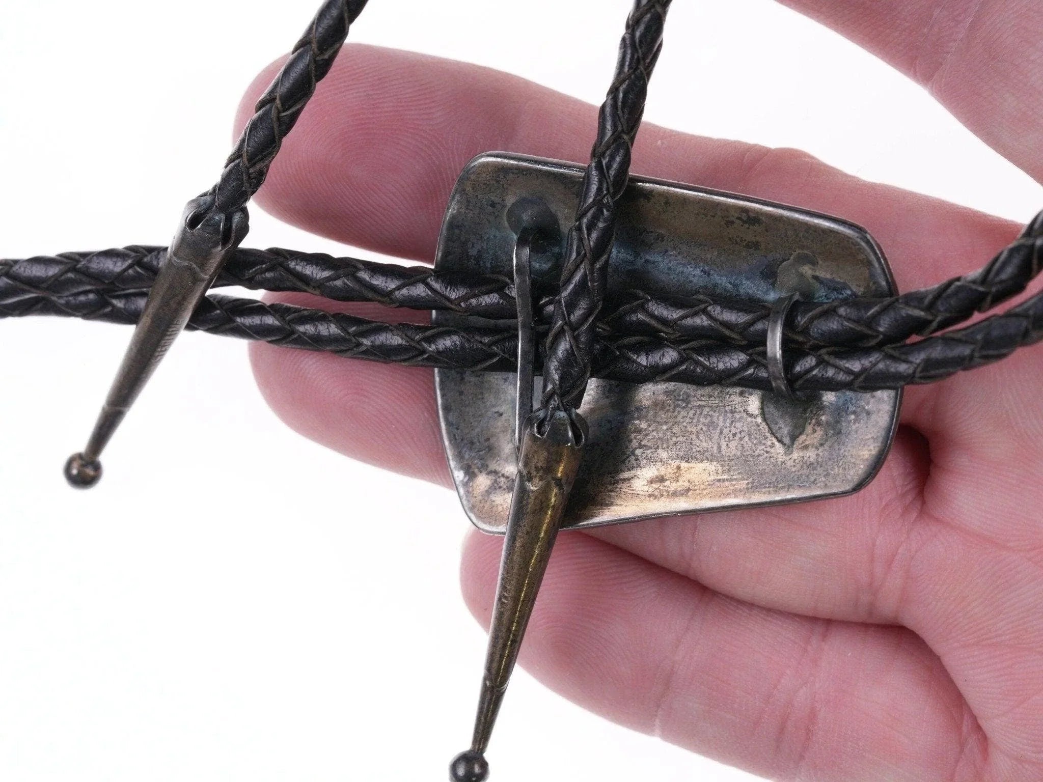40's-50's Navajo Silver overlay style bolo tie with turquoise