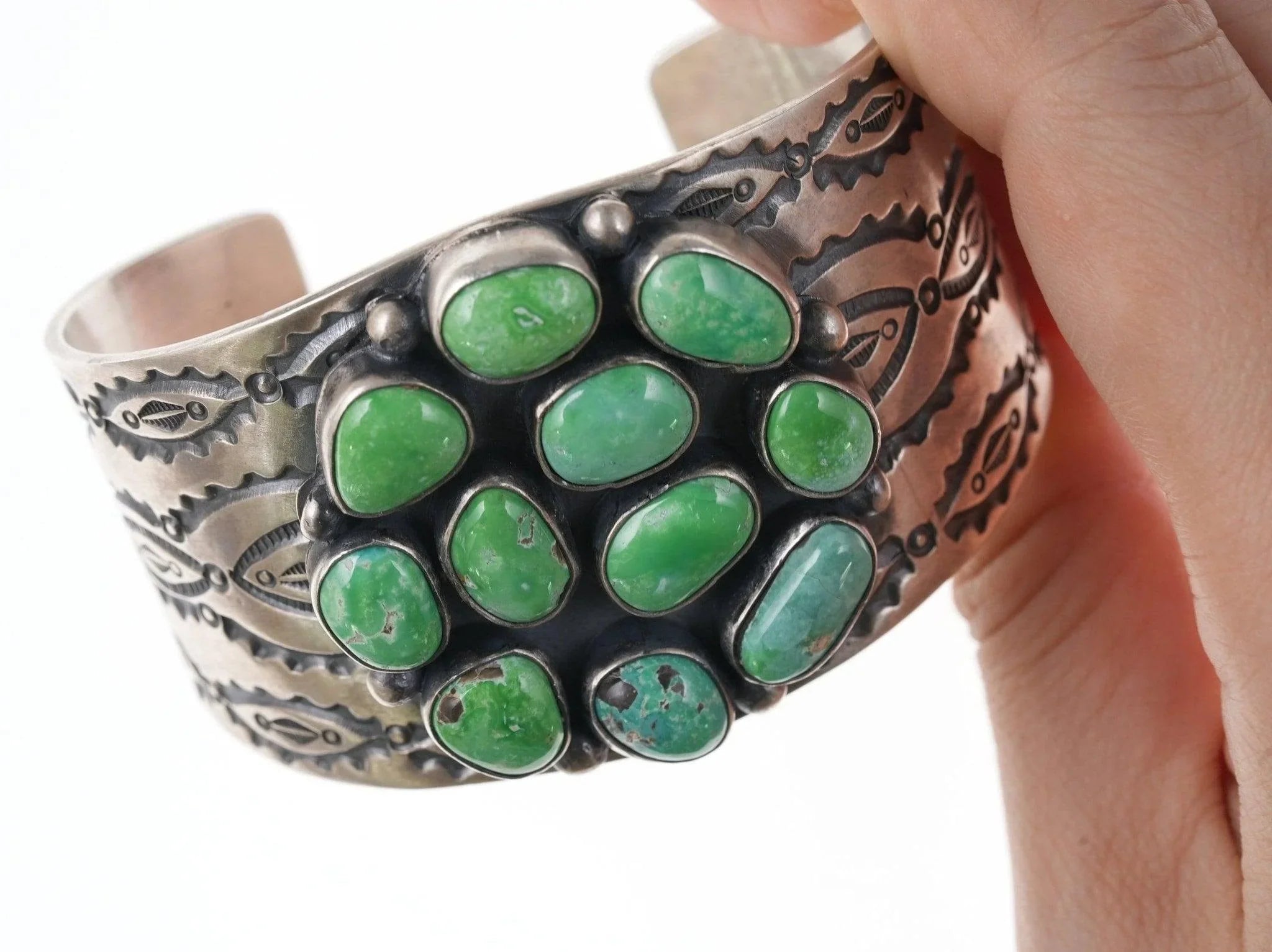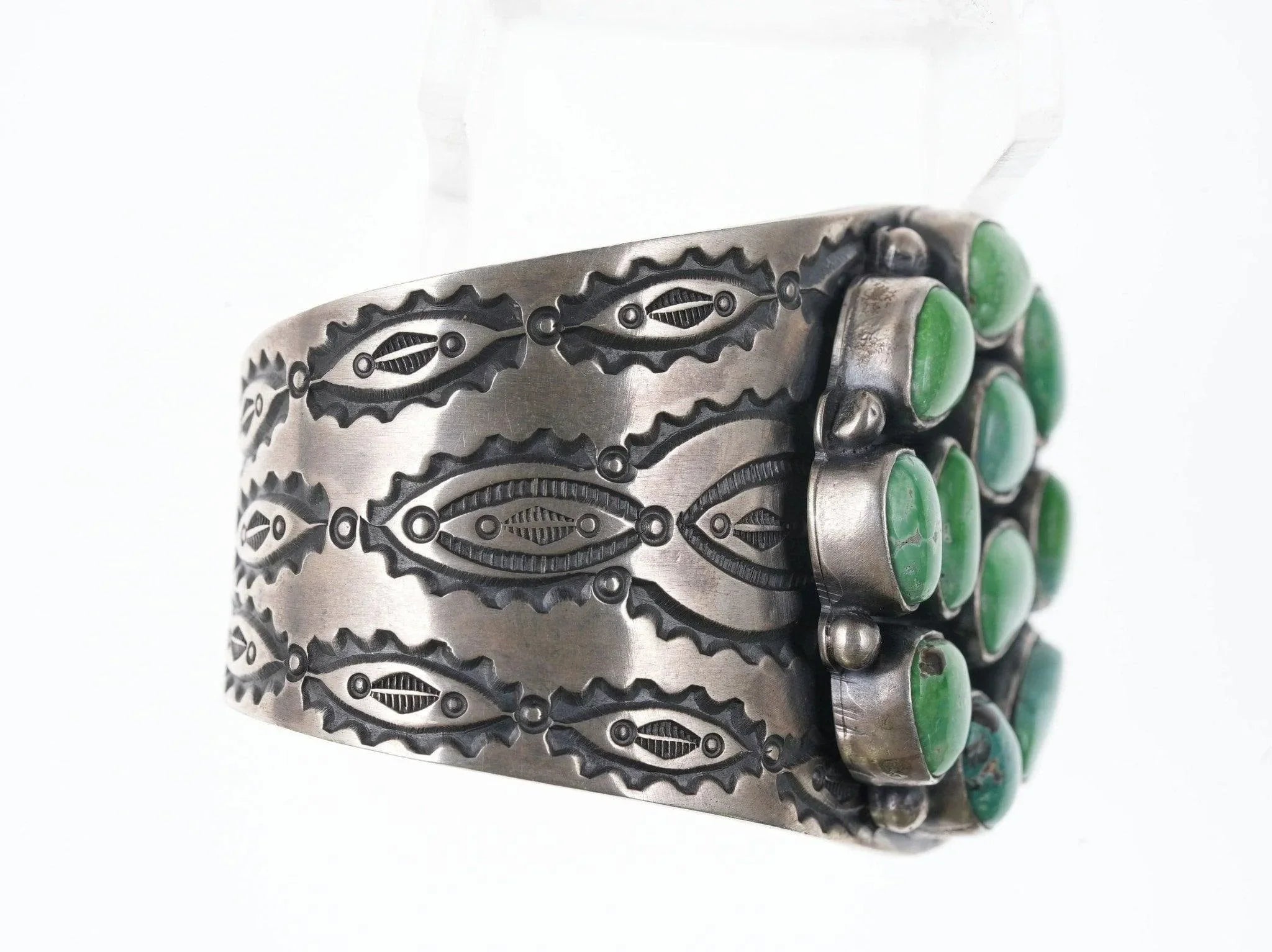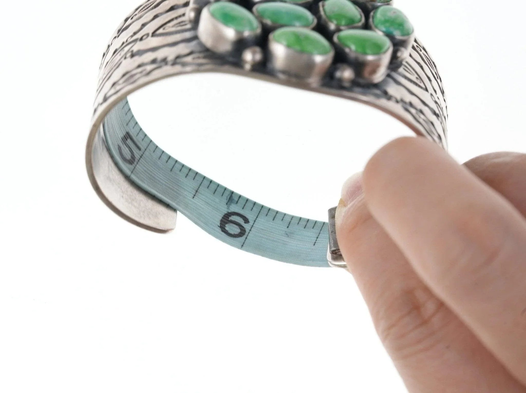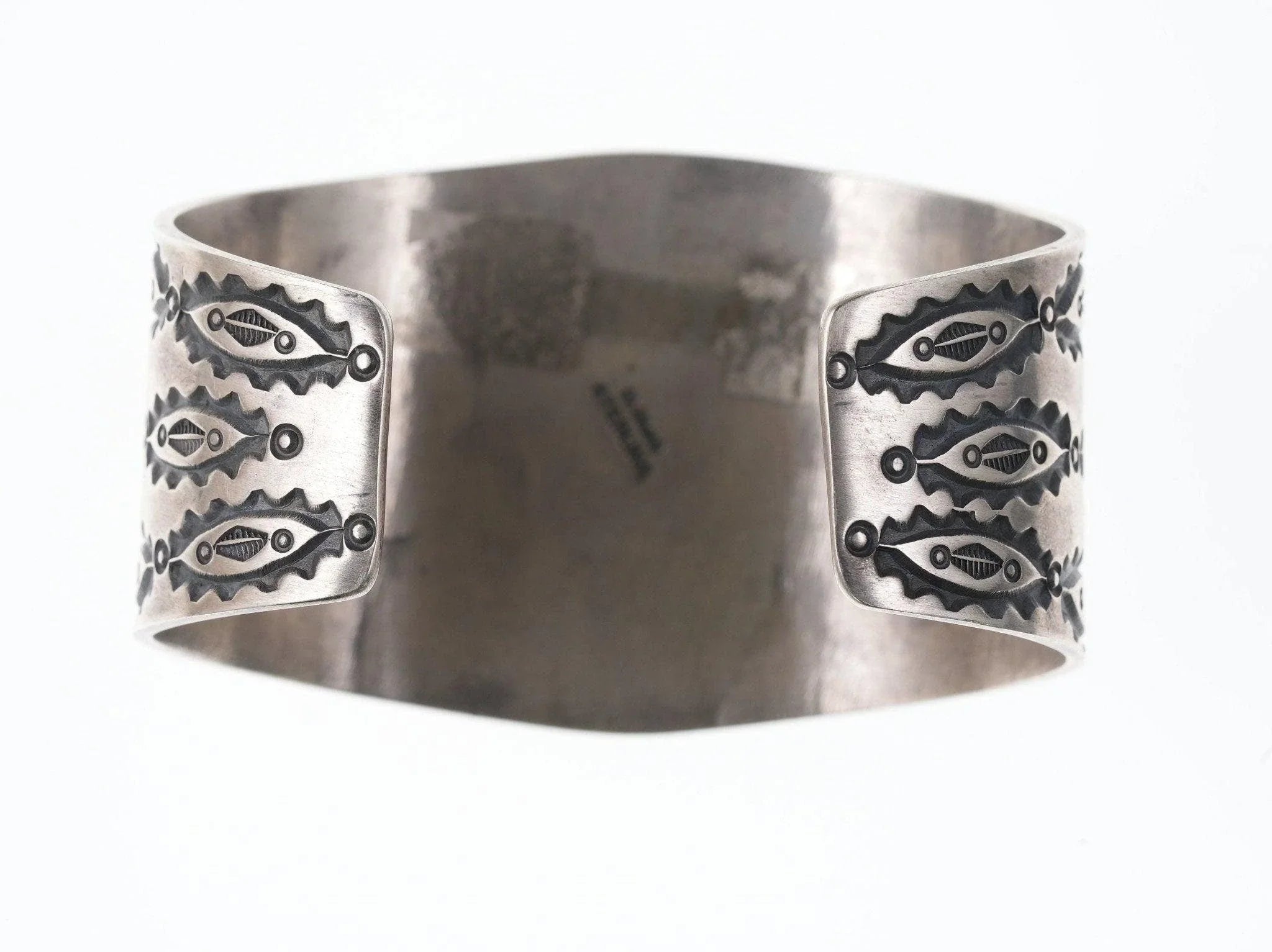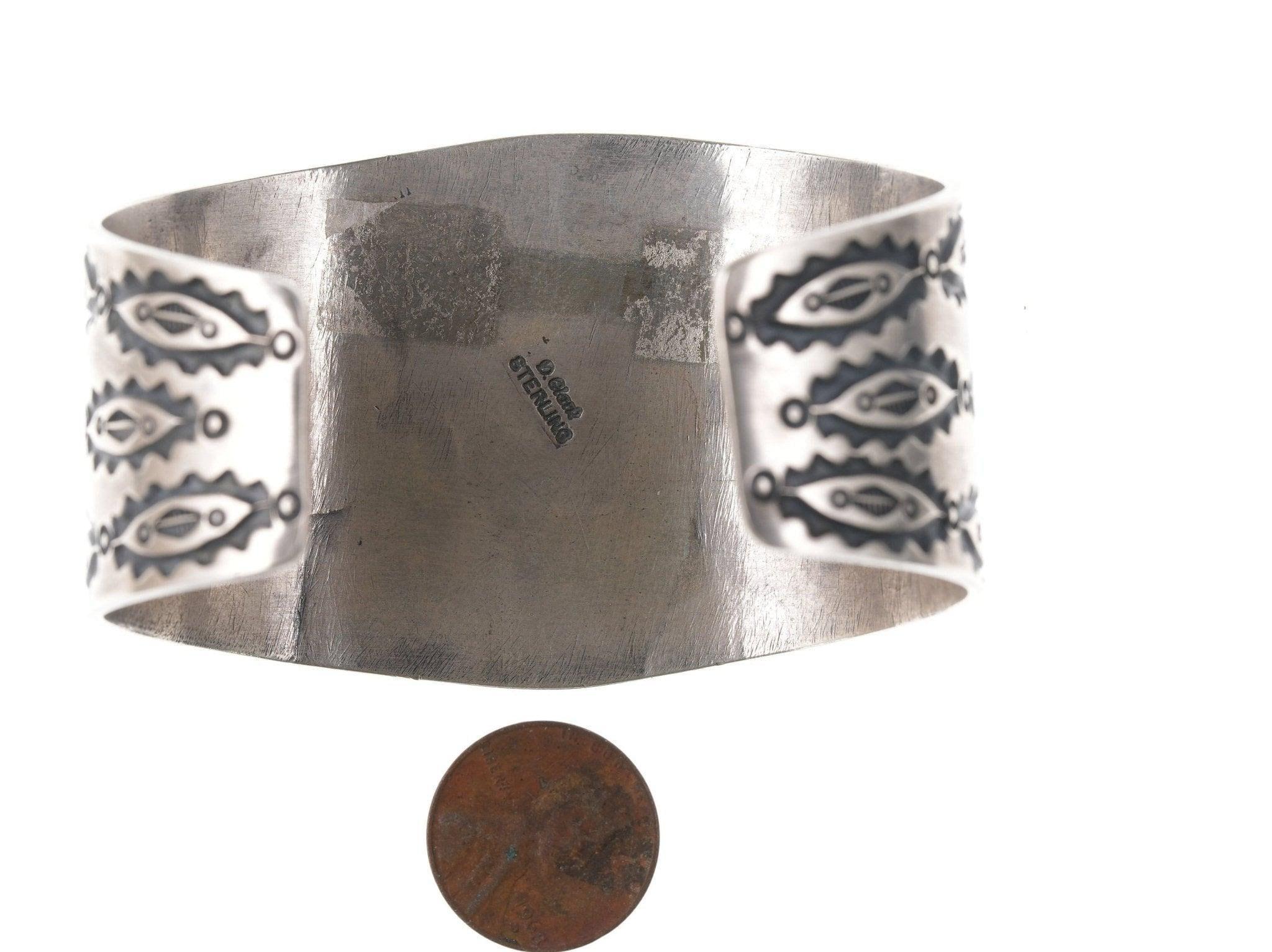 6.75" Navajo Danny Clark Carrico lake turquoise heavy stamped sterling cuff<br>bracelet. No damage or significant wear, fits up to a 6.75" wrist.<br><br>Danny Clark<br>The youngest in a family of 11 children, Dine' silversmith Danny Clark grew up<br>in Klagetoh, Arizona. With his father being a silversmith, Danny carries on the<br>family and cultural tradition. Living now in Gallup, New Mexico, he loves the<br>work that he does. Danny's work is often detailed, including intricate elements<br>such as feathers, flowers, and starbursts integrated with traditional forms. His<br>range of silversmithing skills is apparent in the myriad of design styles he is<br>able to excel at, from most traditional to contemporary. He is especially<br>inspired by the natural world for his designs and finds these perfect forms of<br>nature make a piece of jewelry more beautiful.