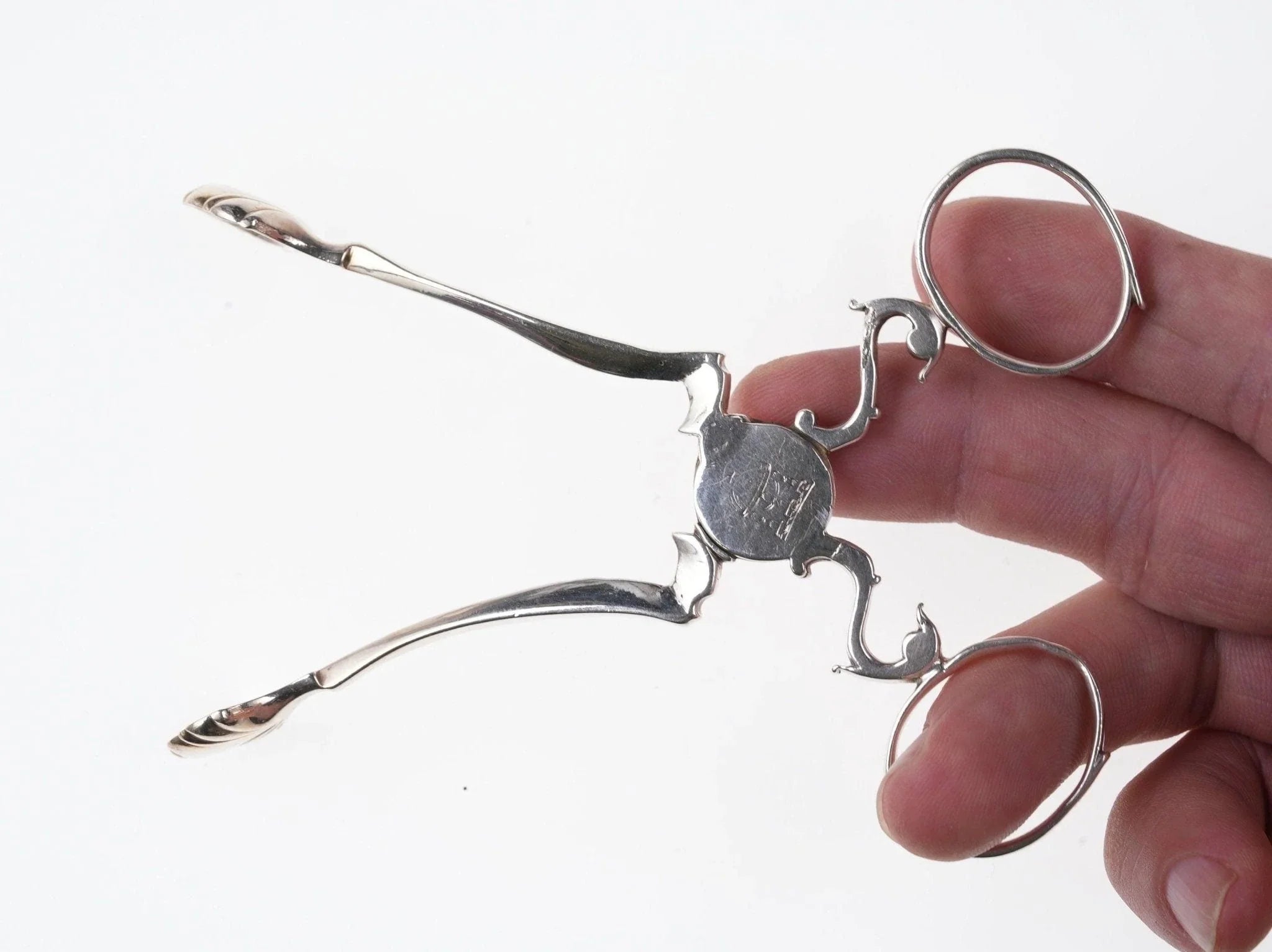18th Century Armorial silver Sugar Nips 4 7/8" long, tight with no issues. Hallmarks as shown. silverdrawer