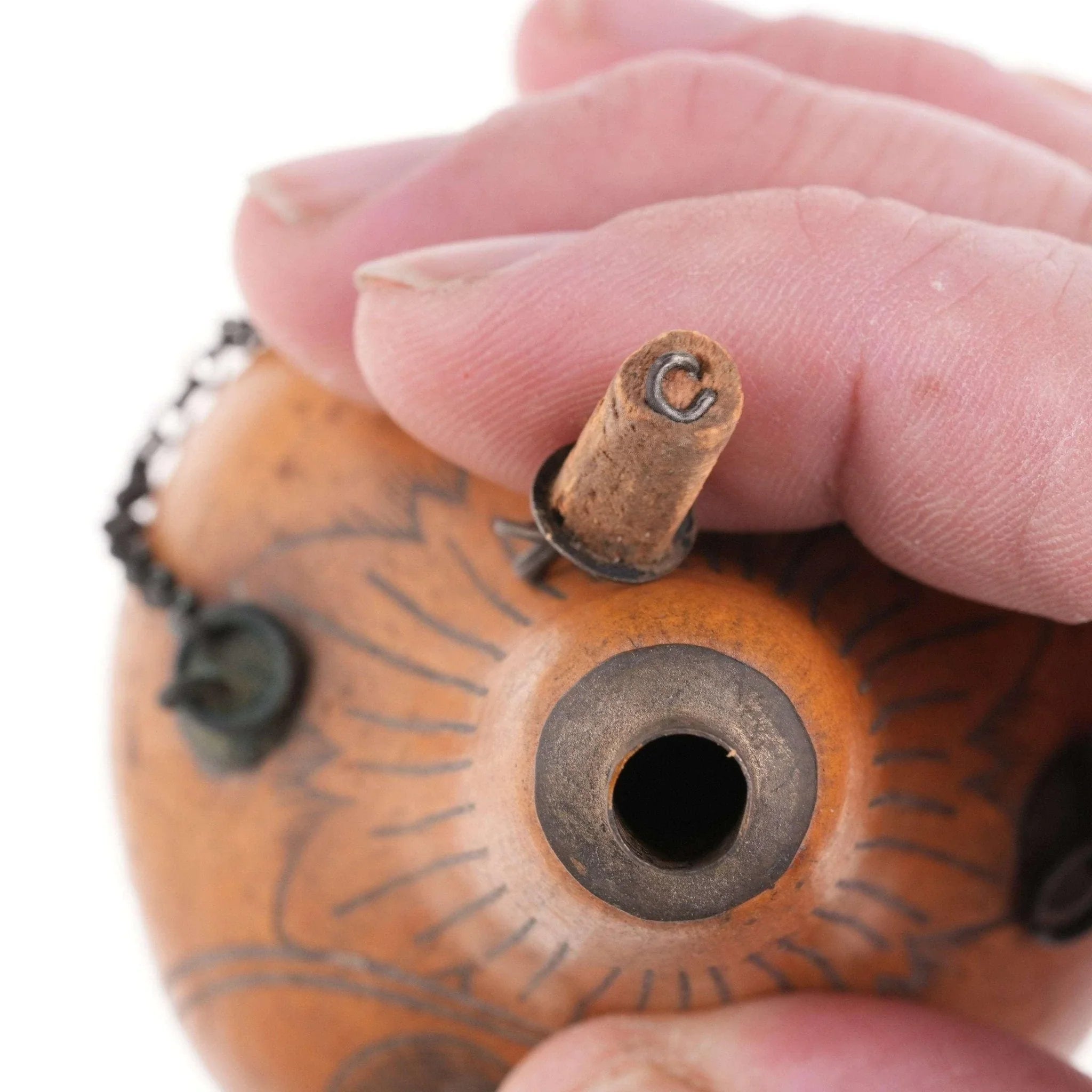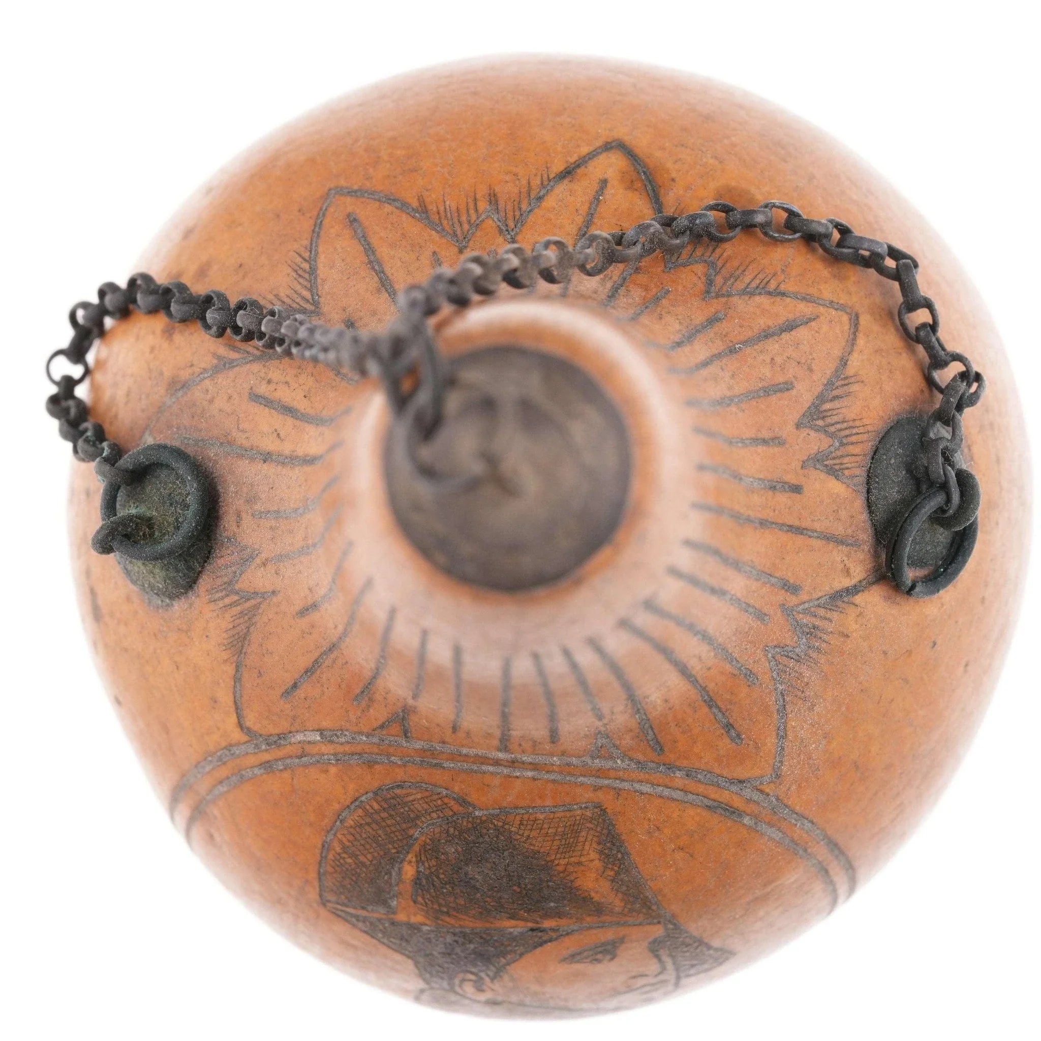 c1890 French Napoleonic Carved Gourd bottle. A '92 on the base could likely be the production date. 3.5" tall x 2 5/8" wide with no issues, been enjoyed on a shelf for over 100 years. trinketdrawer