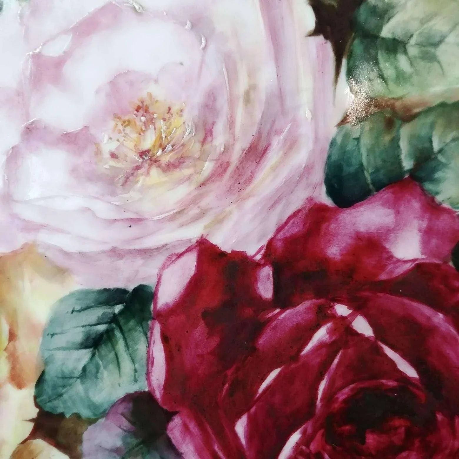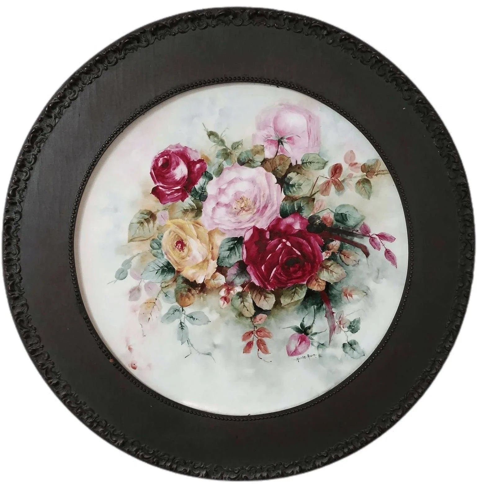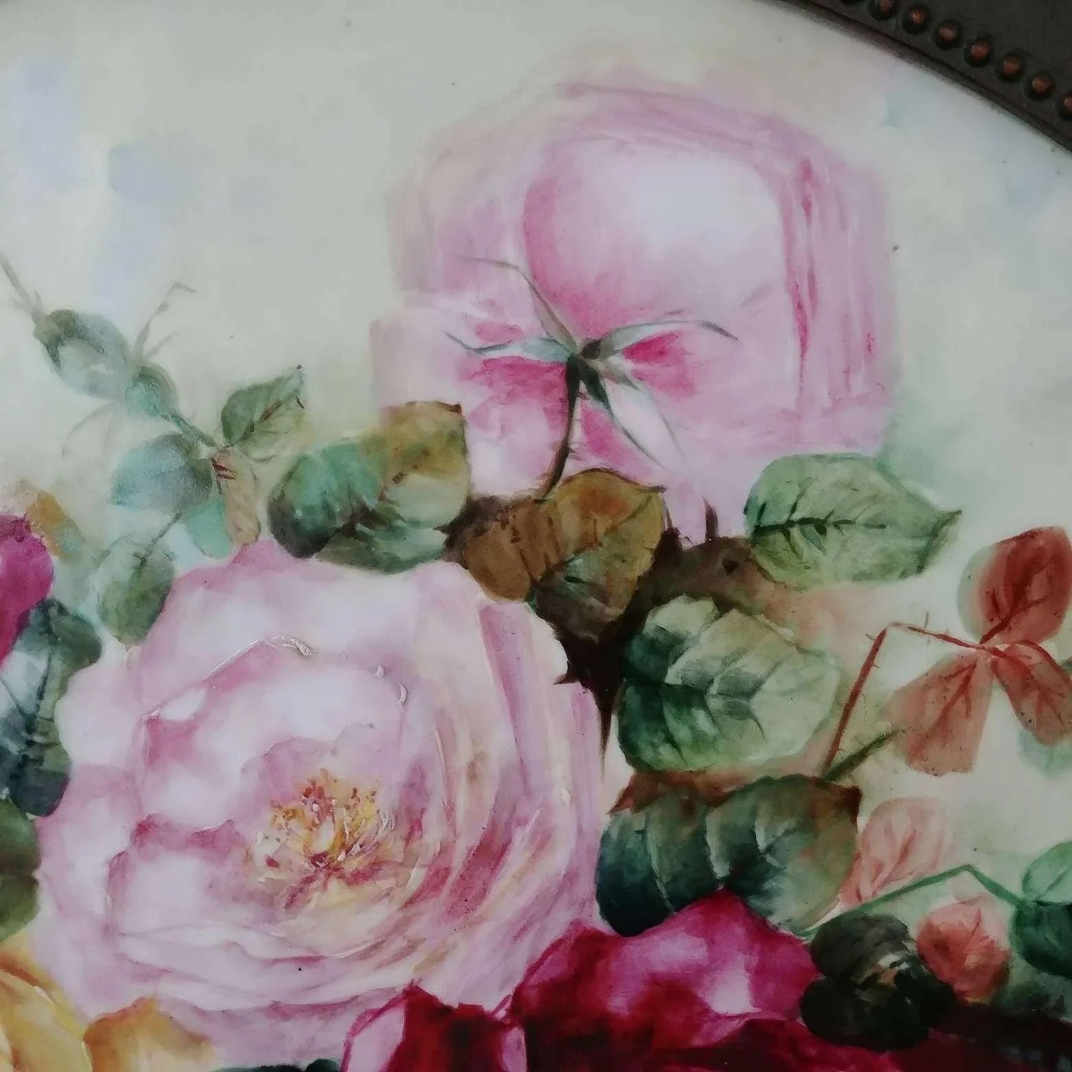 JPL Limoges Porcelain Plaque Jean Pouyat C.1900 Artist Signed 18" With Roses an
