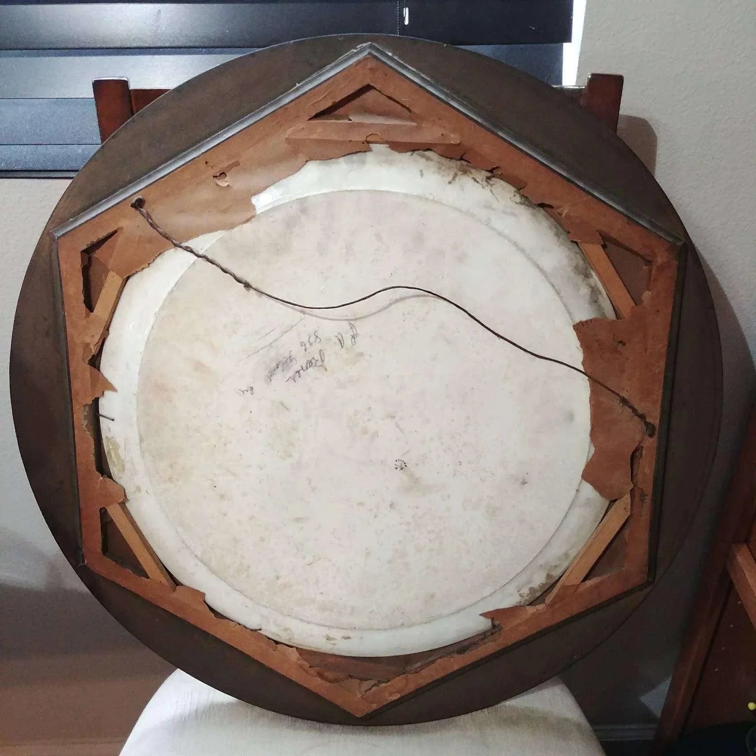 Sure to be the star of any collection or room it's in. It measures 18" without<br>the frame and 23 7/8" with. A graceful work of art that will blend in with most<br>settings. The porcelain is perfect with no damage or wear. The frame is clean<br>but missing four of the beads surrounding the plaque.