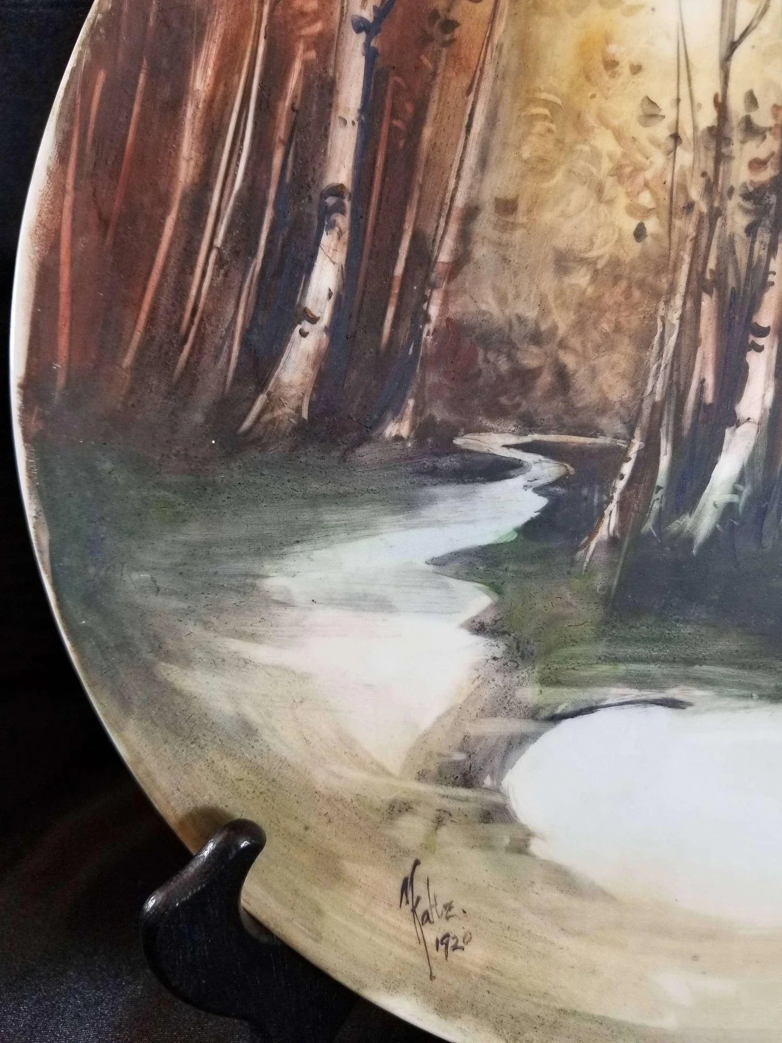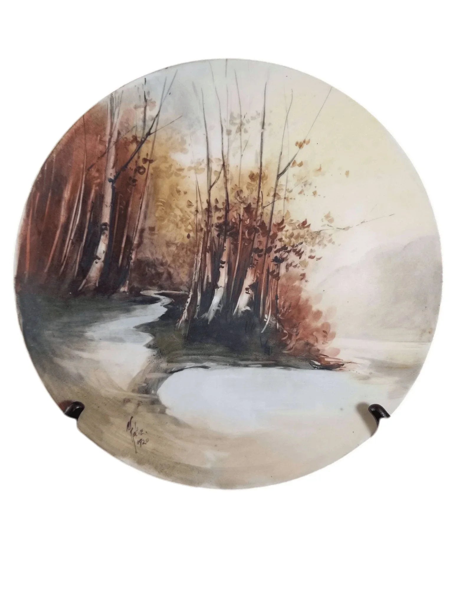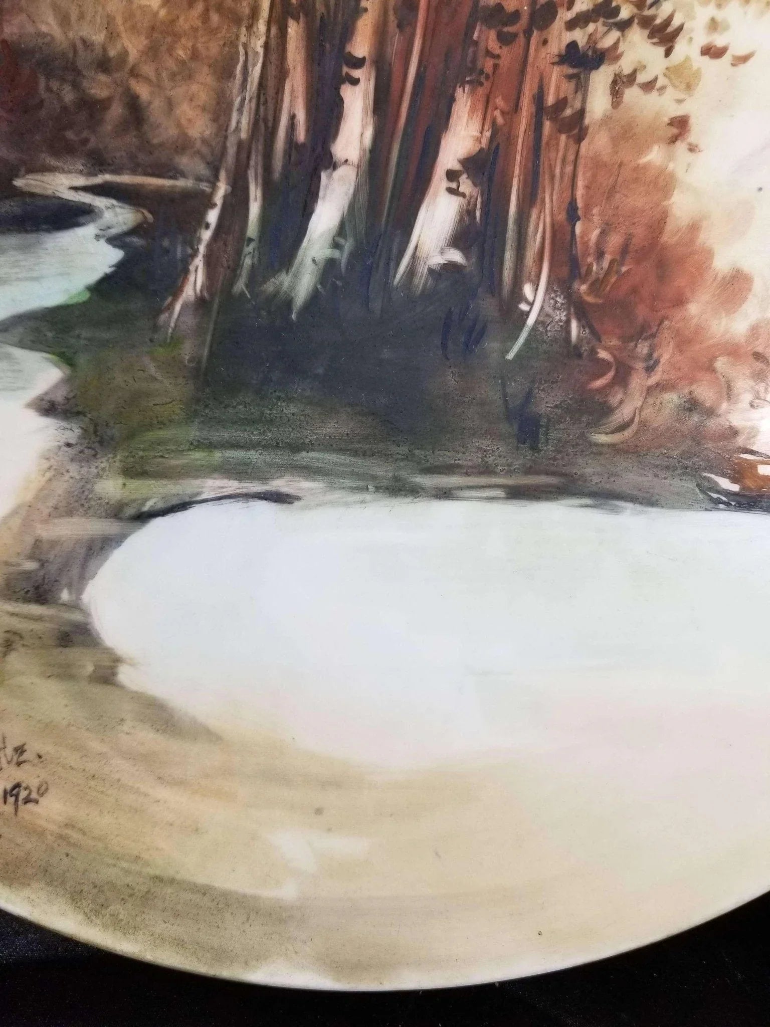 Limoges Porcelain Plaque Artist Signed and Dated 1920 11.75" woodland Scene T&V