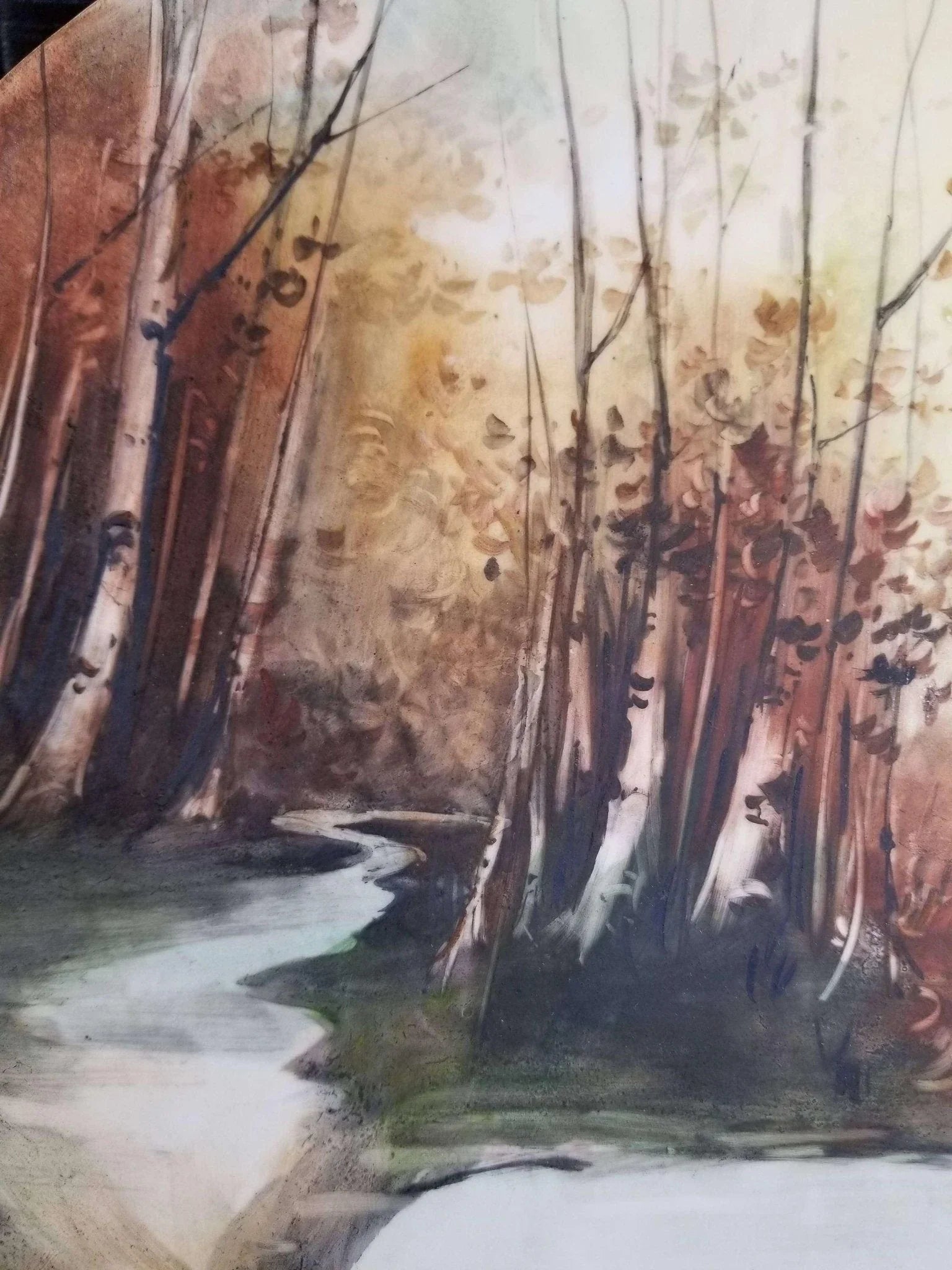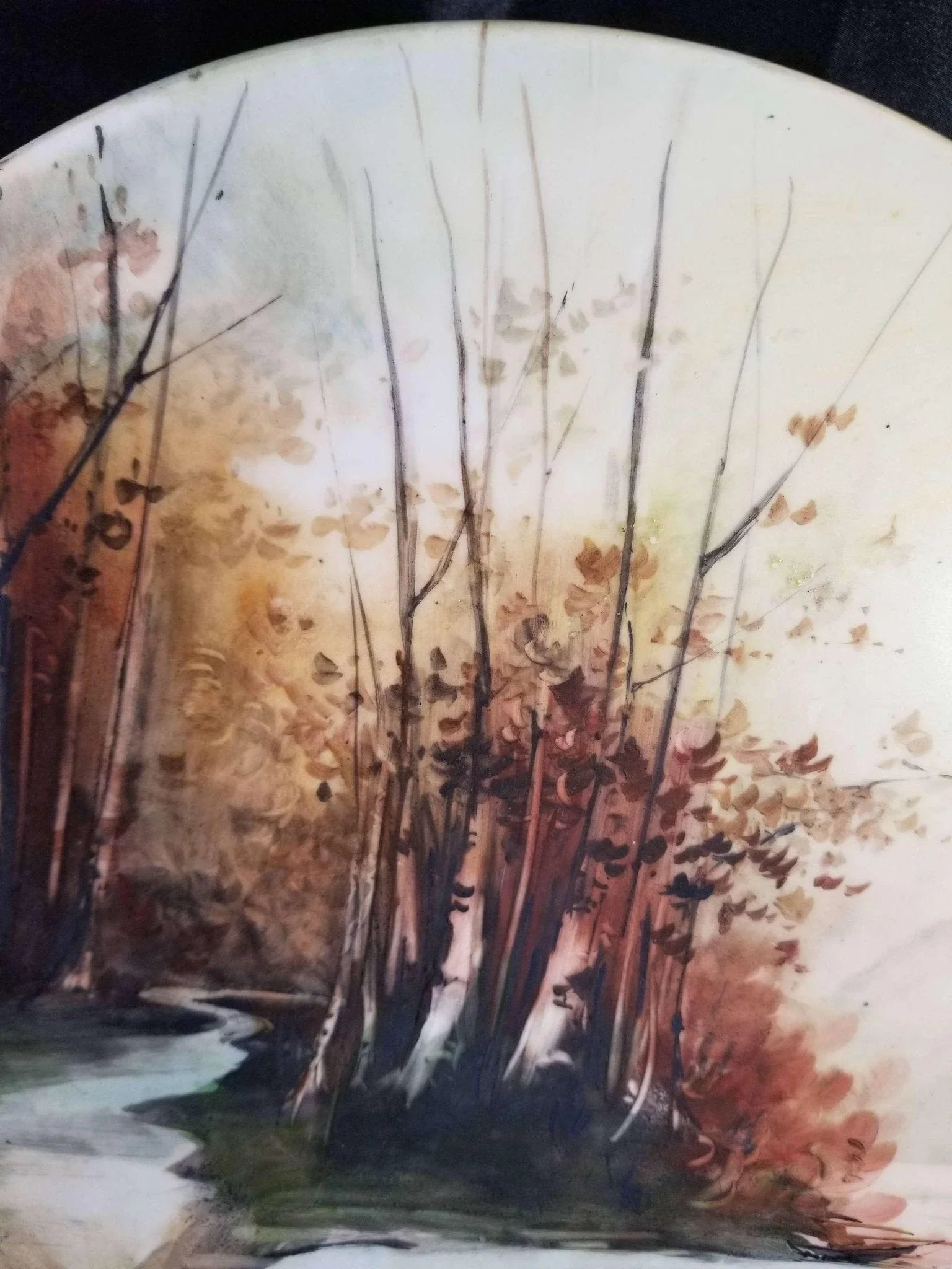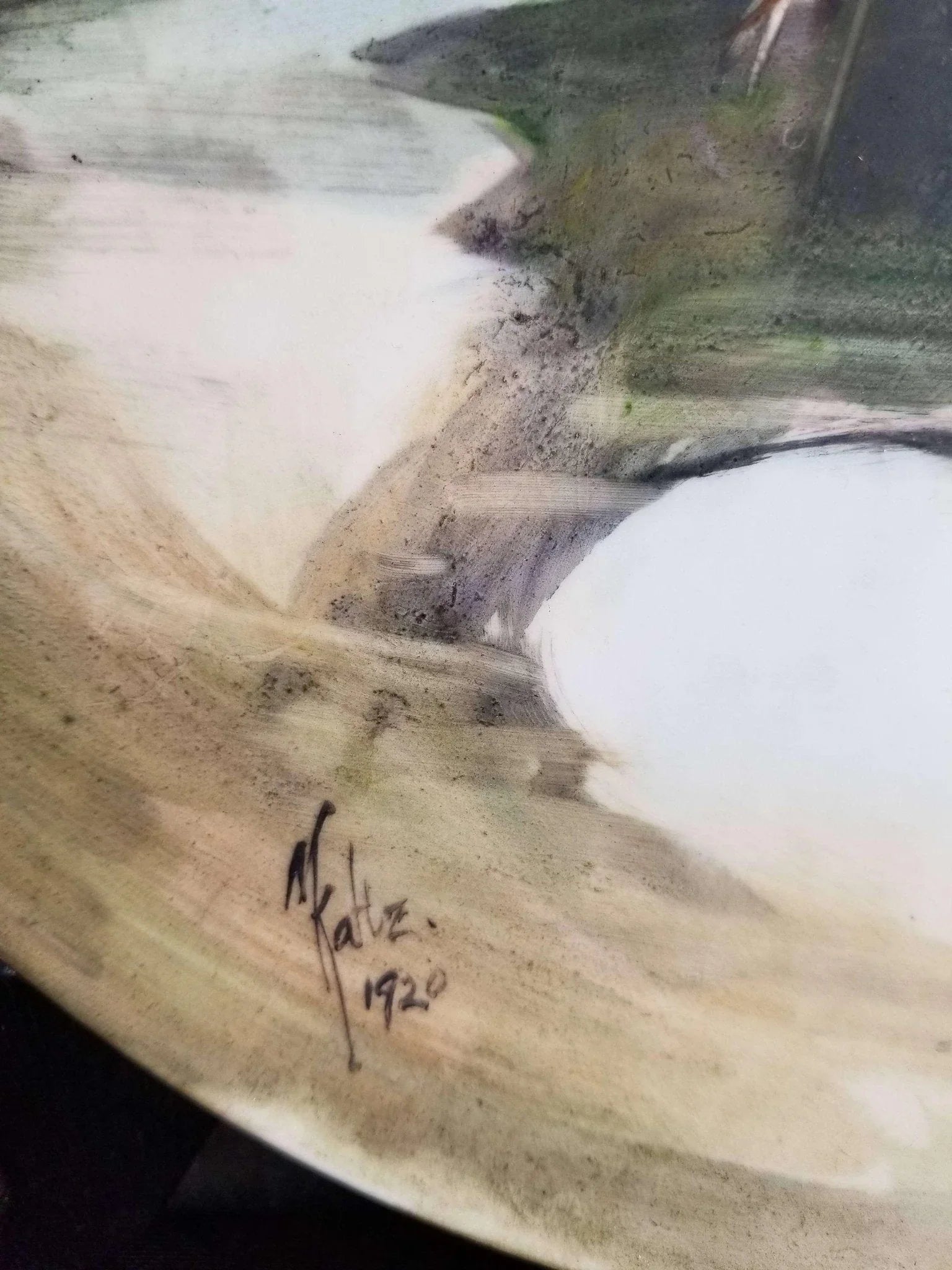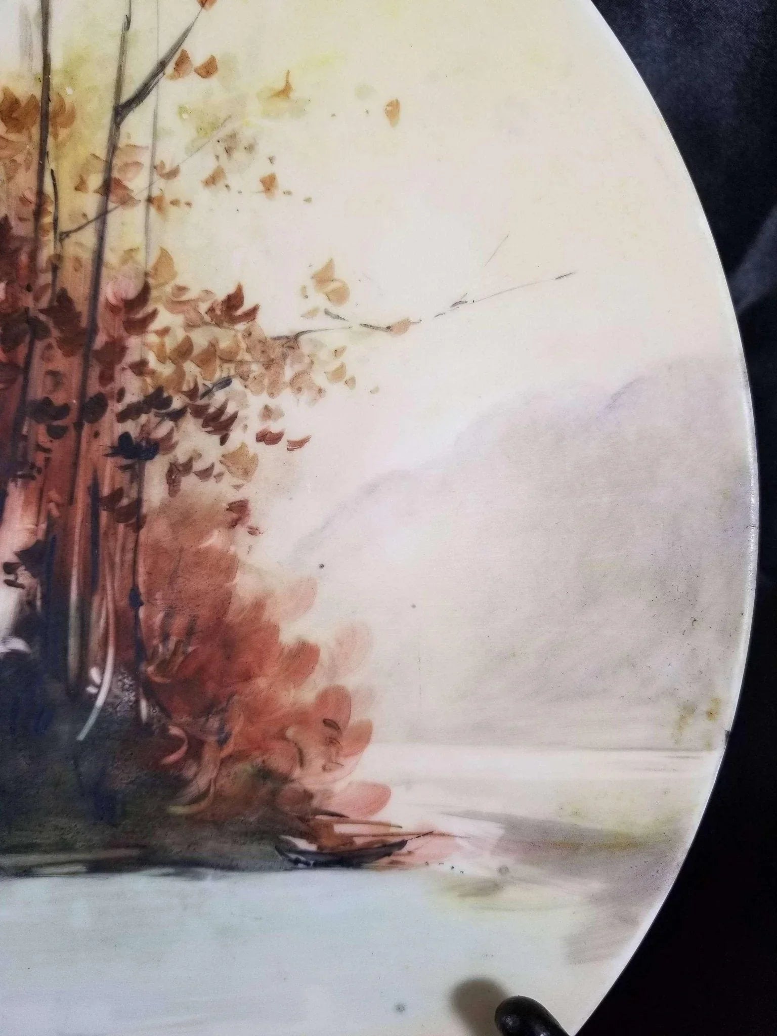 Limoges Porcelain Plaque Artist Signed and Dated 1920 11.75" woodland Scene T&V