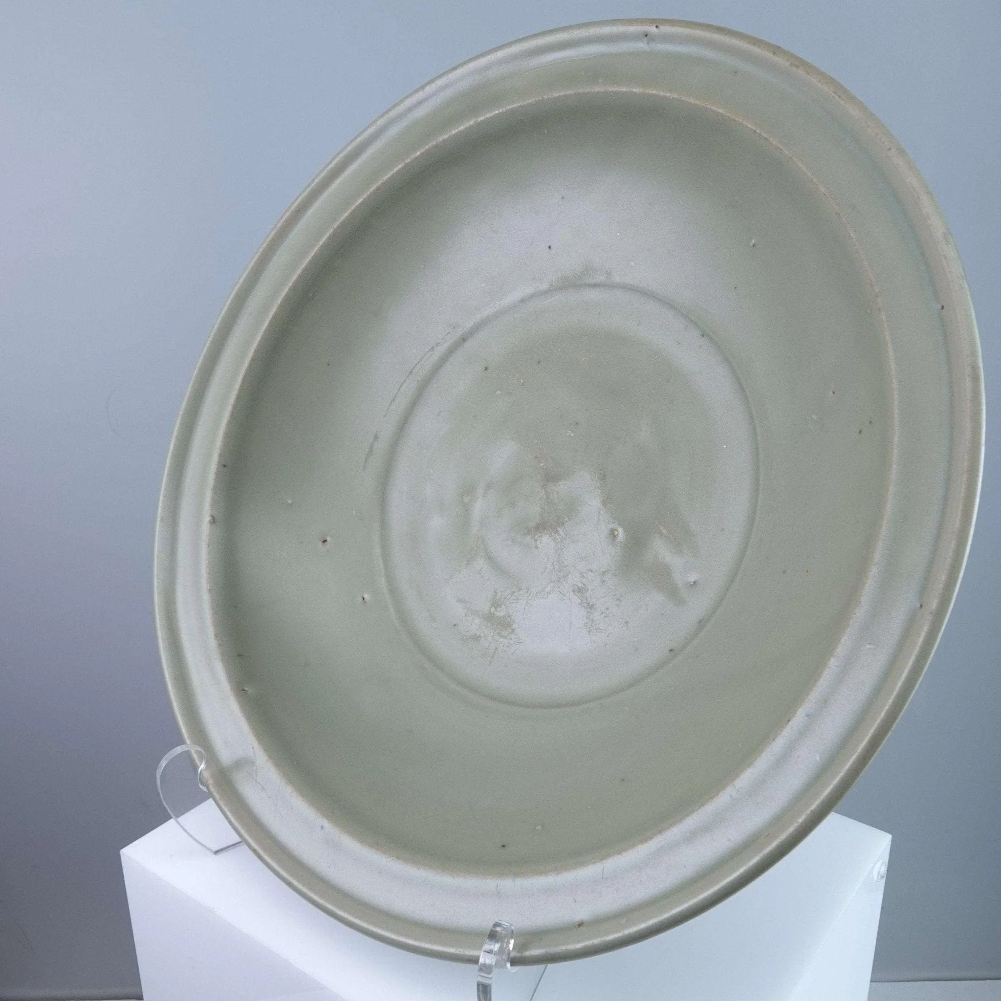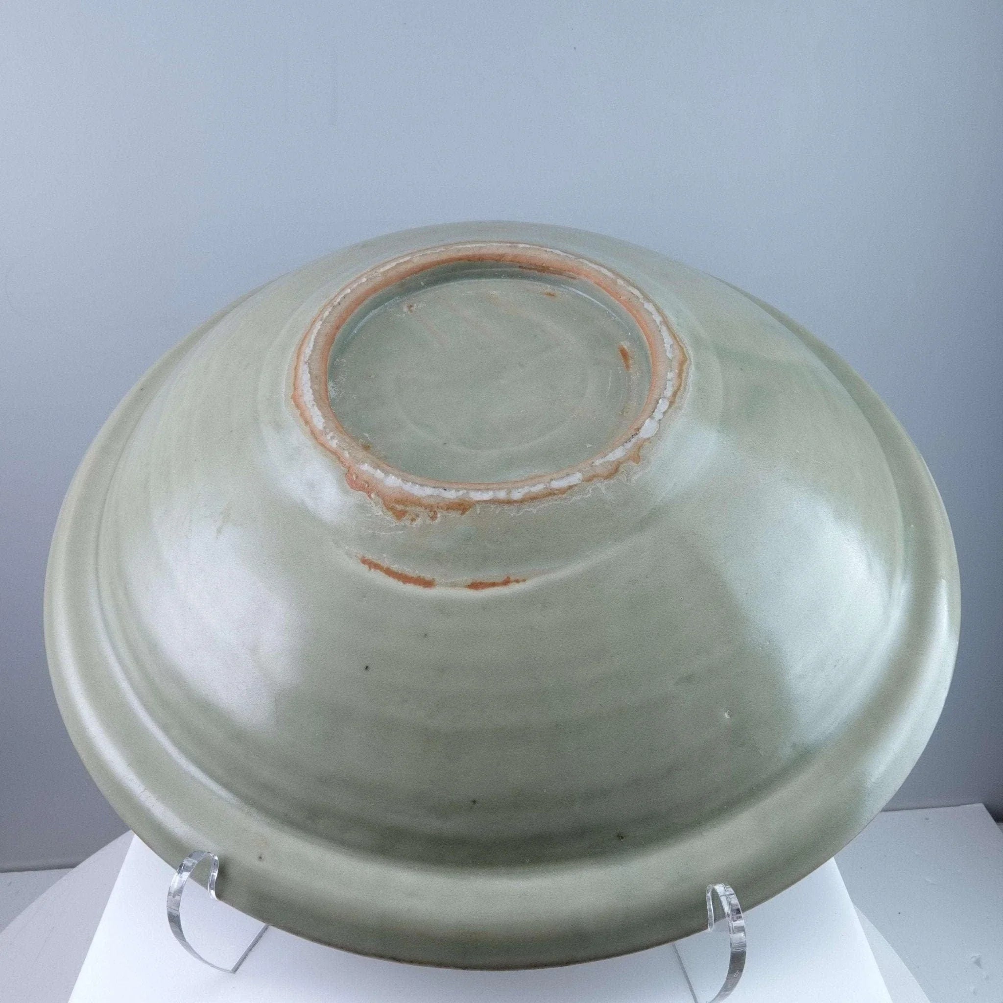 Large Ming Dynasty Chinese Celadon Bowl with Fish. 13 3/8" wide x 3" deep. No<br>cracks, chips, or restorations, some expected wear to front. From a collection<br>I'm helping disperse that was put together in the 1950's and 60's by a woman who<br>is now 96.<br>TW129
