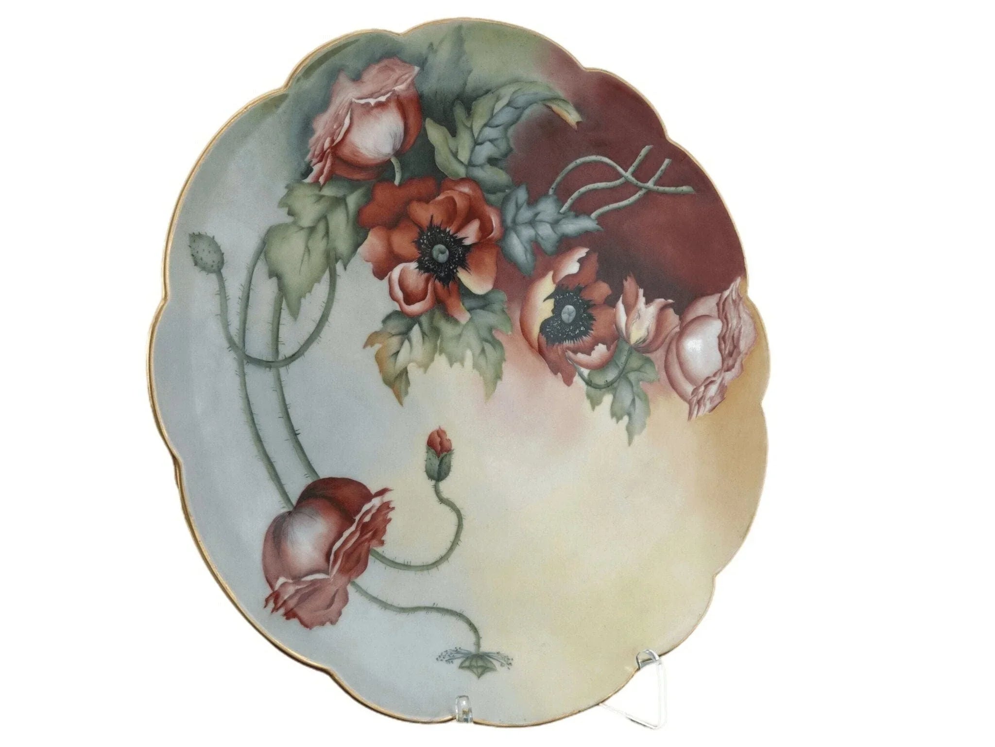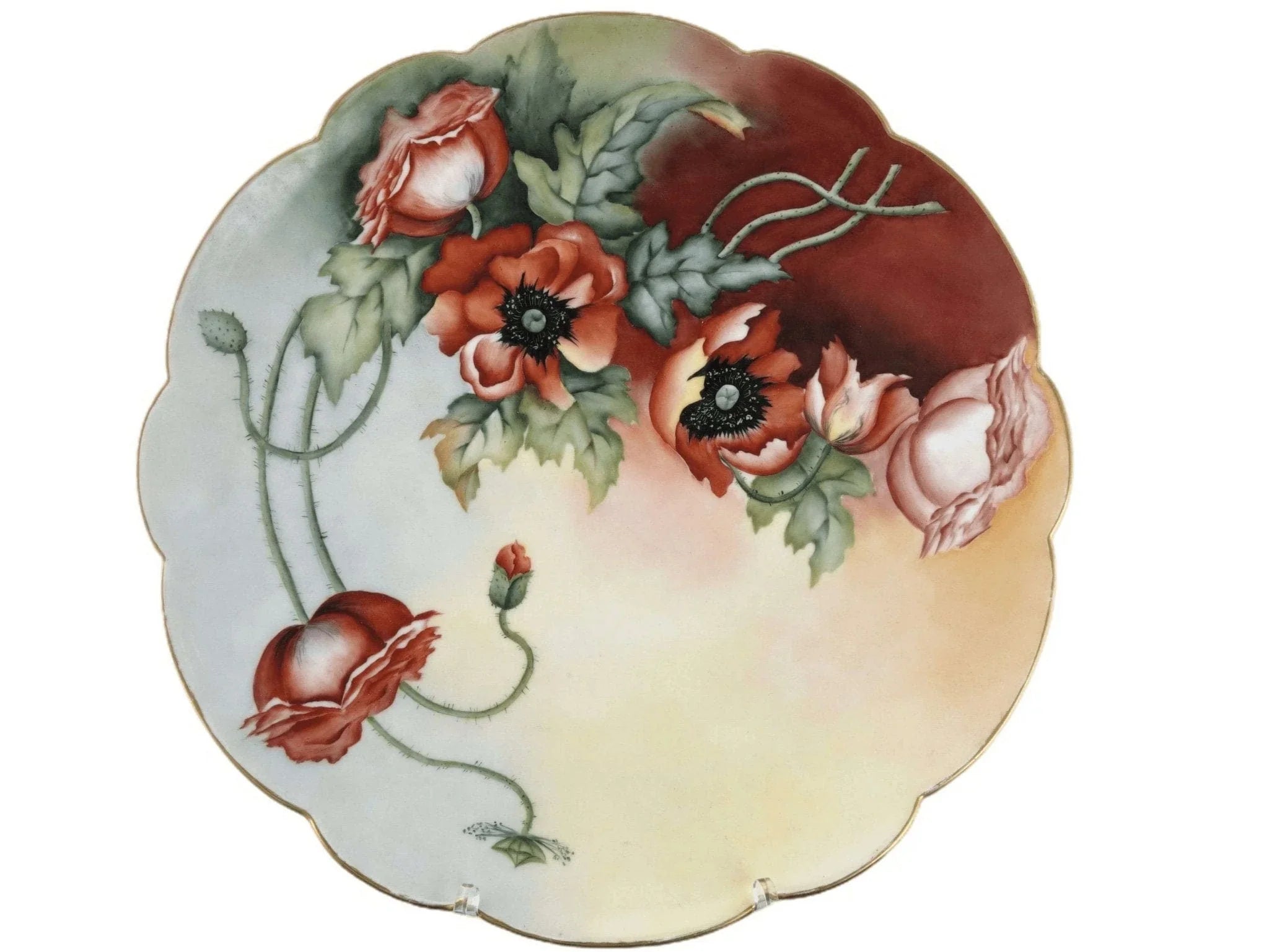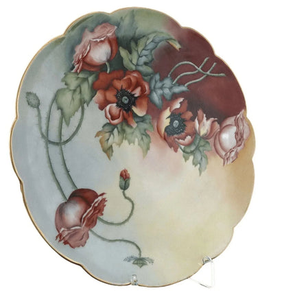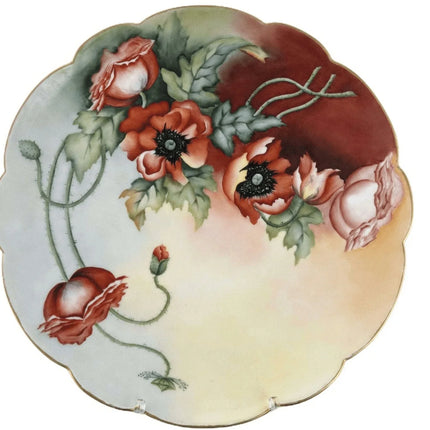 c1910 13 5/8" T&V Limoges Porcelain Charger Hand Painted Artist signed Red Poppi