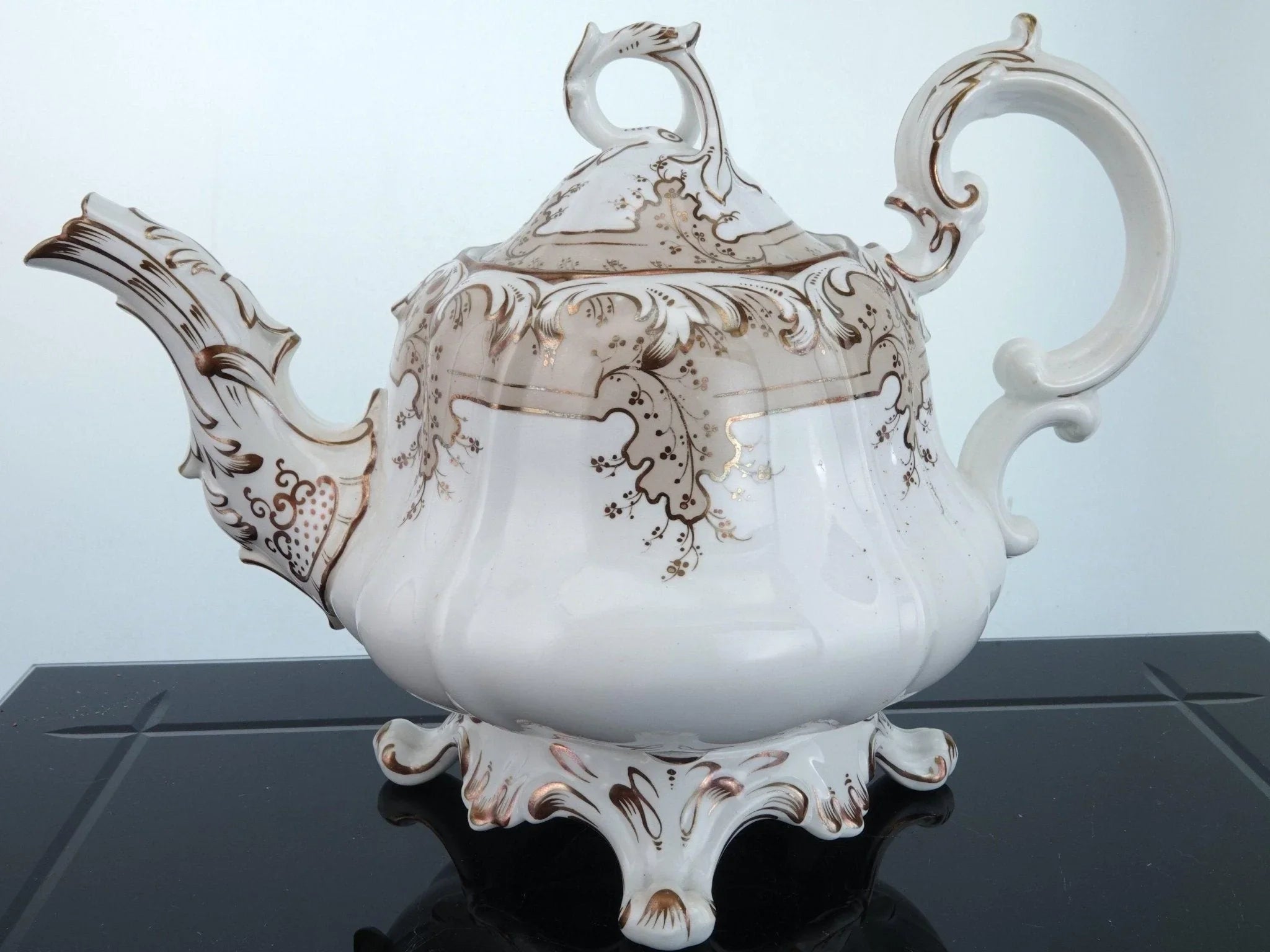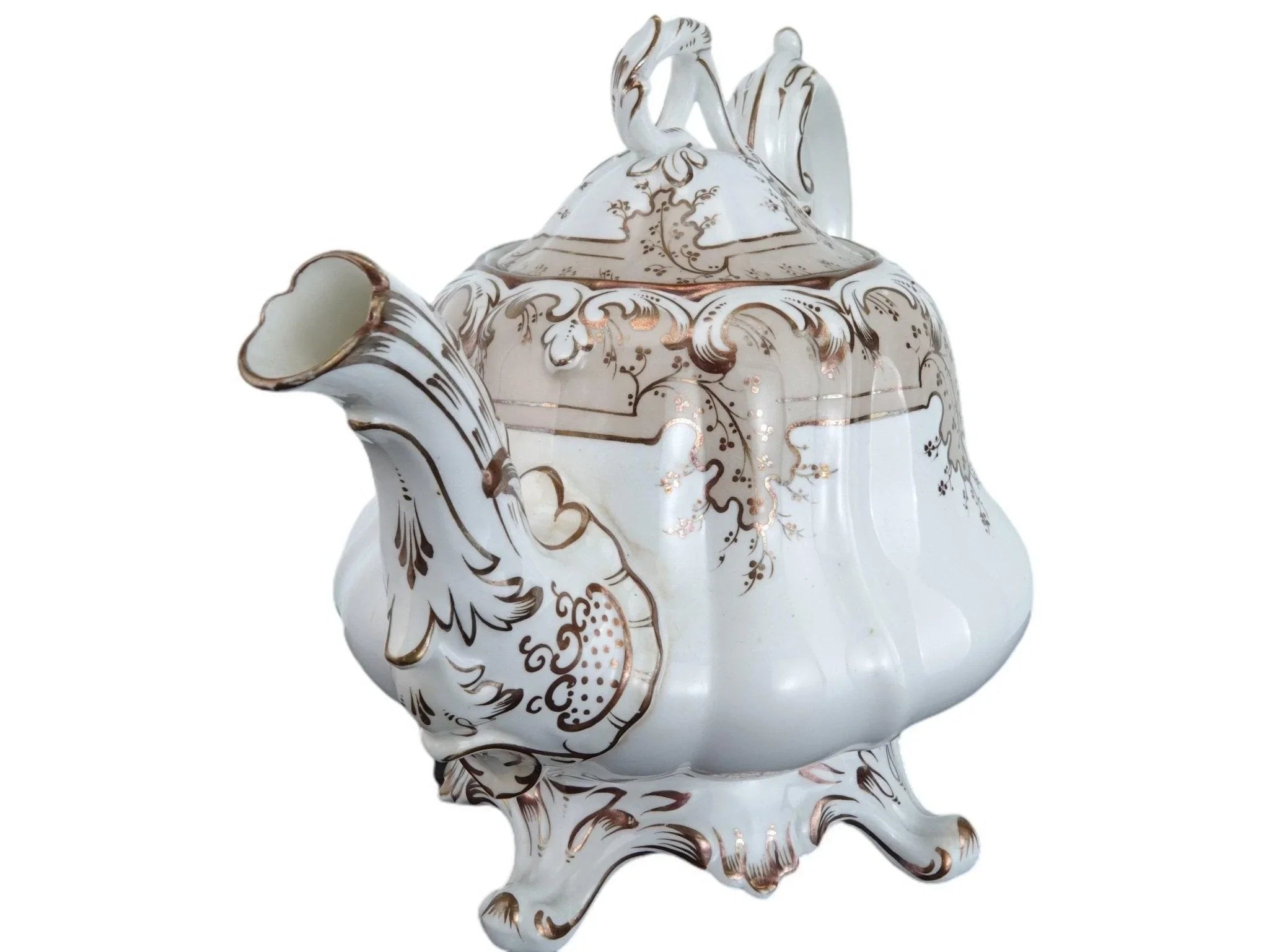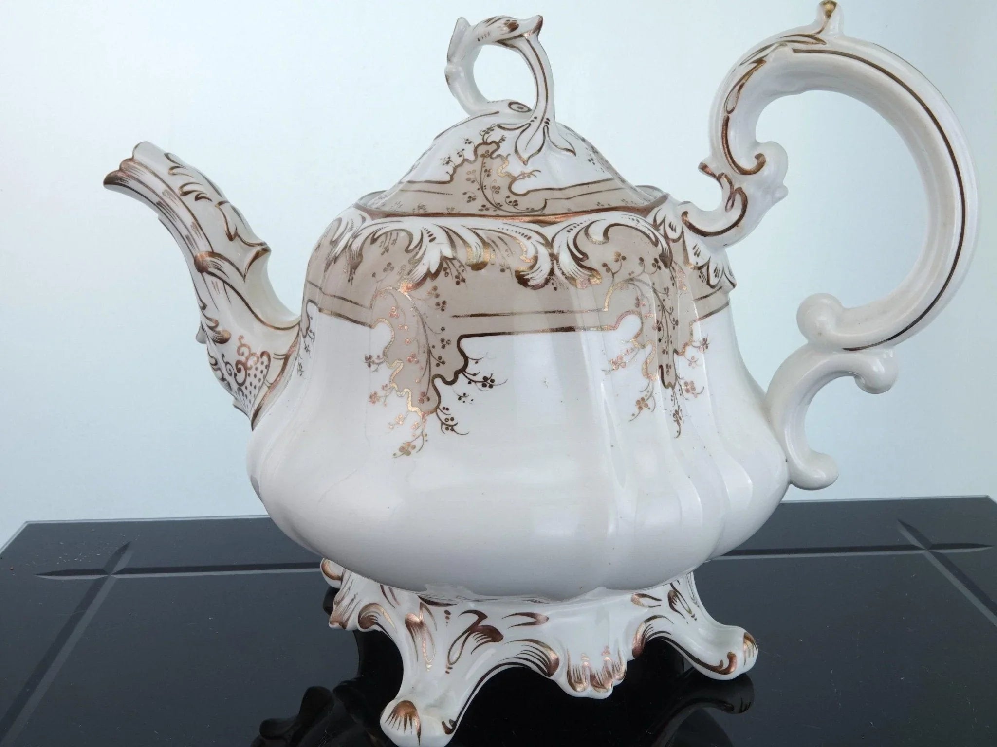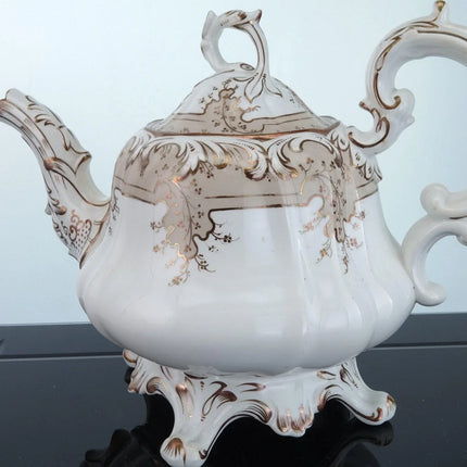 1843 Rococo British Teapot Hand Painted Gold Pattern #8677