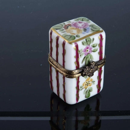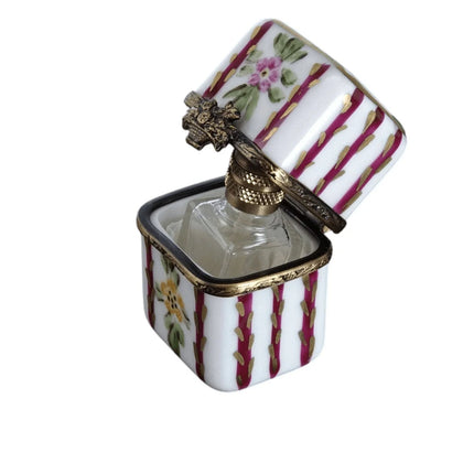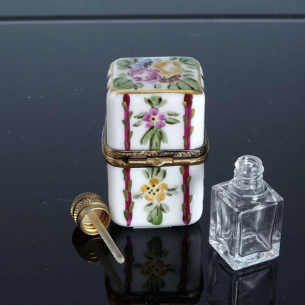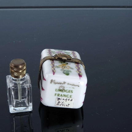 Limoges Trinket Box Perfume bottle Holder. 1.75" tall x 1" wide no cracks,<br>chips, restorations, never used. Snaps shut with audible click, strong hinge.<br>TW109