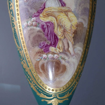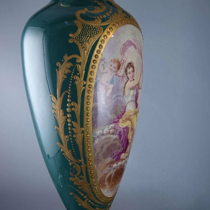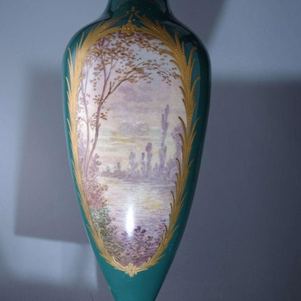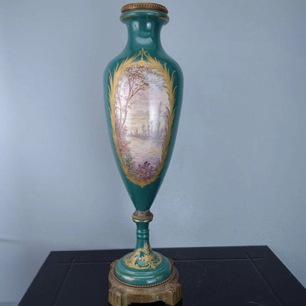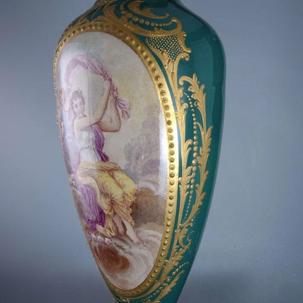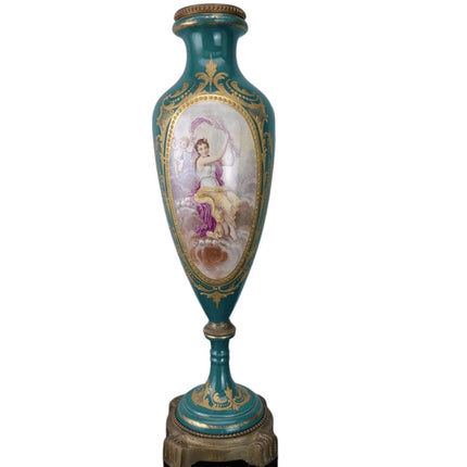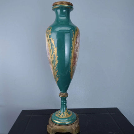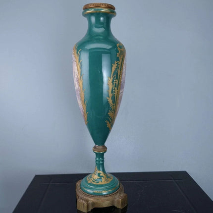 c1880 Sevres Style Hand Painted Bronze Mounted Garniture. No damage or restorations, no top as shown.