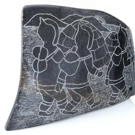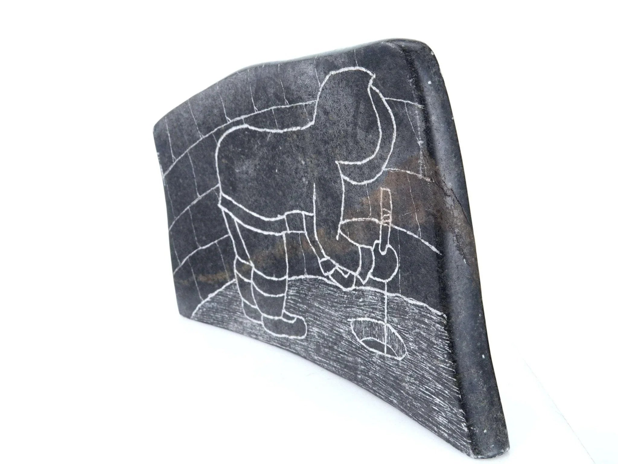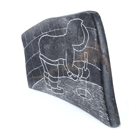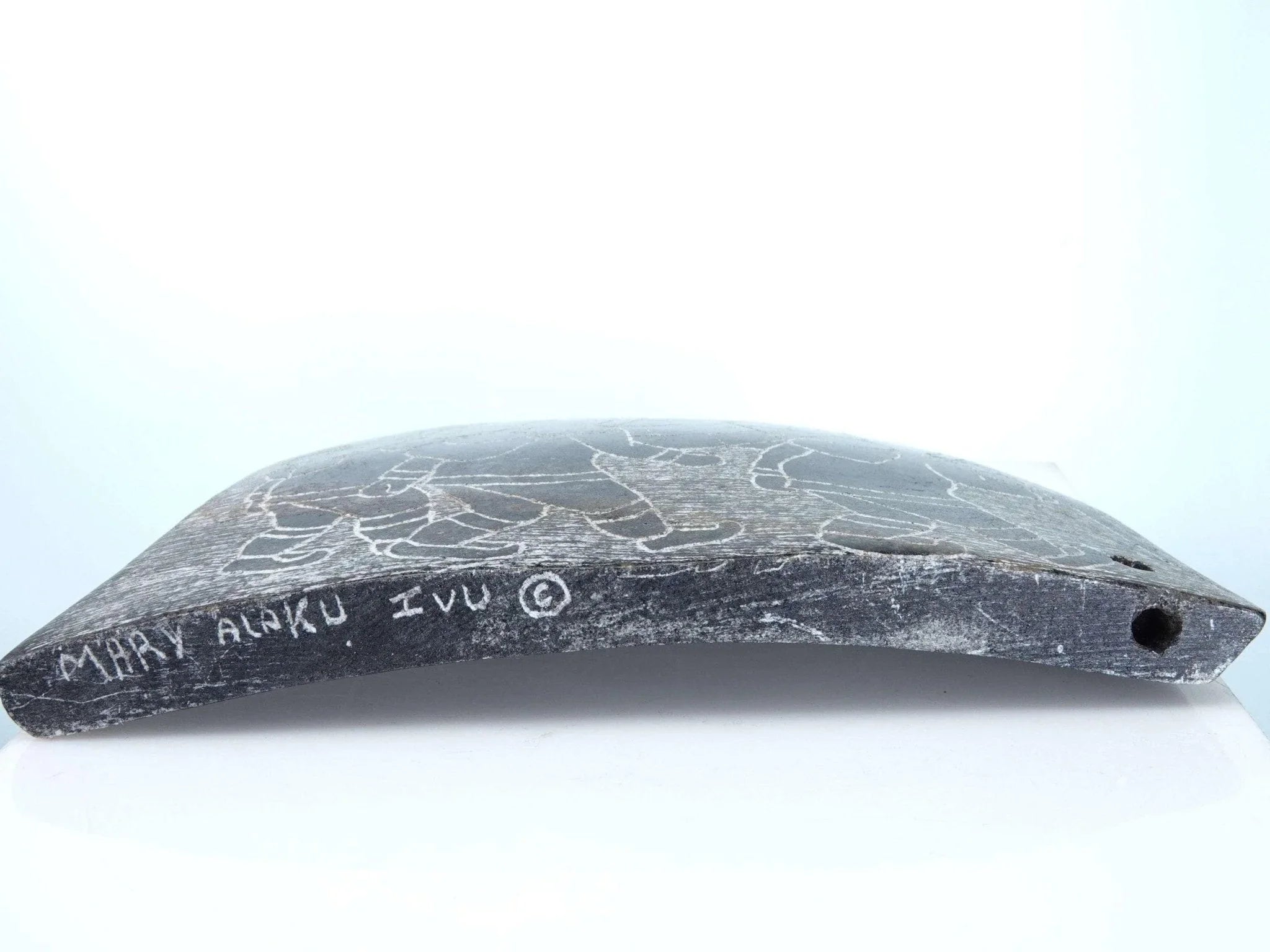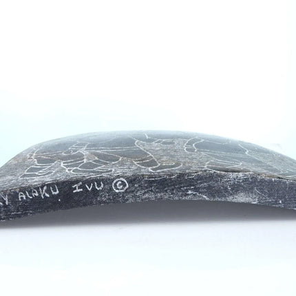 Mary Alaku Inuit Stone Carving. Nice vintage carving from the last quarter of the 20th century. Measures 8" x 5" x 1.5"-2" as the stone is curved. Very small amount of wear on a few of the corners, no significant issues. TW107