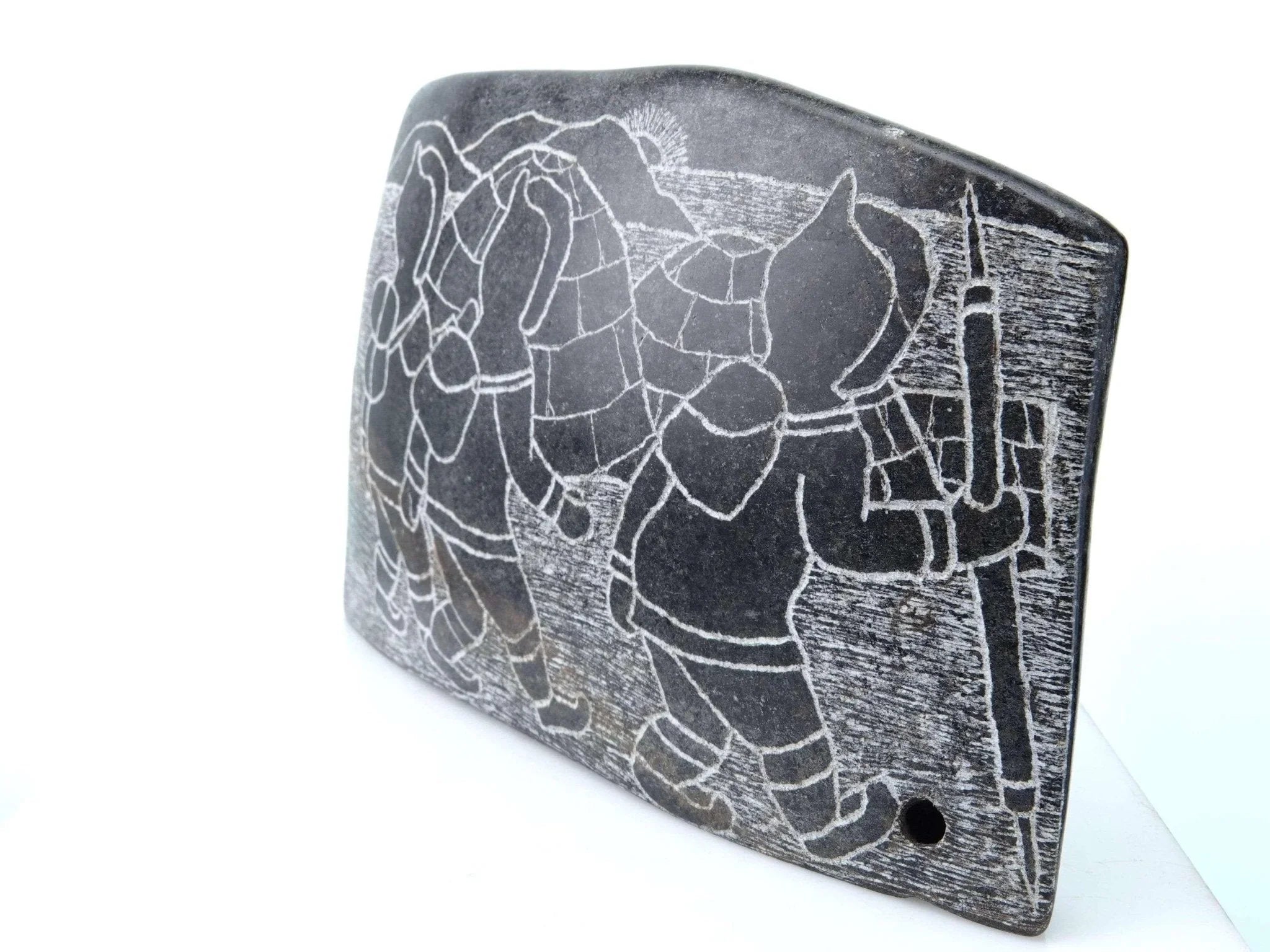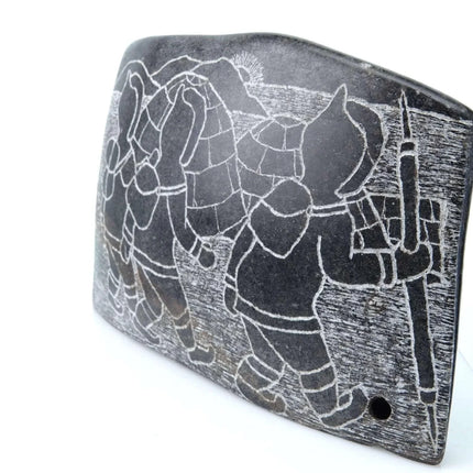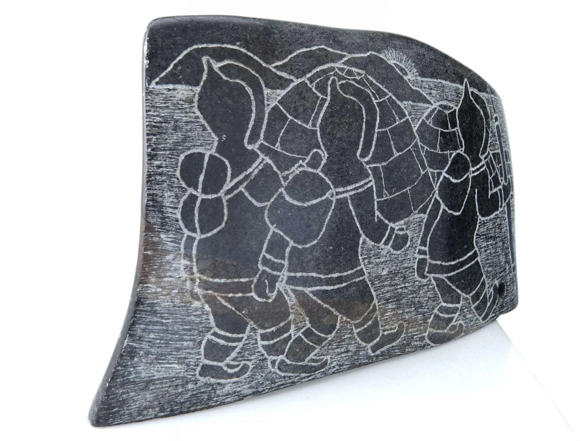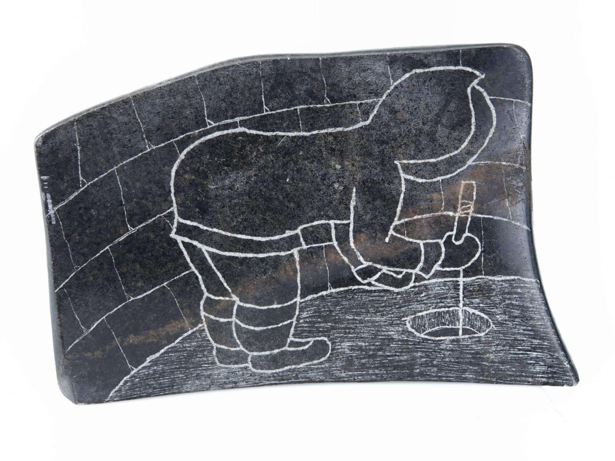 Mary Alaku Inuit Stone Carving. Nice vintage carving from the last quarter of the 20th century. Measures 8" x 5" x 1.5"-2" as the stone is curved. Very small amount of wear on a few of the corners, no significant issues. TW107