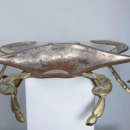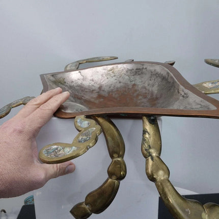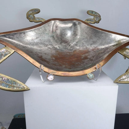 Huge c1960 Metales Casados Mixed Metals/ Abalone Crab Centerpiece Serving Dish
