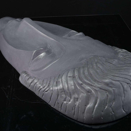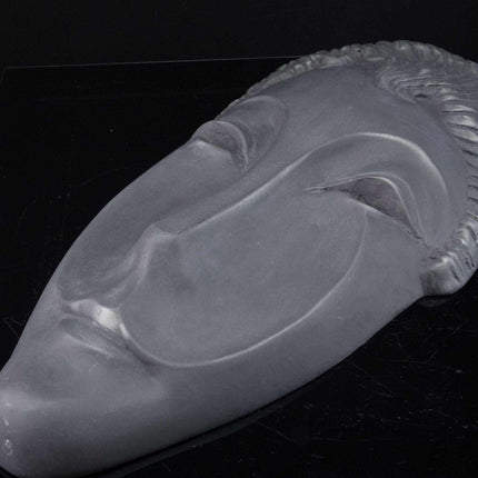 Evaline Sellors (1903-1995) Mid Century Patinated aluminum wall sculpture "Letitia" Roman dess of joy, gaiety and happiness - by Fort Worth, Texas, sculptor Evaline Clark Sellors. 14" tall x 7 1/8" tall with no damage, possible scratch to right of nose.