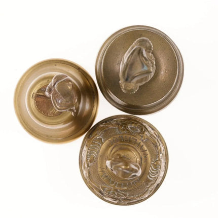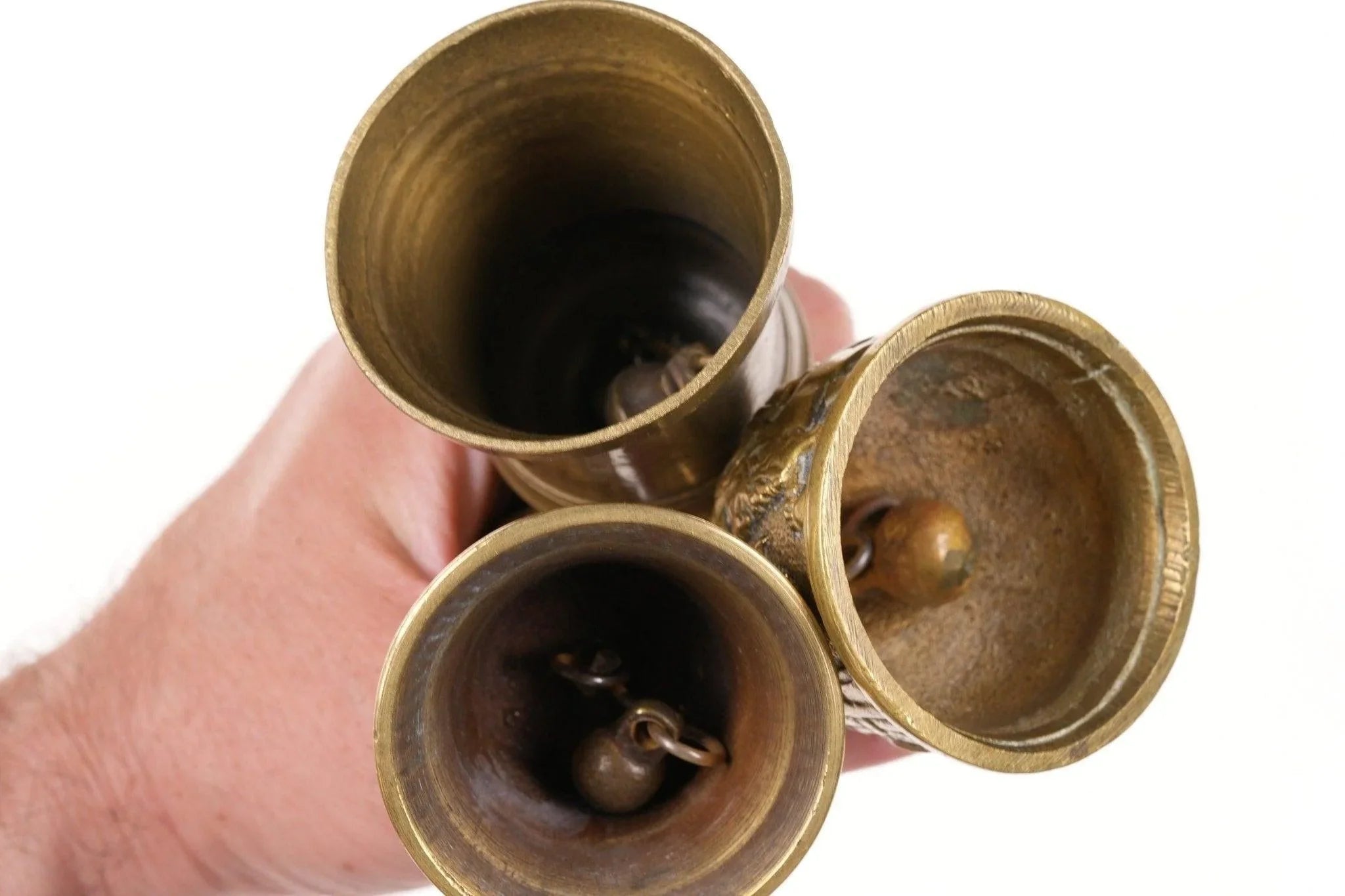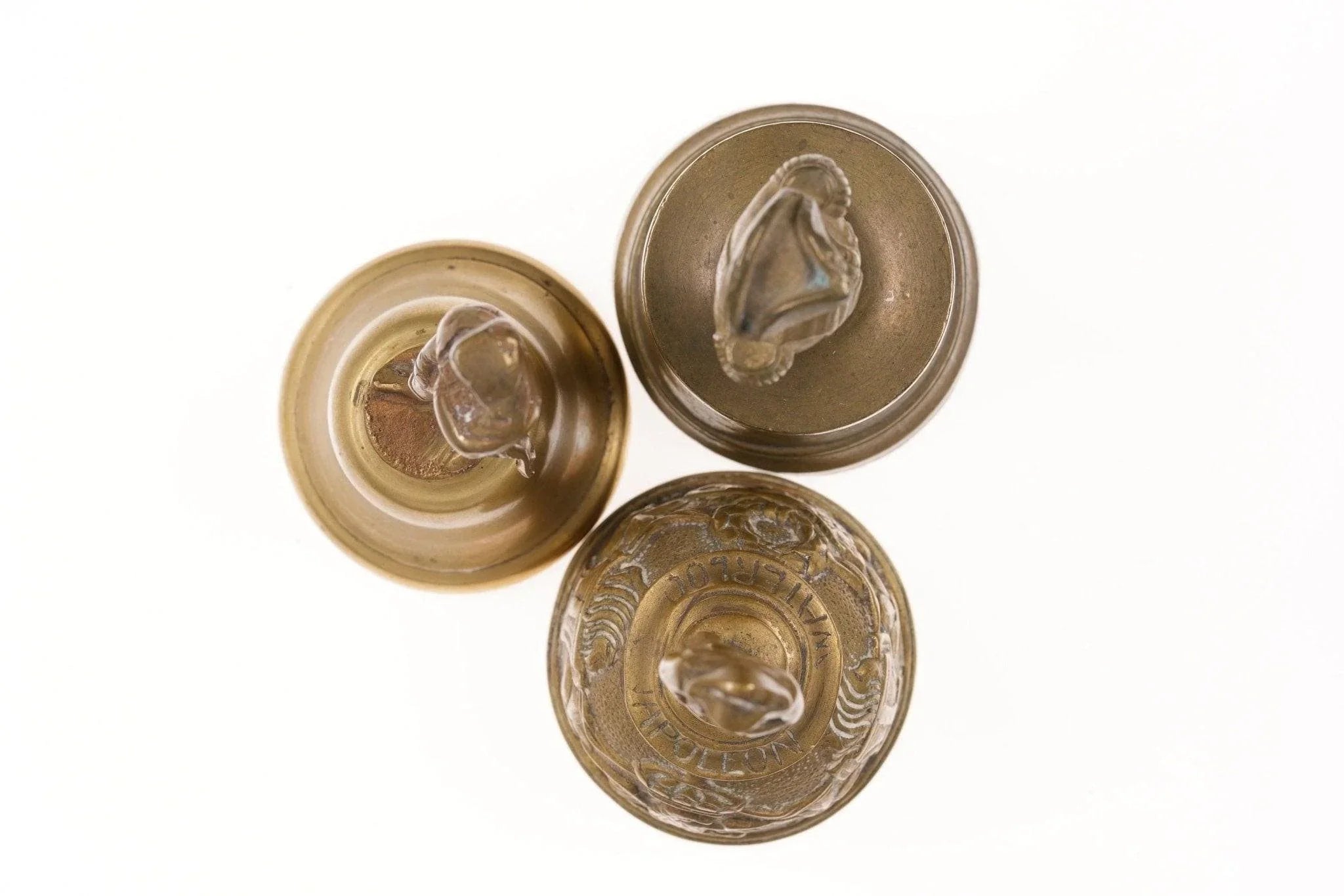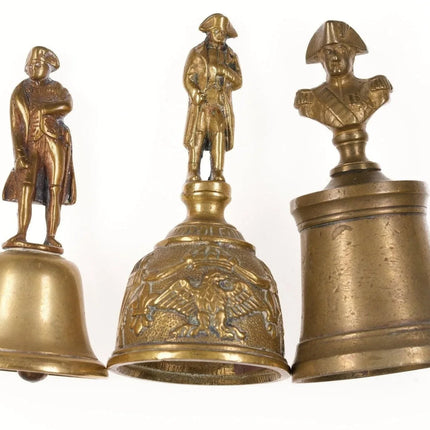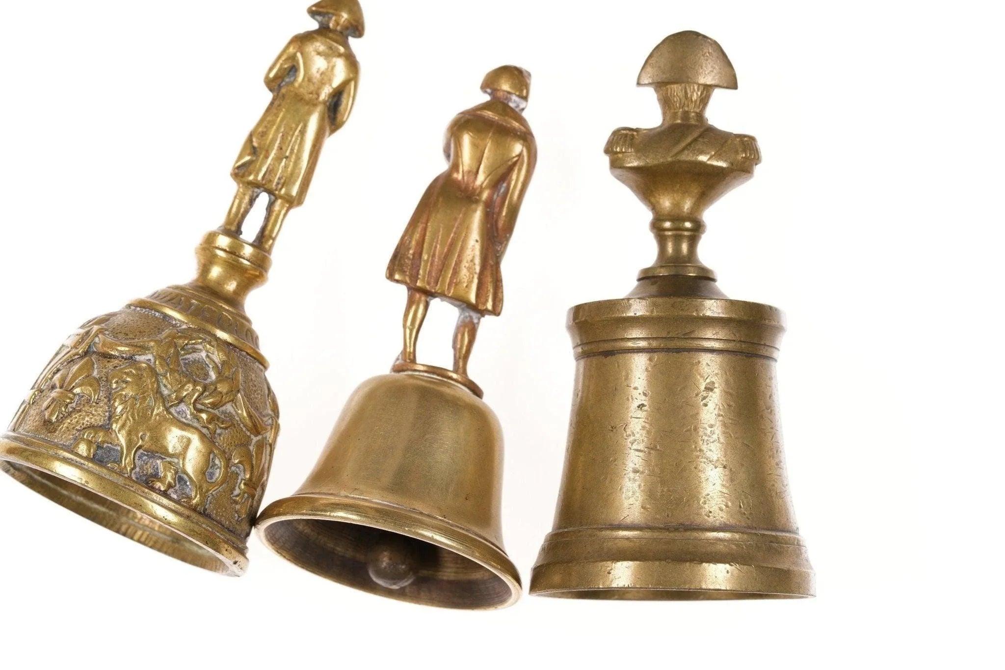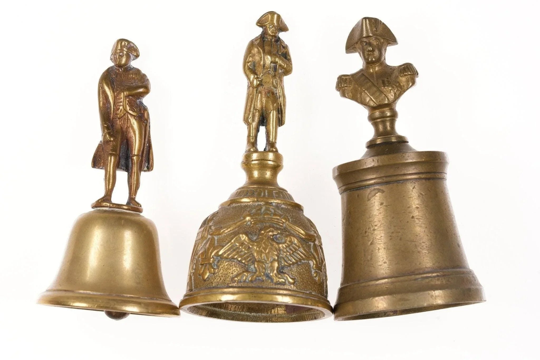 3 Antique Bronze Napoleonic Table Bells. Selling the three bells, with three<br>distinct sounds. Great for the person that needs a Napoleonic bell in each room,<br>or different sounds for different needs. Tallest 4.5", selling all three.<br>tw206