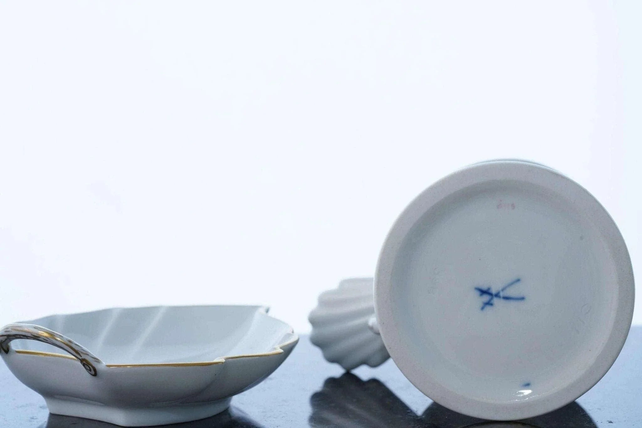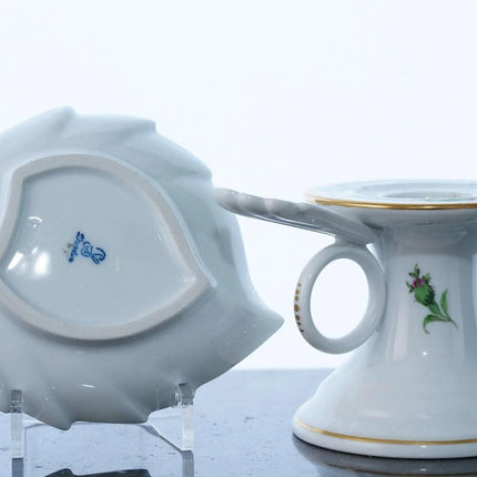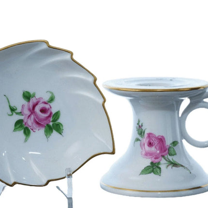 Meissen Rose Pink Chamberstick and Carl Thieme Dresden Trinket dish