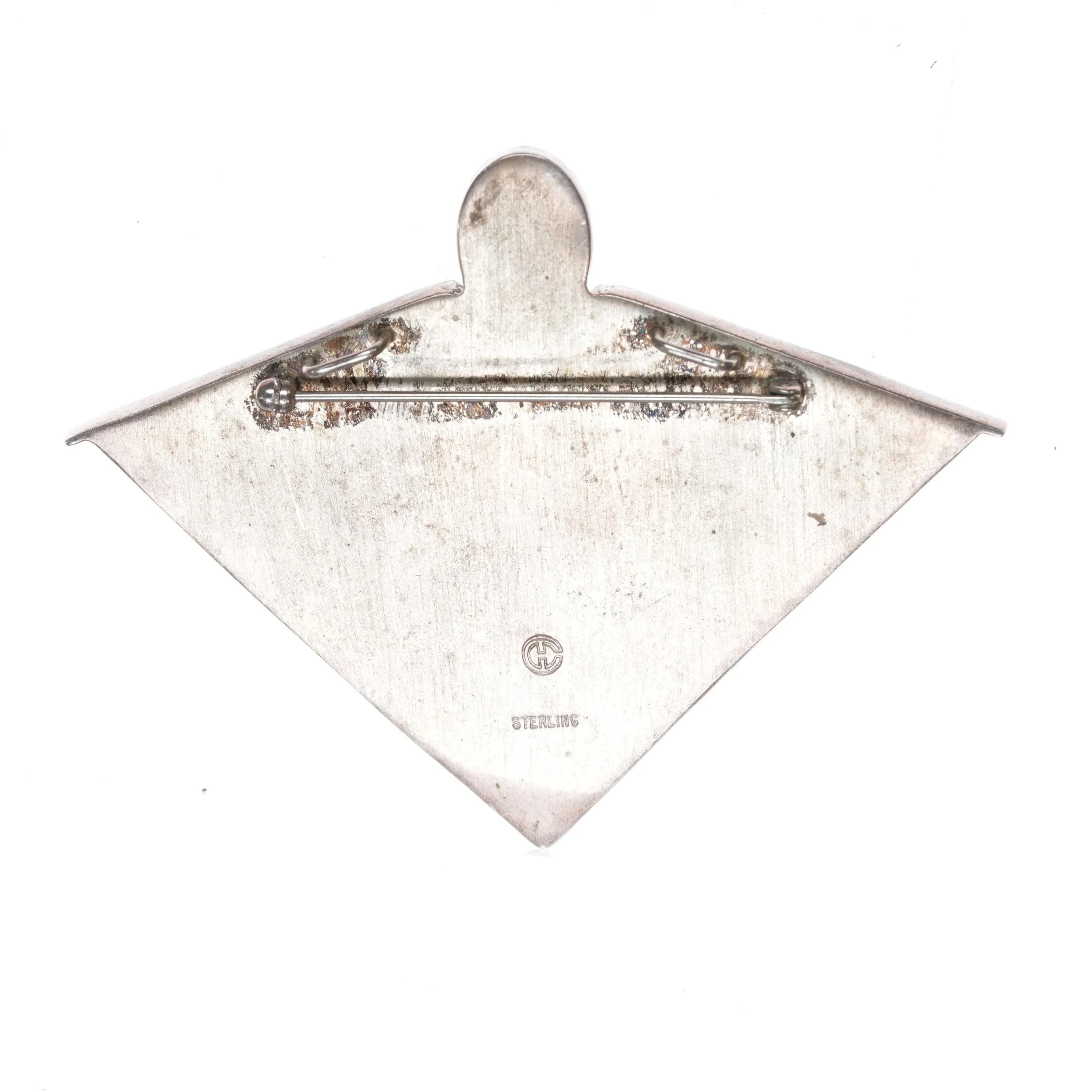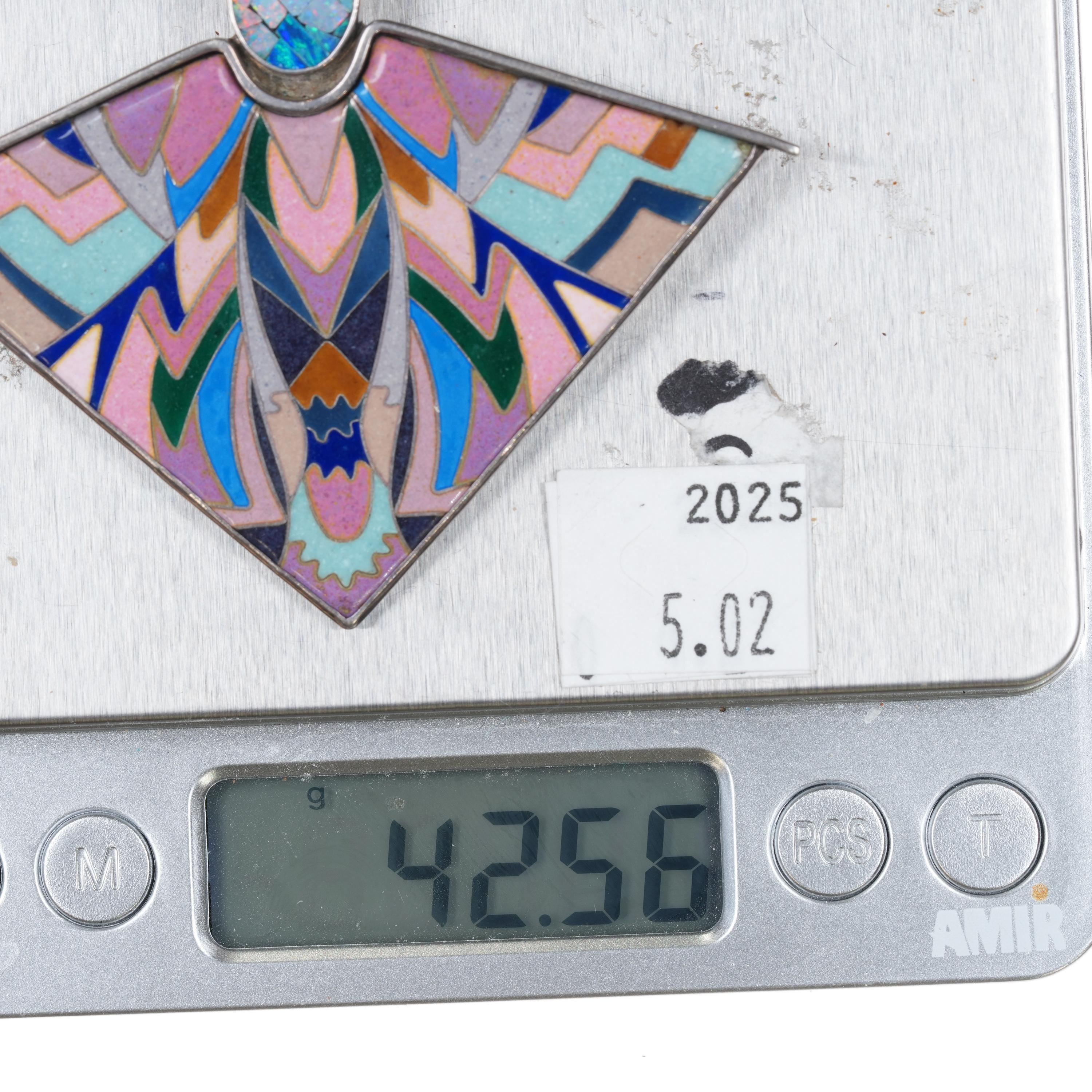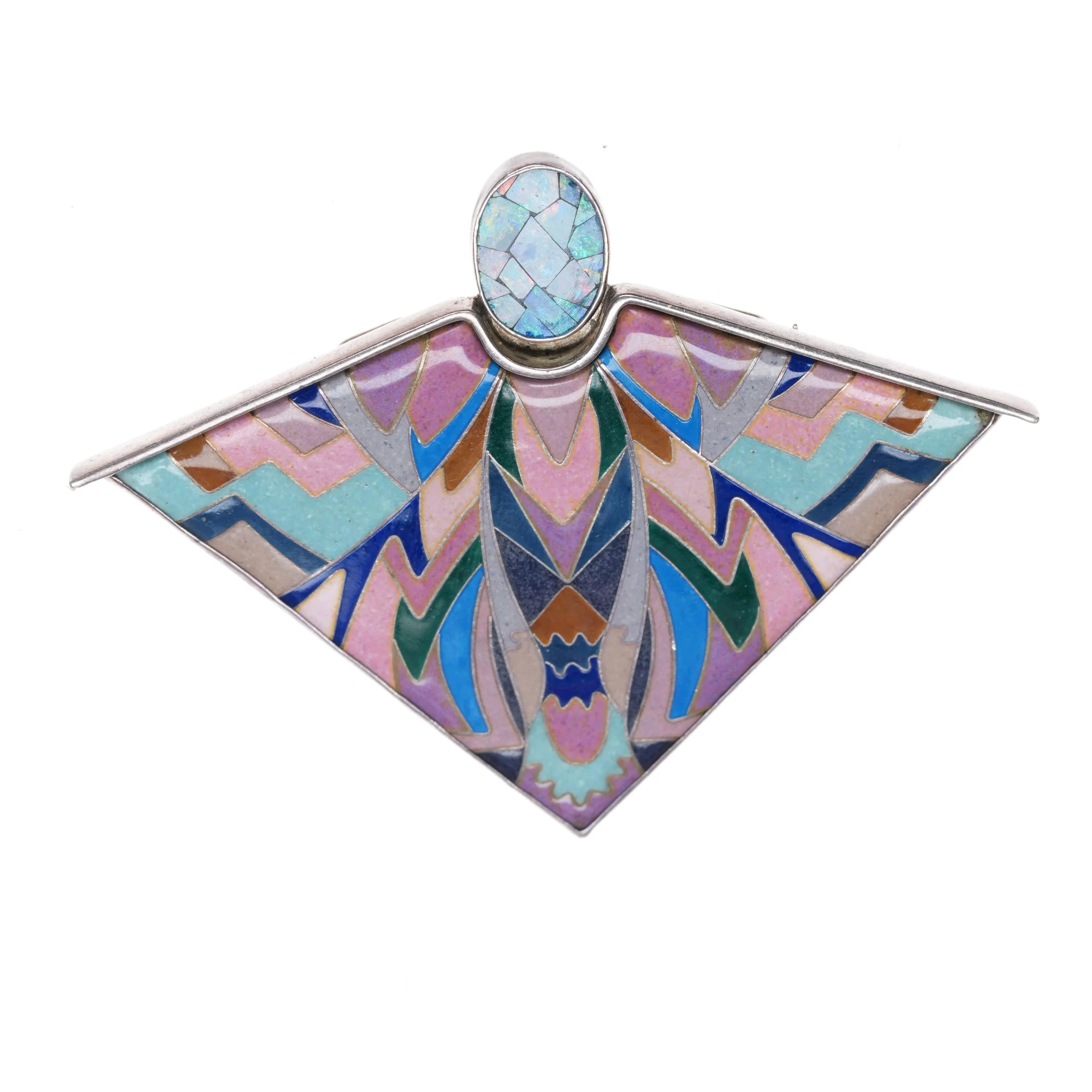 Fabulous Art Deco Enamel/Opal inlay sterling silver pendant/pin