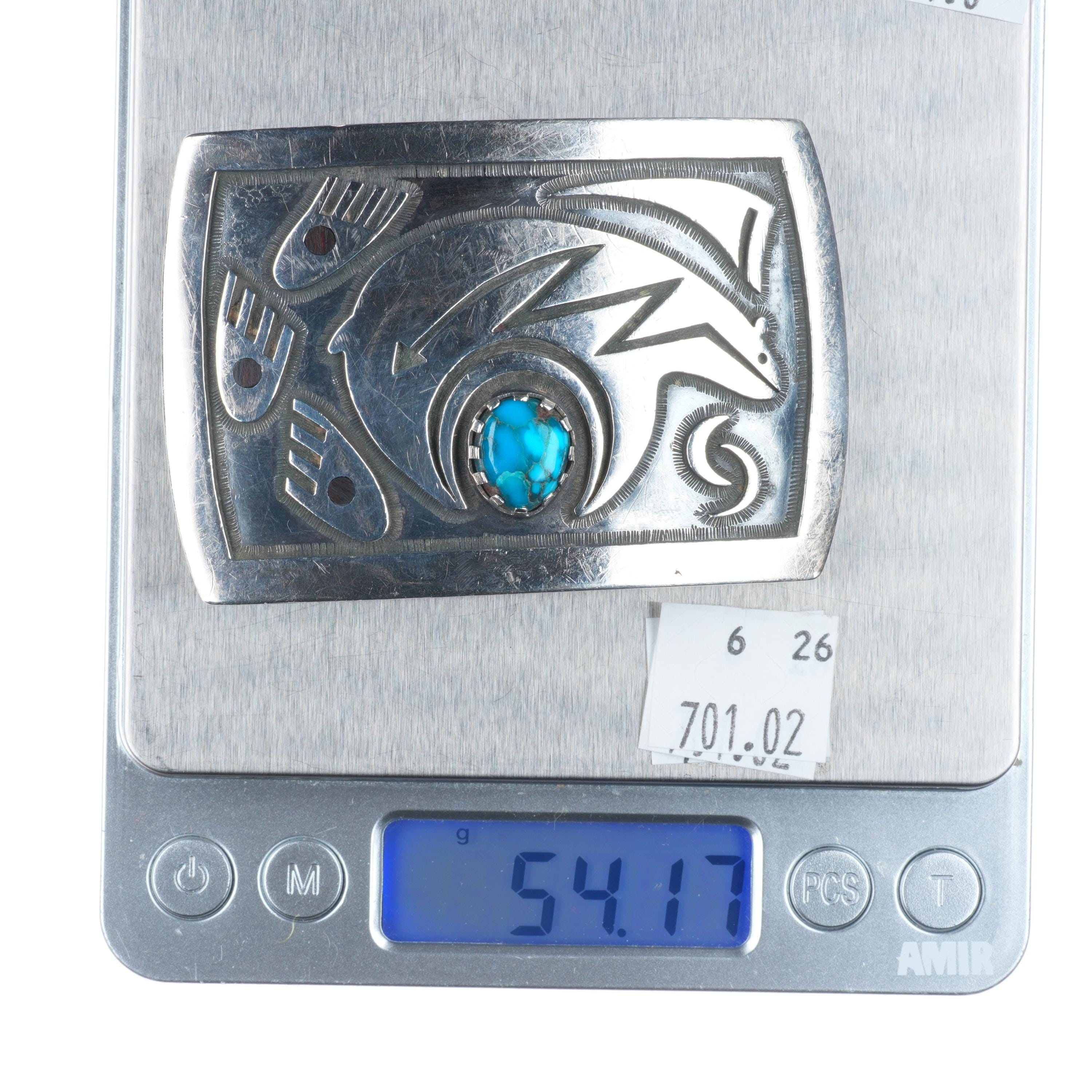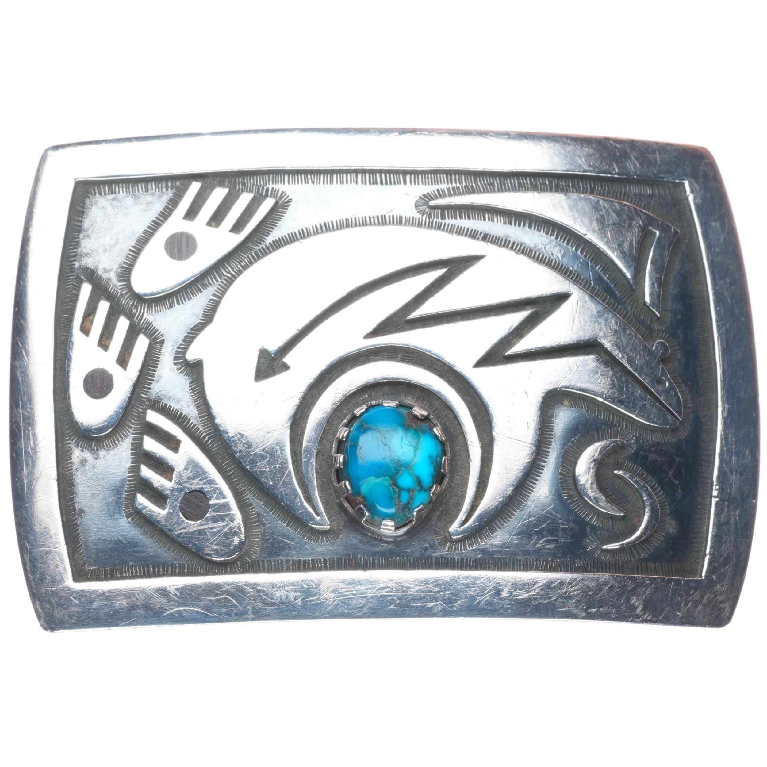Floyd Namingha Lomakuyvaya Hopi Bisbee Turquoise sterling silver belt buckle. Tested and guaranteed solid sterling silver with weight and measurements in pictures. Fully functional. All items will likely have some age appropriate/expected wear, the older they are the more wear they should have. Circa last quarter of the 20th century.. Fits up to a 1.5" belt.
