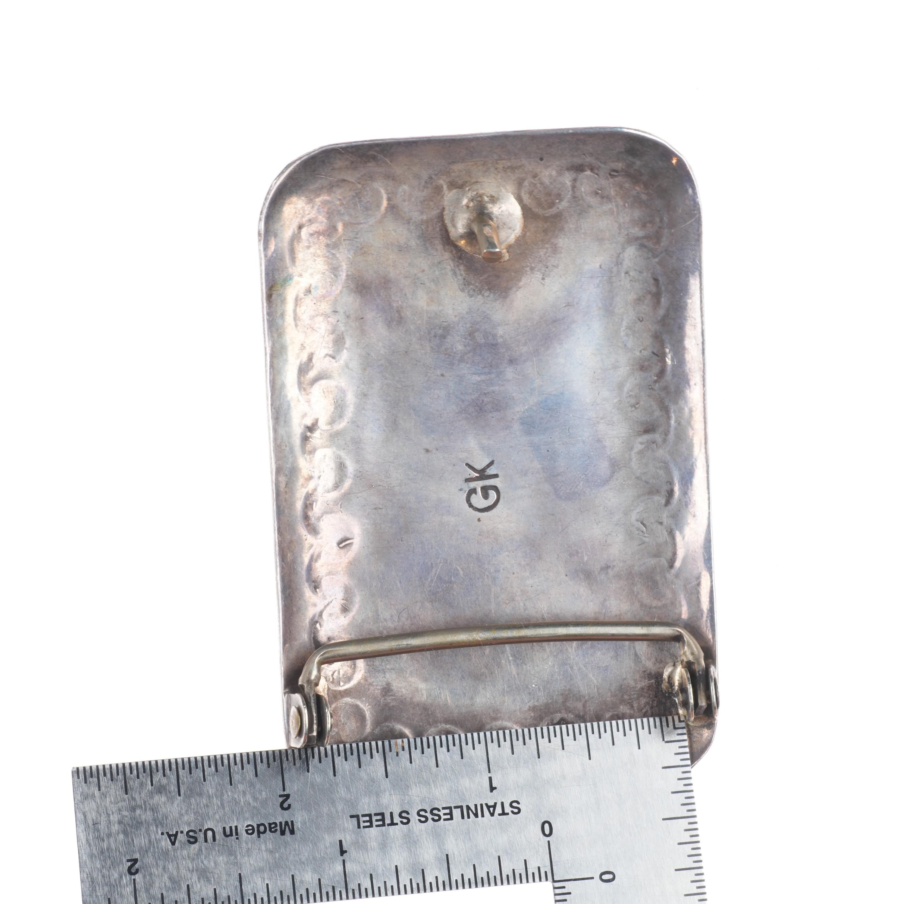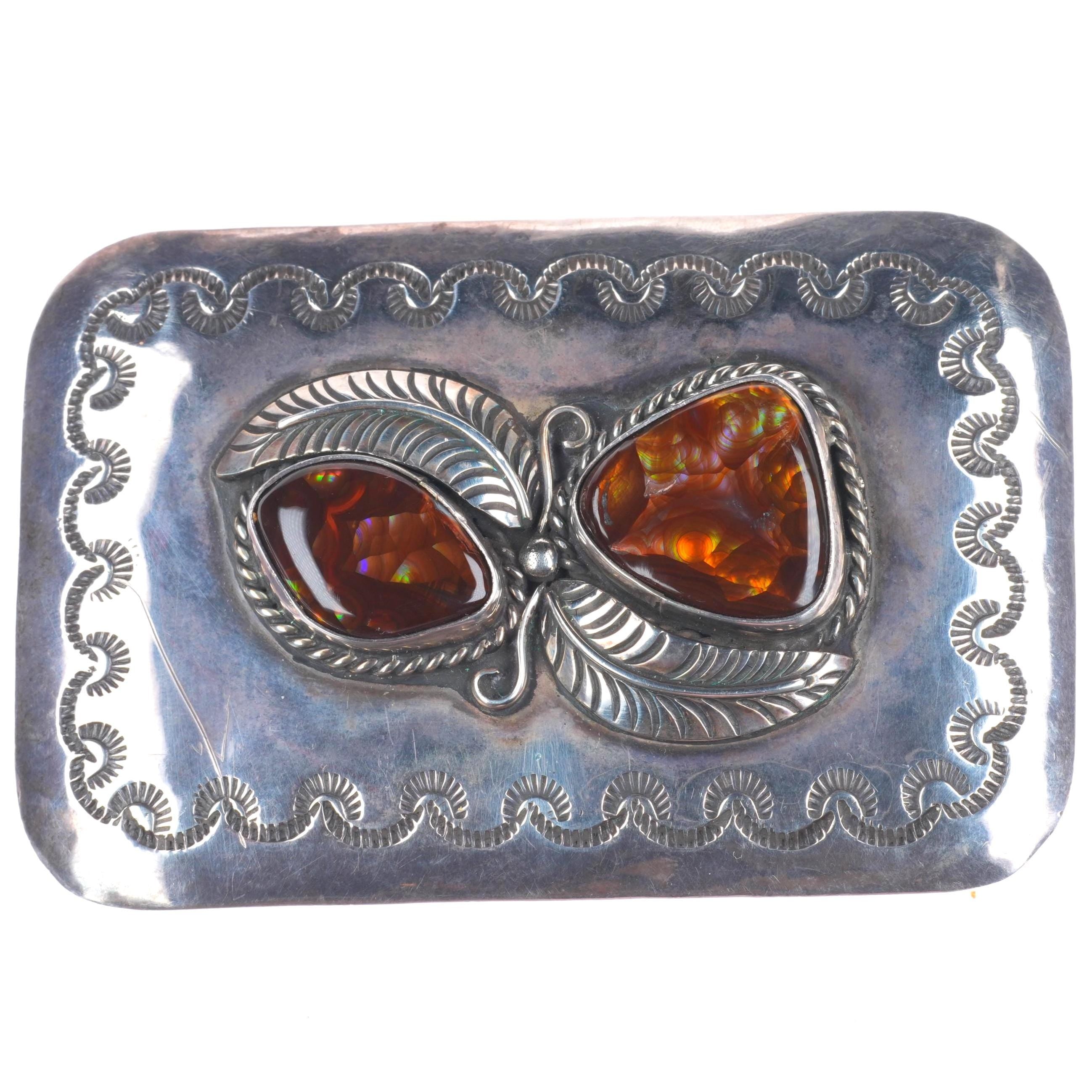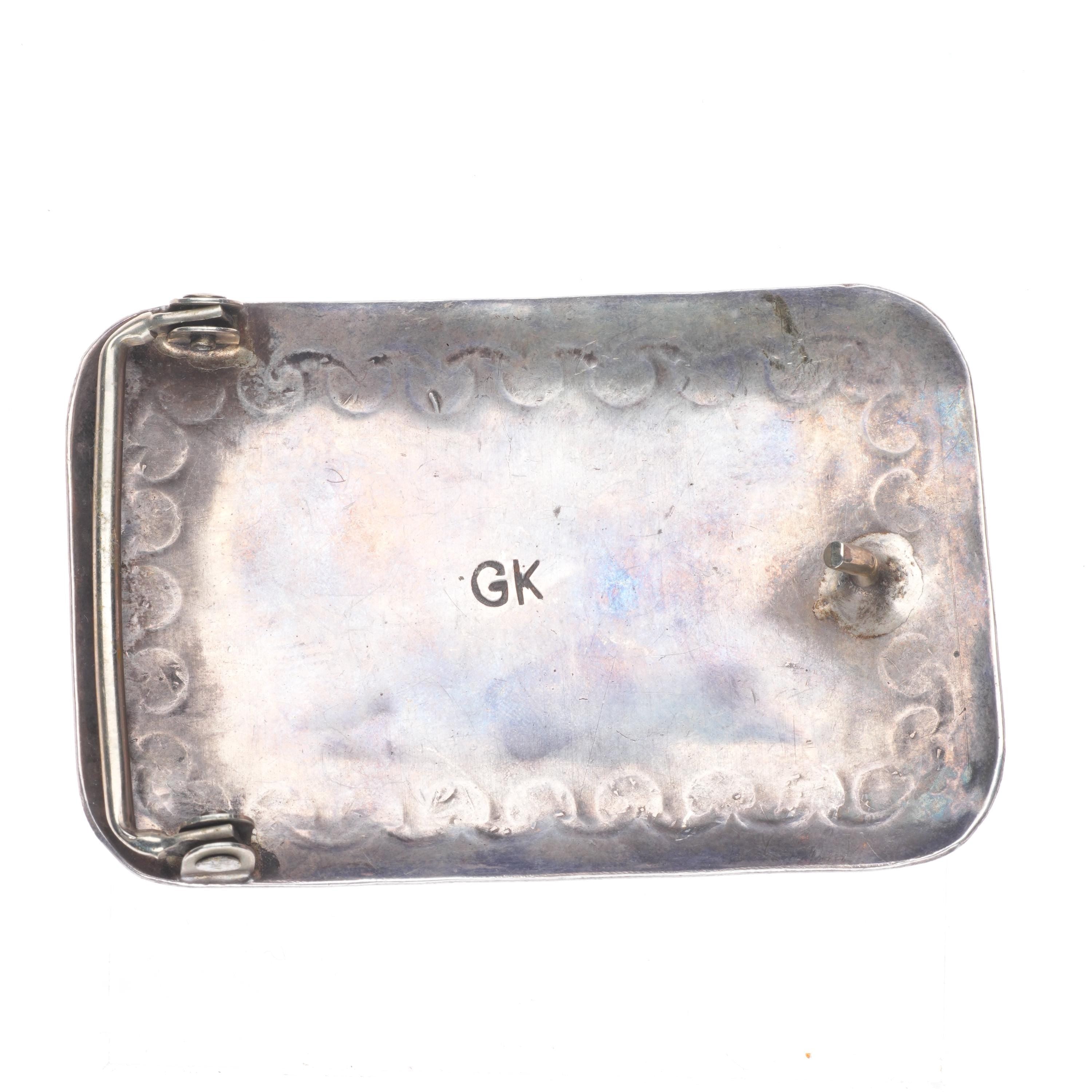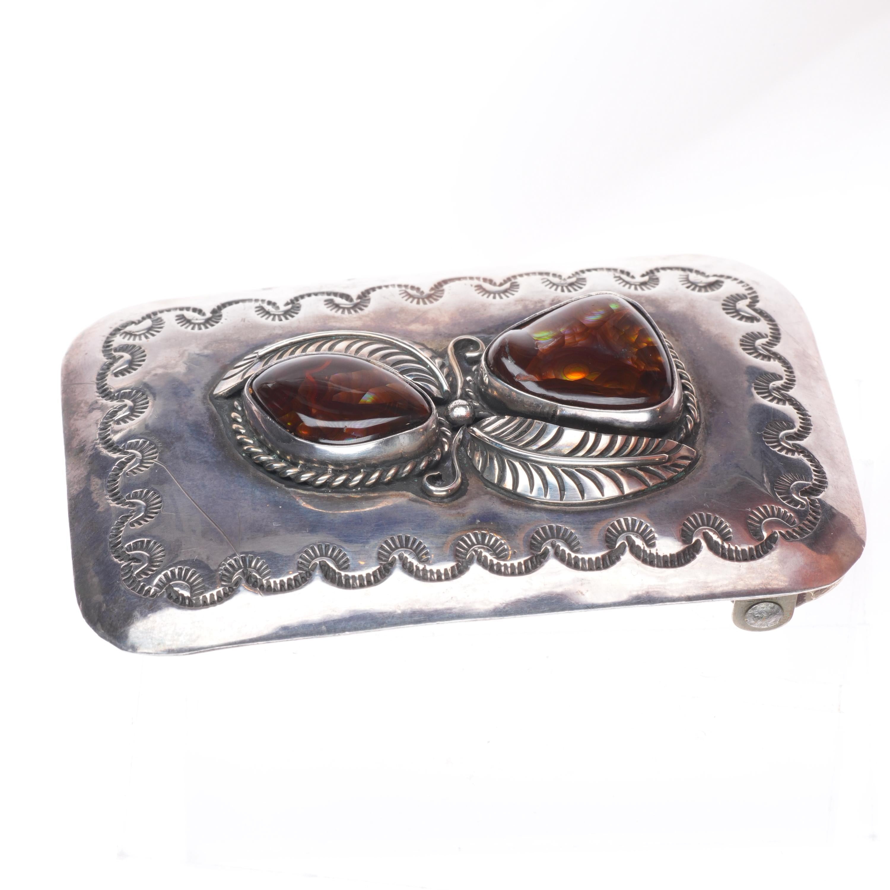 George Kee Navajo sterling silver Arizona Fire Agate belt buckle. Tested and guaranteed solid sterling silver with weight and measurements in pictures. Fully functional. All items will likely have some age appropriate/expected wear, the older they are the more wear they should have. Circa third quarter of the 20th century.. Fits up to a 1.75" belt. Stone secure with very old hairline as shown.