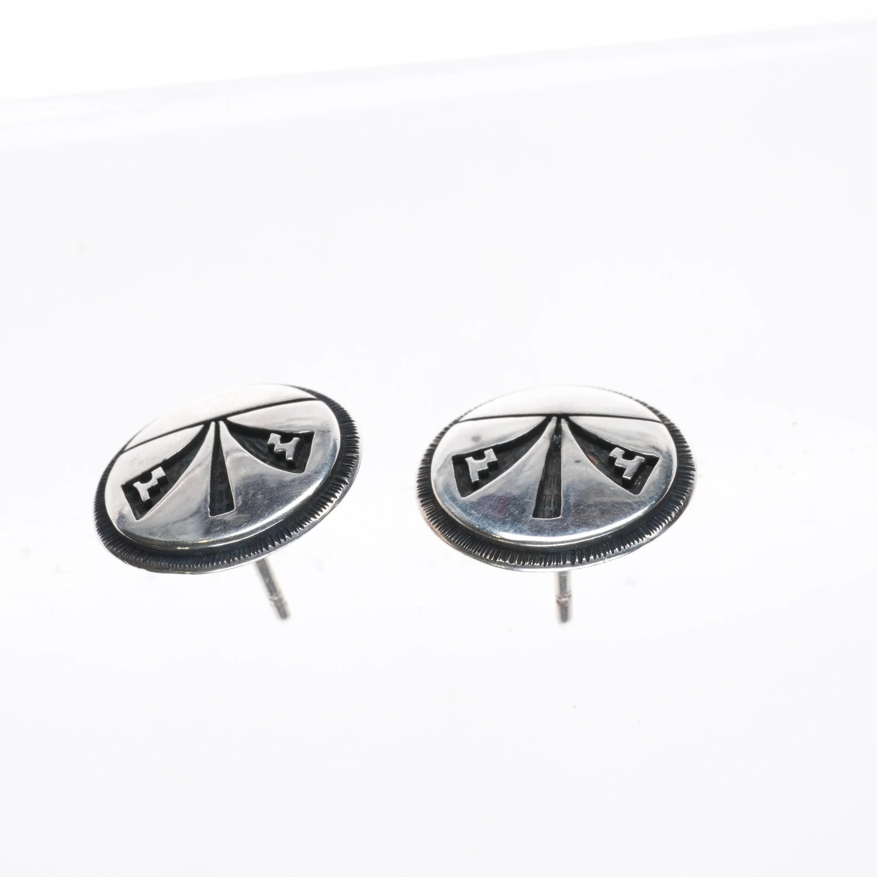 Greg Naseyouma Hopi Overlay stud earrings sterling silver. Great earrings with no issues, tested and guaranteed solid sterling silver, any marks detected, weight, and measurements will be shown in the pictures.