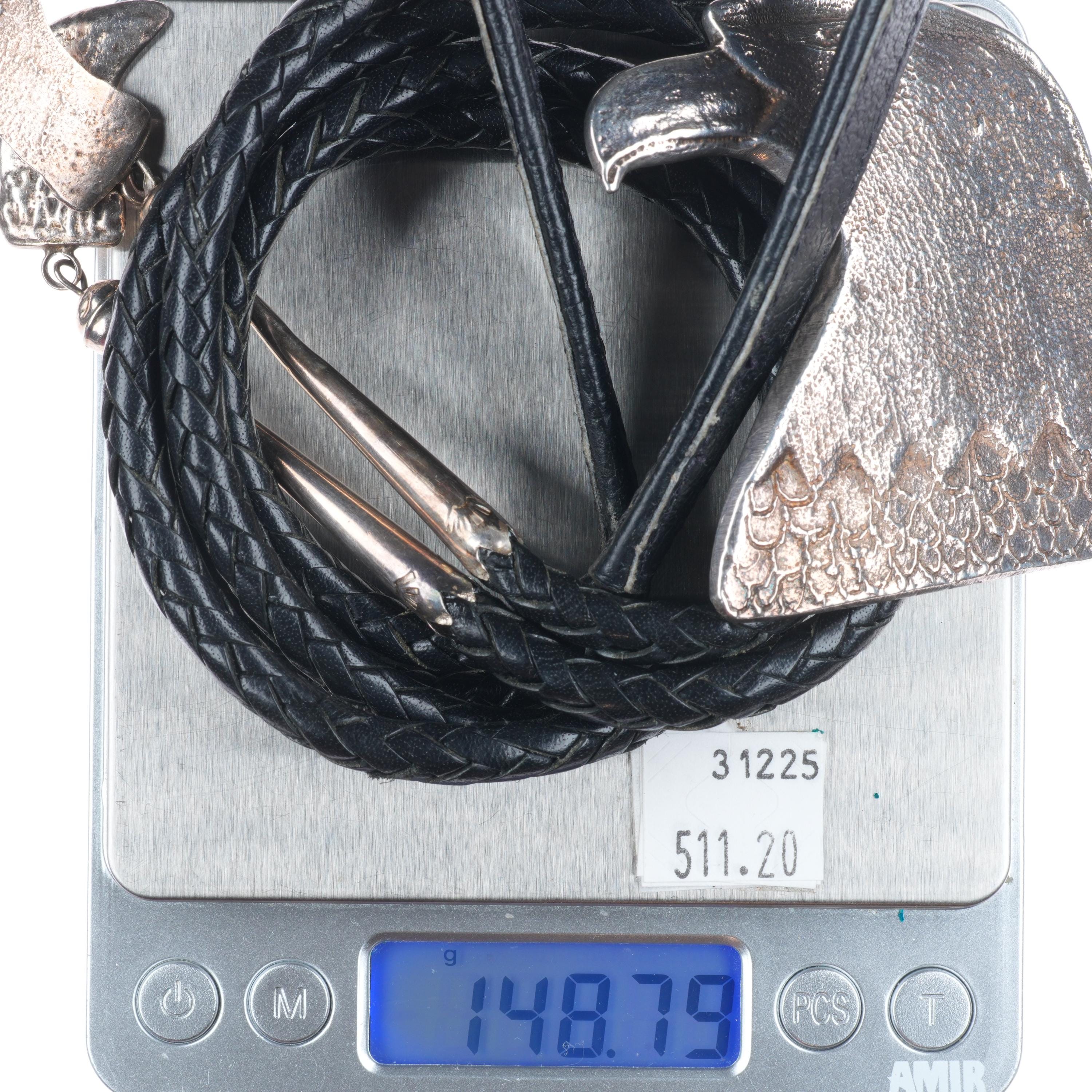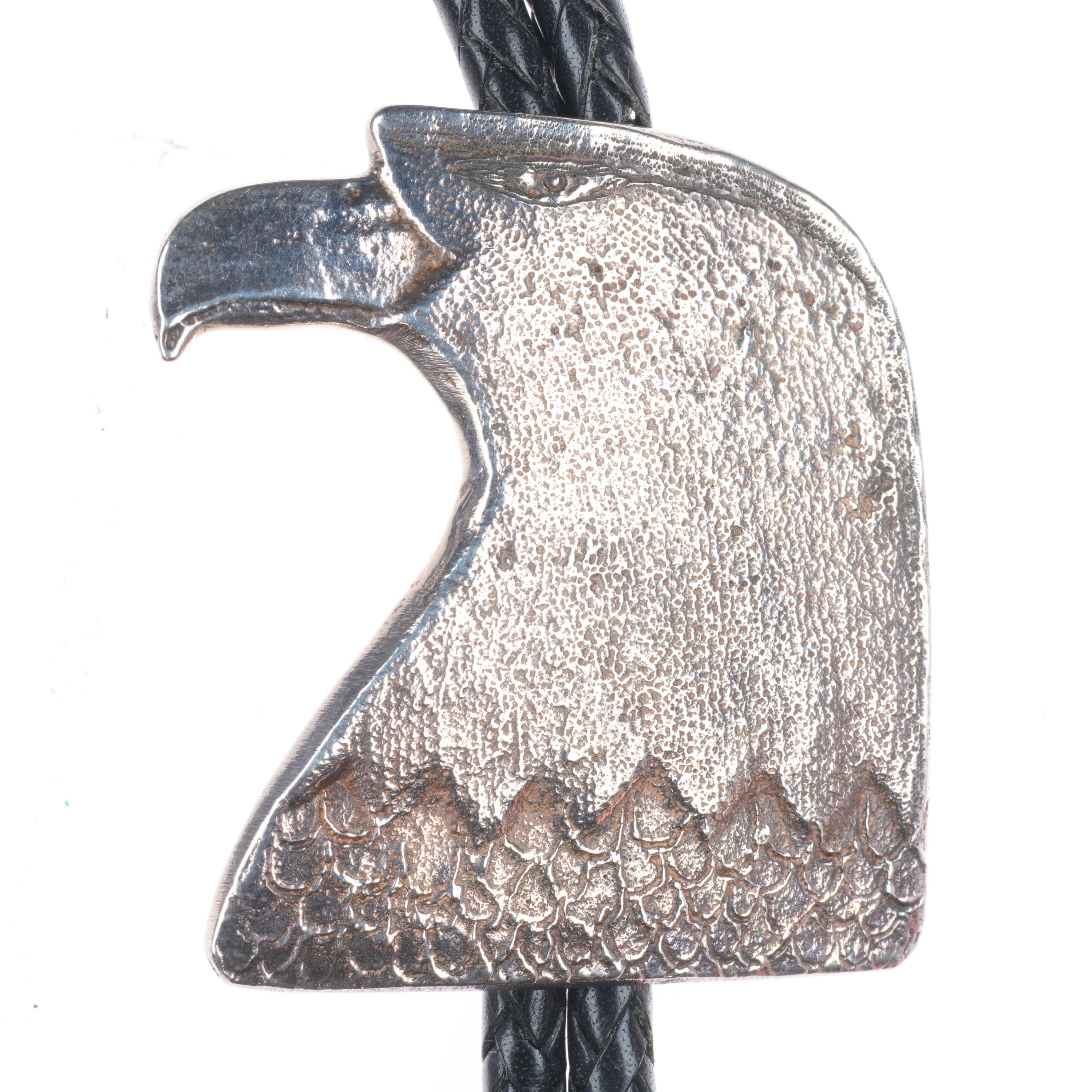 Heavy vintage southwestern sterling silver patriotic eagle bolo tie fancy tips