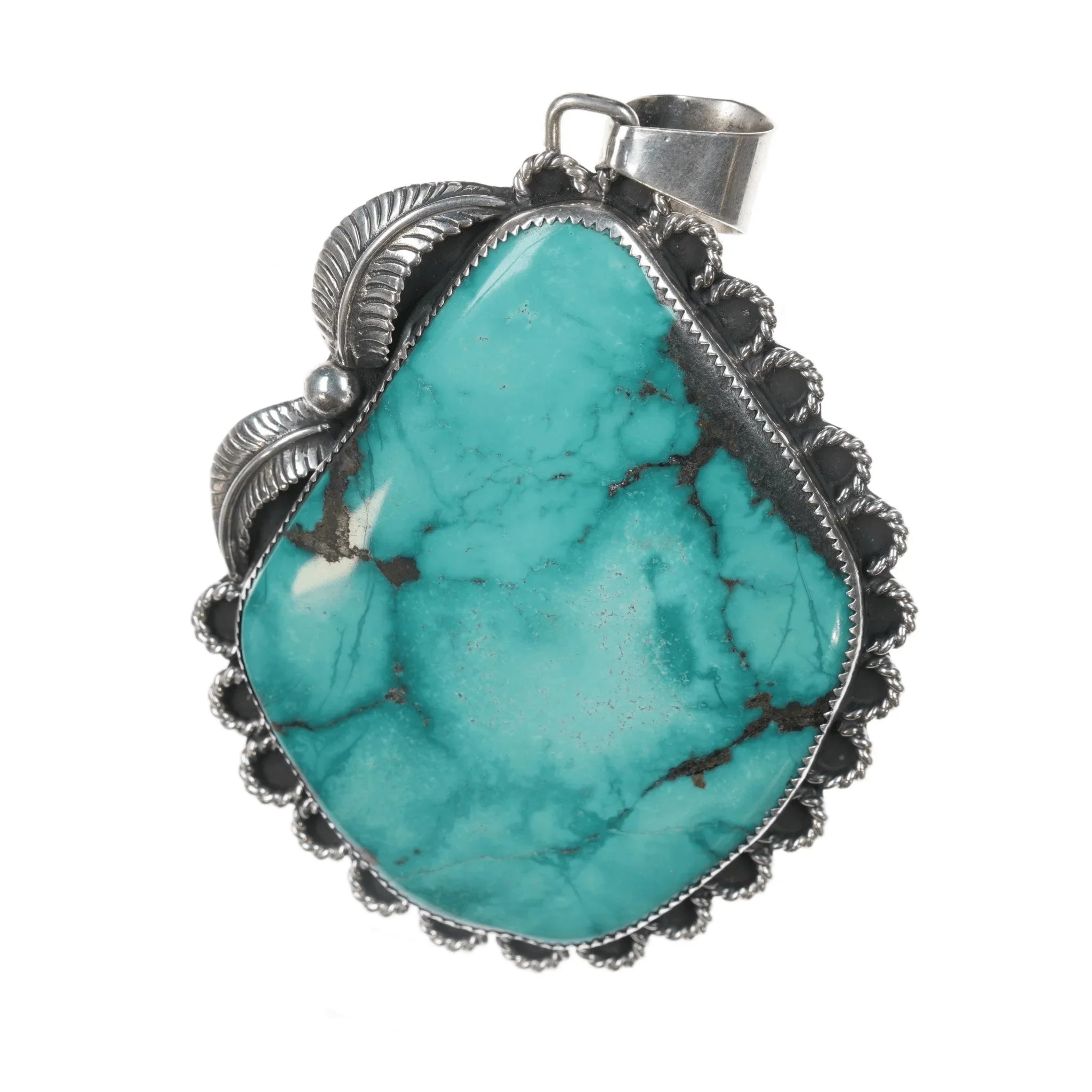 Huge Vintage Native American sterling and turquoise pendant. Measurements in pics, no issues. A scratched on the bail, no other detectable markings.
