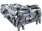 Jacob Troncosa San Felipe Pueblo Navajo Sterling Turquoise Table Box. Great piece likely one of a kind. Jacob is a fourth generation Navajo Silversmith that creates very bold and well made Objects. 6 5/8" x 3 3/8" x 2" Marked and tested sterling 503.2 grams. This is a really solid box made of thick heavy gage sterling, over 1.1 pounds of nothing but sterling silver and turquoise. Bigger and bolder than any similar type of box you may find. I had one other box by this artist in a different design and this one weighs 200 grams more as an example of how thick and heavy it is. Tw208