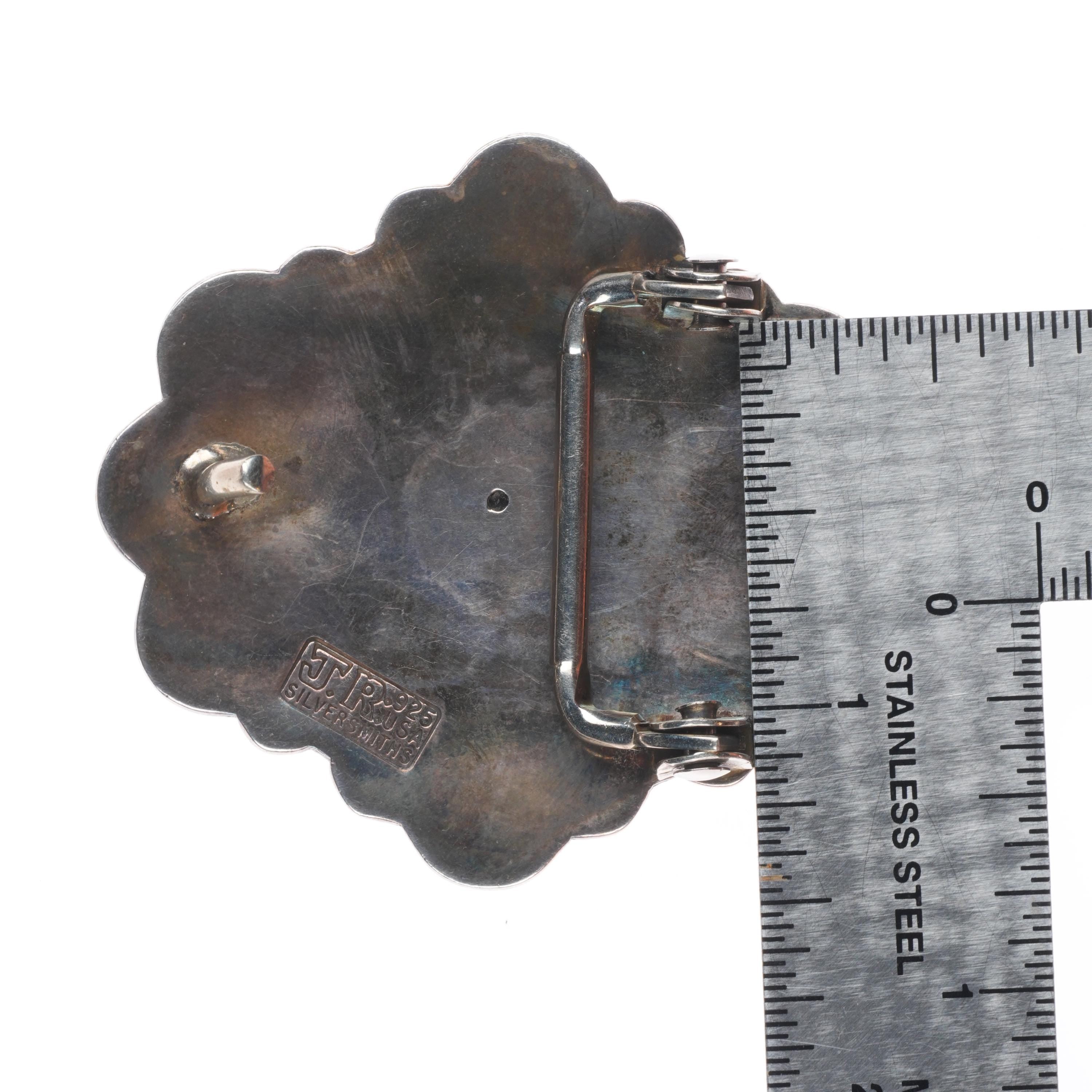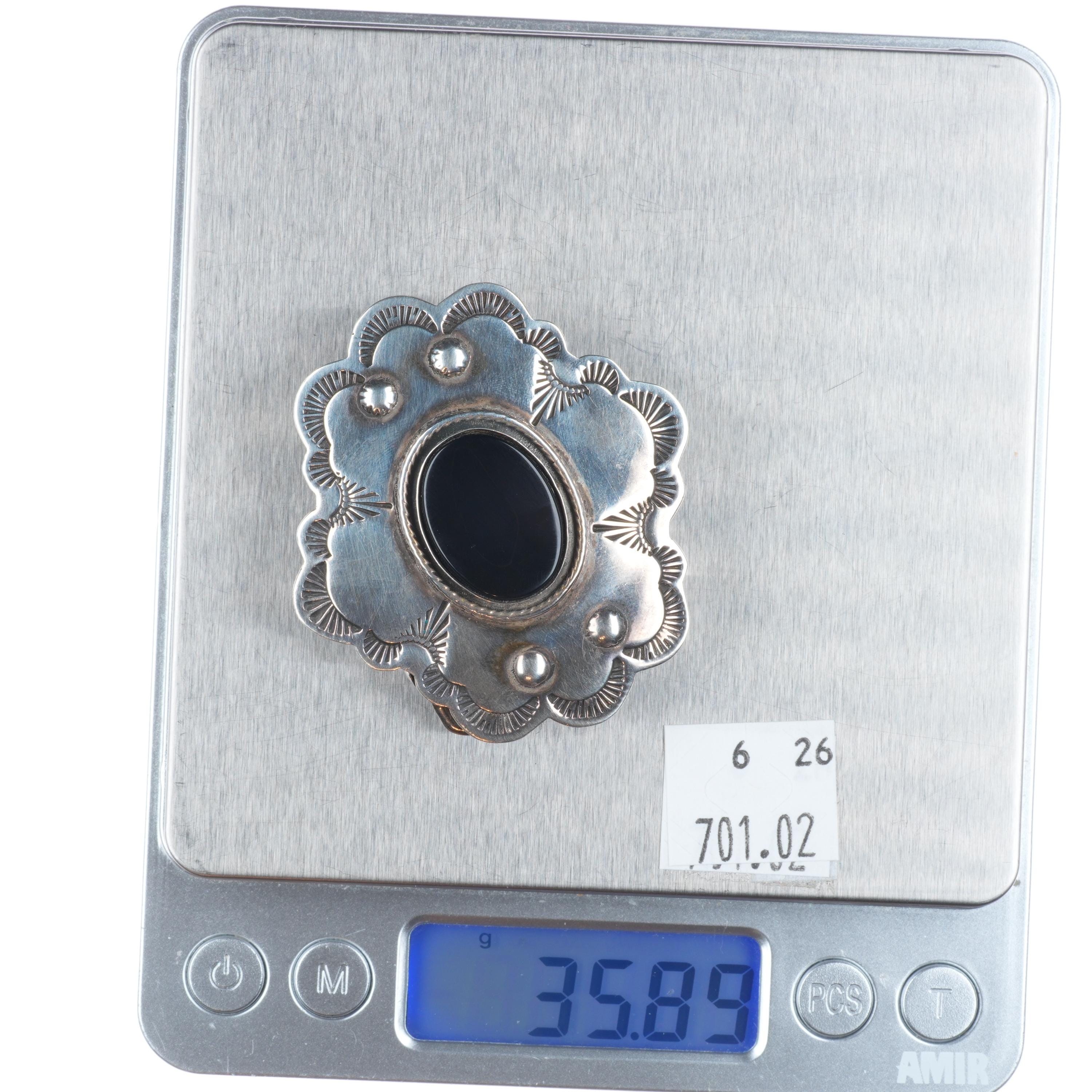 James Reid Santa Fe Southwestern sterling silver onyx belt buckle. Tested and guaranteed solid sterling silver with weight and measurements in pictures. Fully functional. All items will likely have some age appropriate/expected wear, the older they are the more wear they should have. Circa last quarter of the 20th century.. Fits up to a 1" belt.