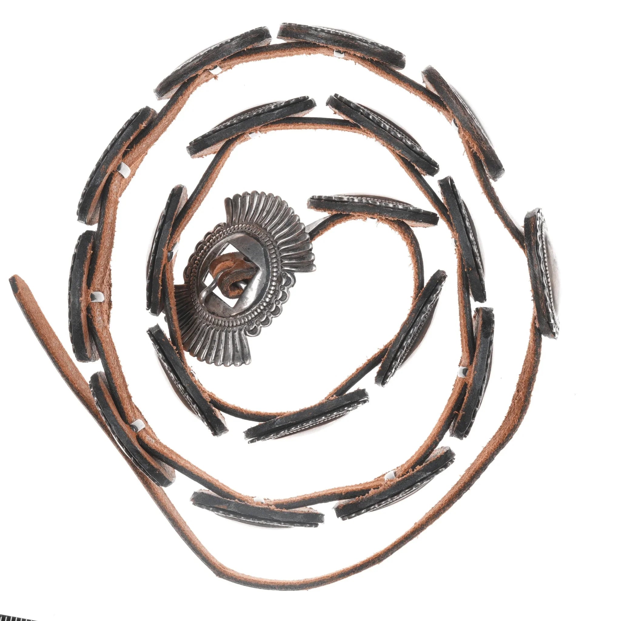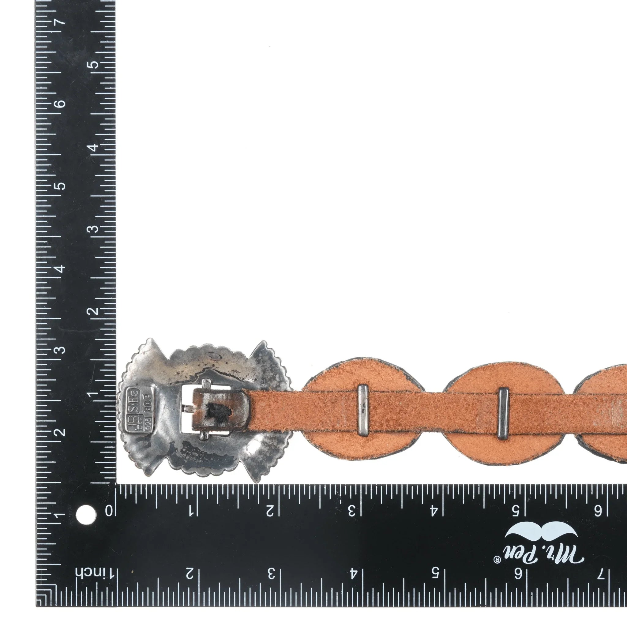 James Reid sterling silver concho belt. Small conchos, very sturdy and heavy for it's size. Very well made of course. circa 1990's. 324 grams 42.5" total length, usuable length a little less of course.
