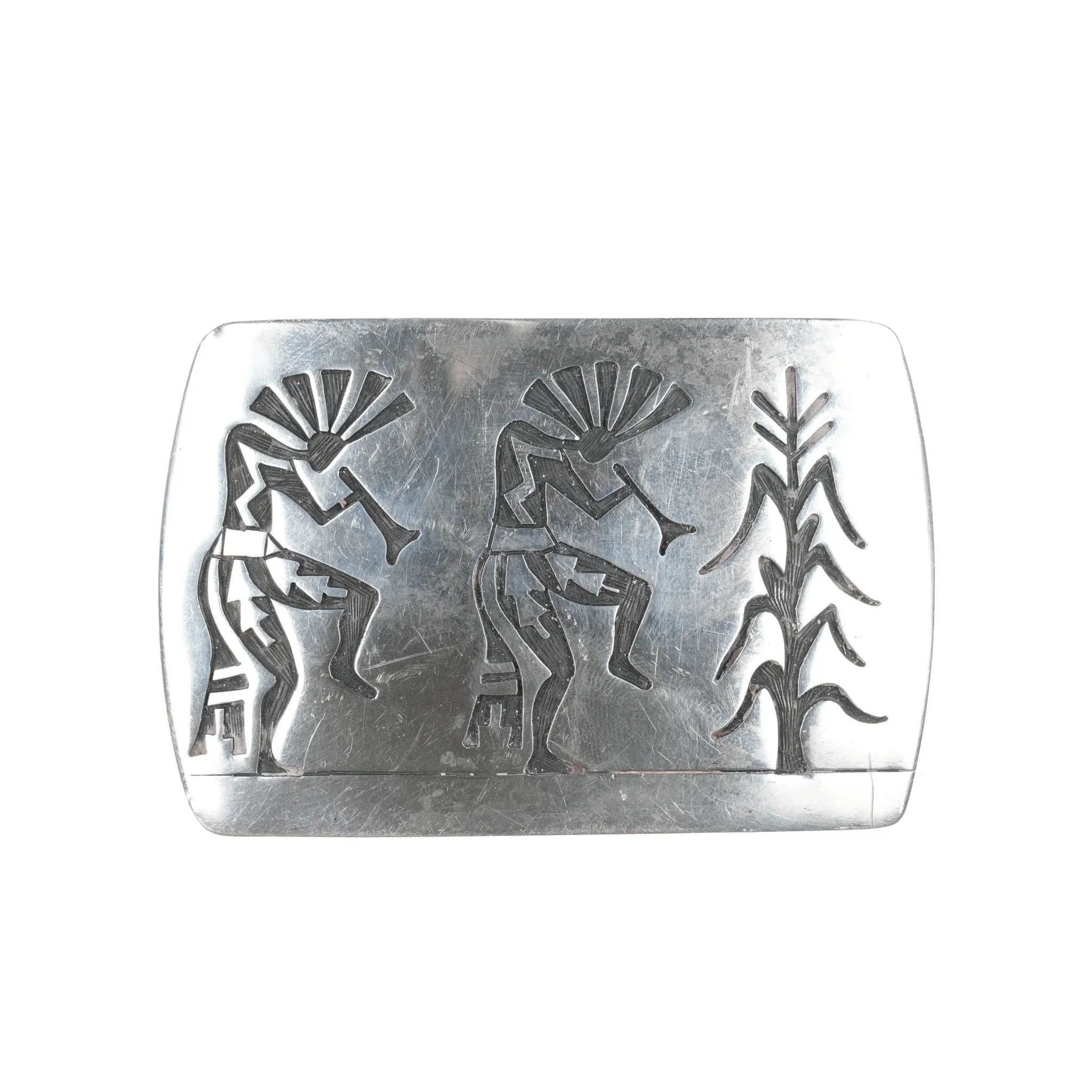 Joseph Harlan Hopi Overlay silver belt buckle. Fits a 1.5" belt, expected wear with no significant issues.