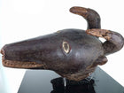 Large African Headdress in the Form of a Horned Beast. 20" x 12" wide x 12.5"<br>deep. I think it's really old, 19th to early 20th century. Nice estate fresh<br>ceremonial mask covered in hide with some wear as shown.