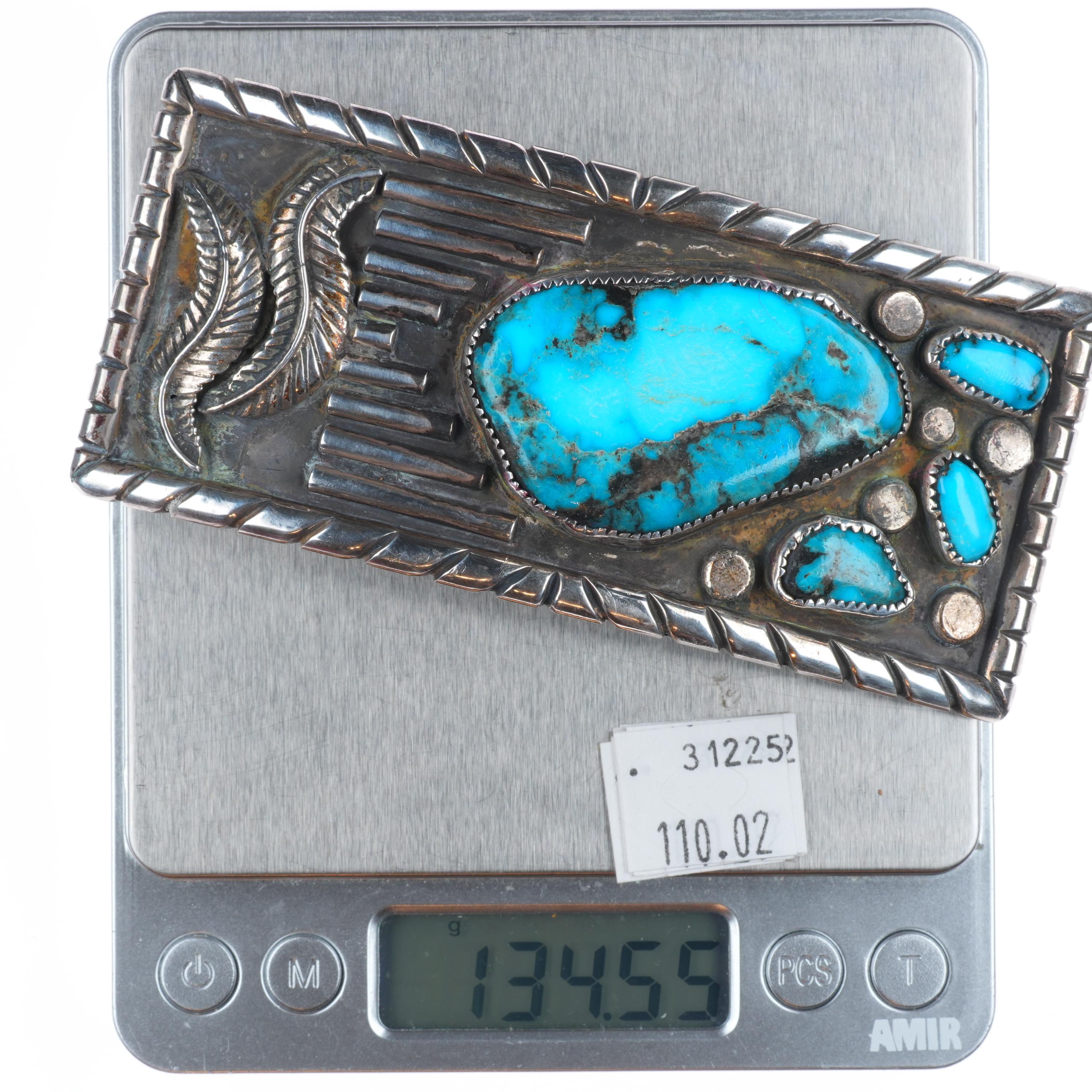 save for Jeff-Large long Vintage Navajo sterling silver belt buckle with nice turquoise