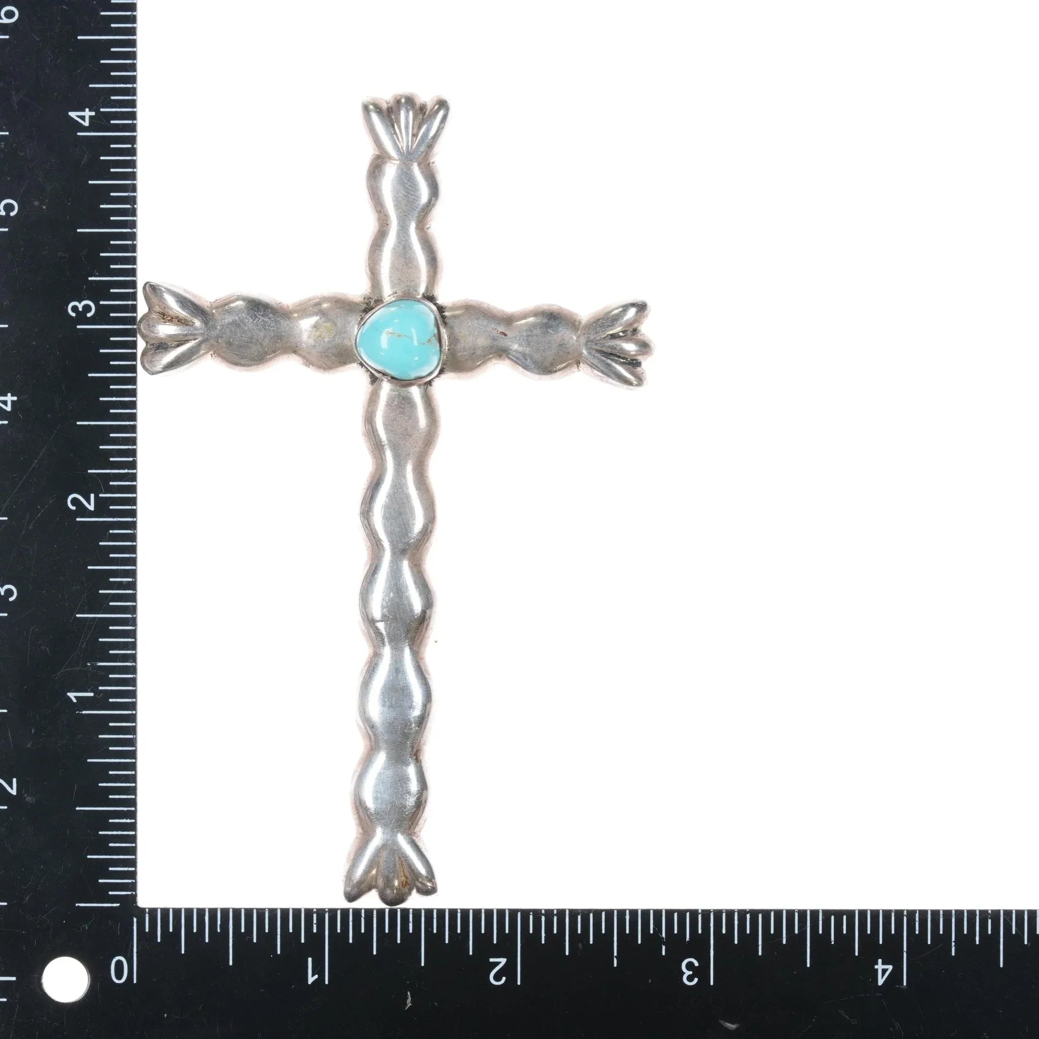 Large Vintage Native American sterling and turquoise cross pendant. Weight and measurements in pics. Unmarked solid sterling.