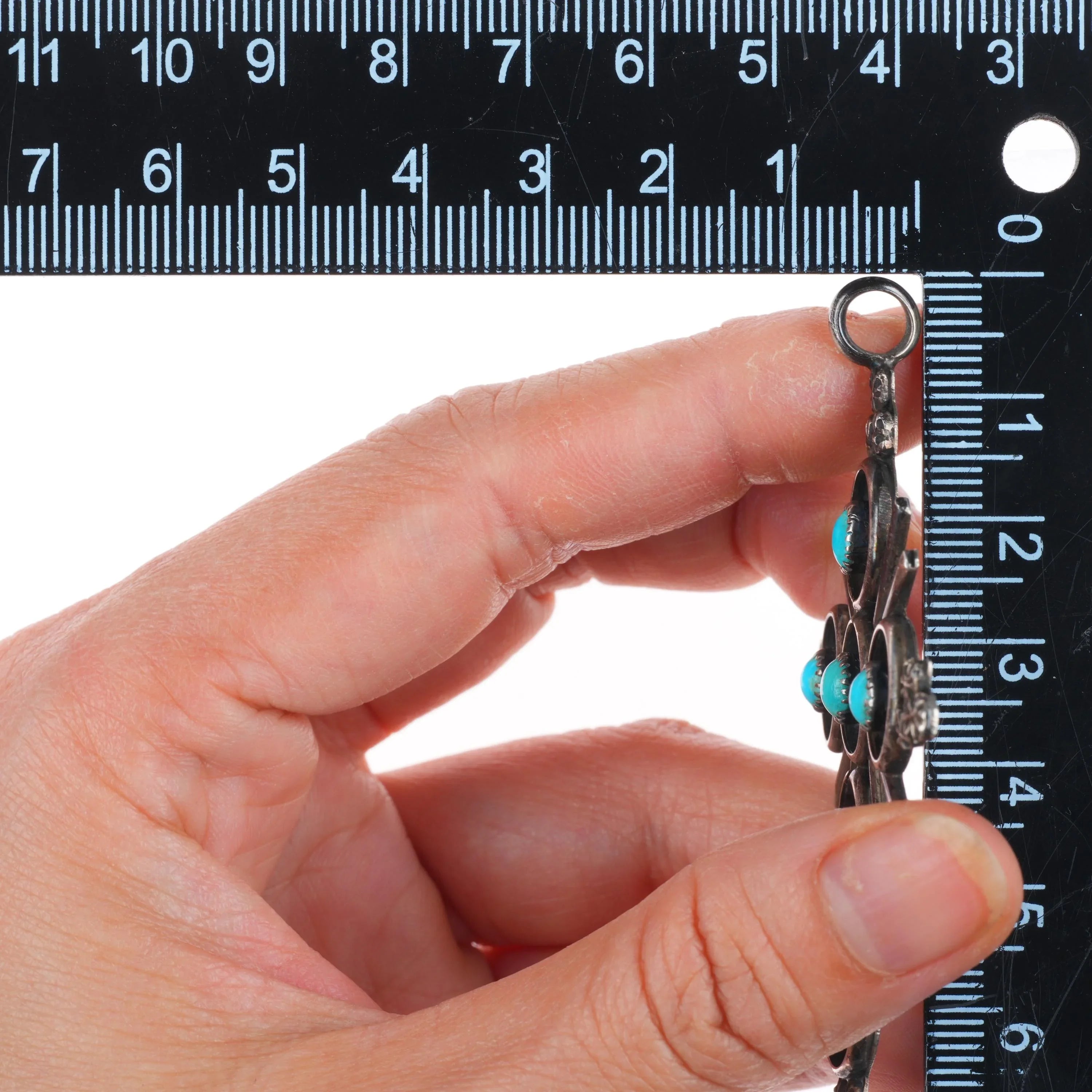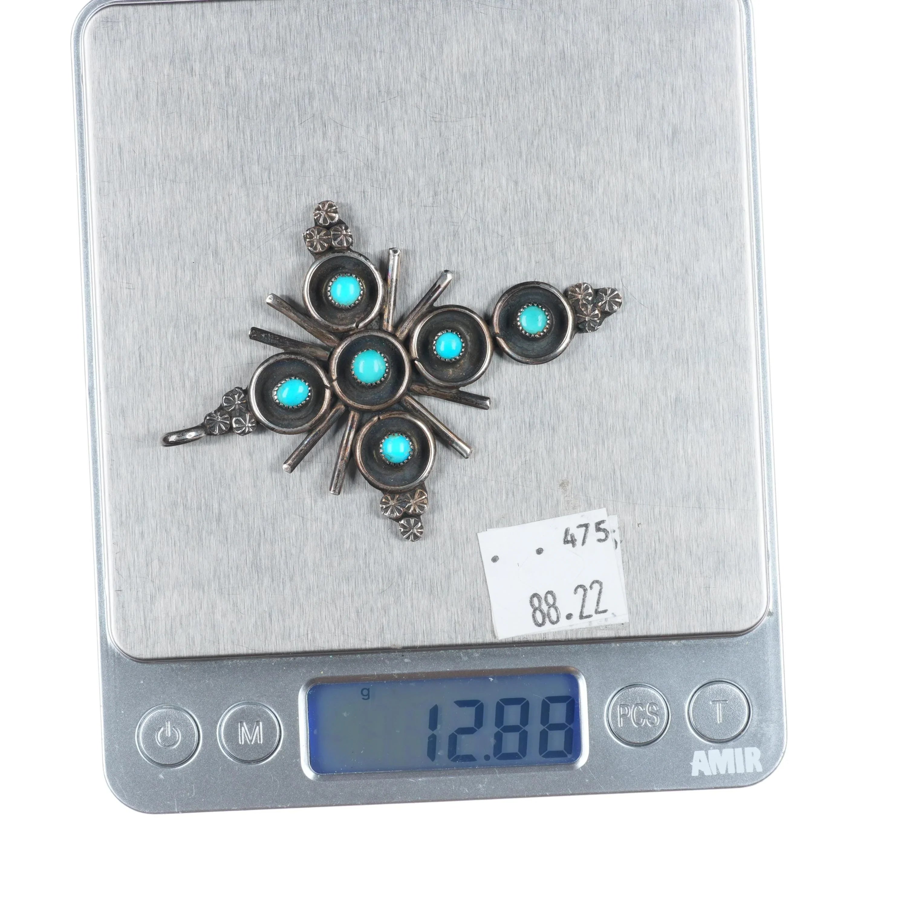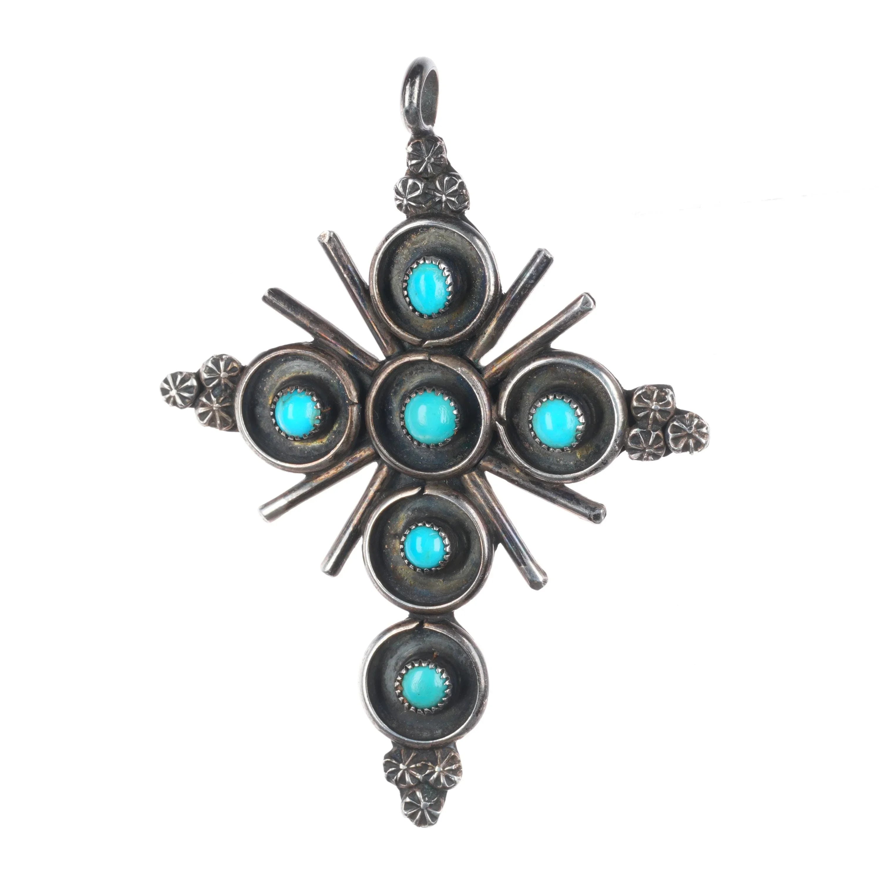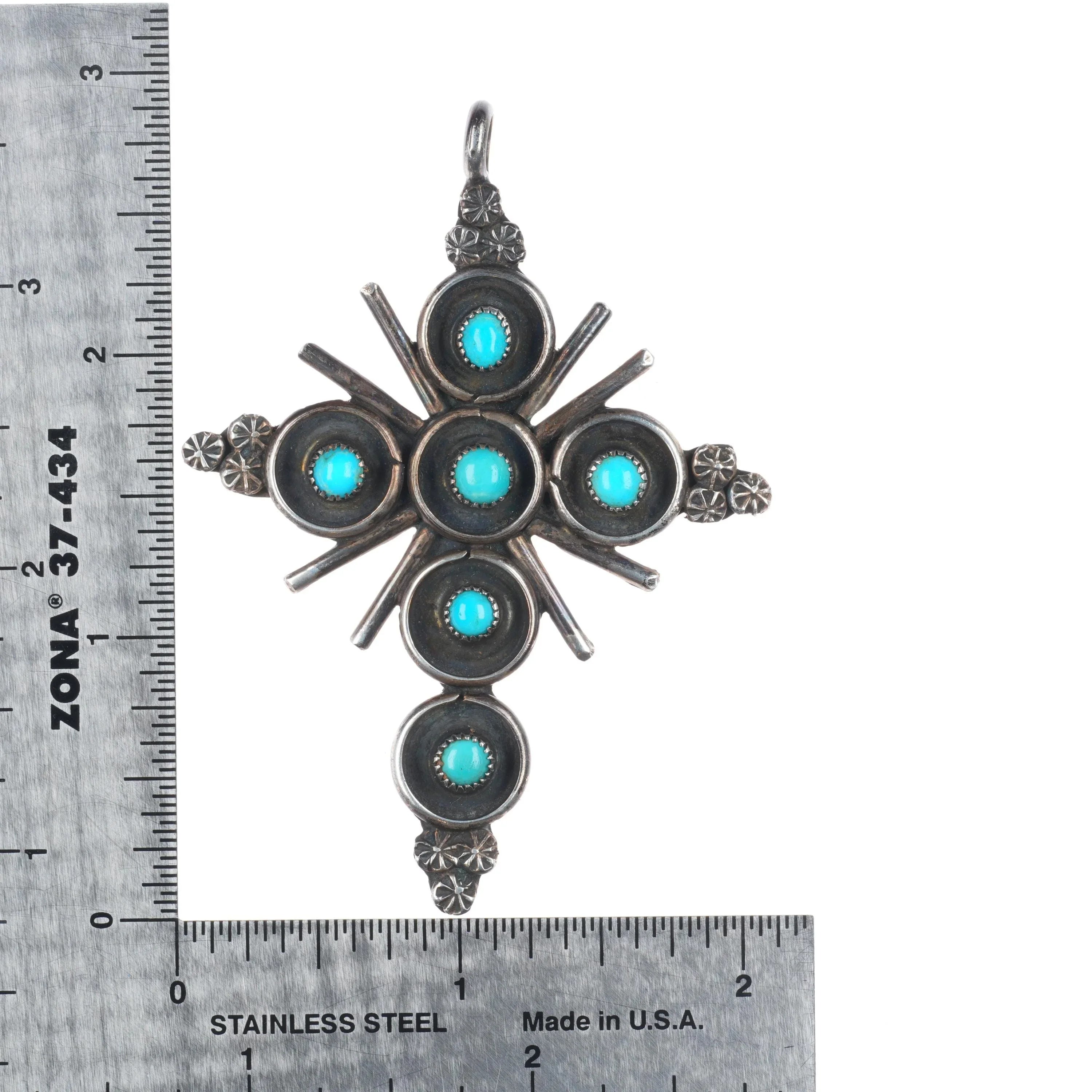 Large vintage Zuni snake eye turquoise sterling silver cross pendant