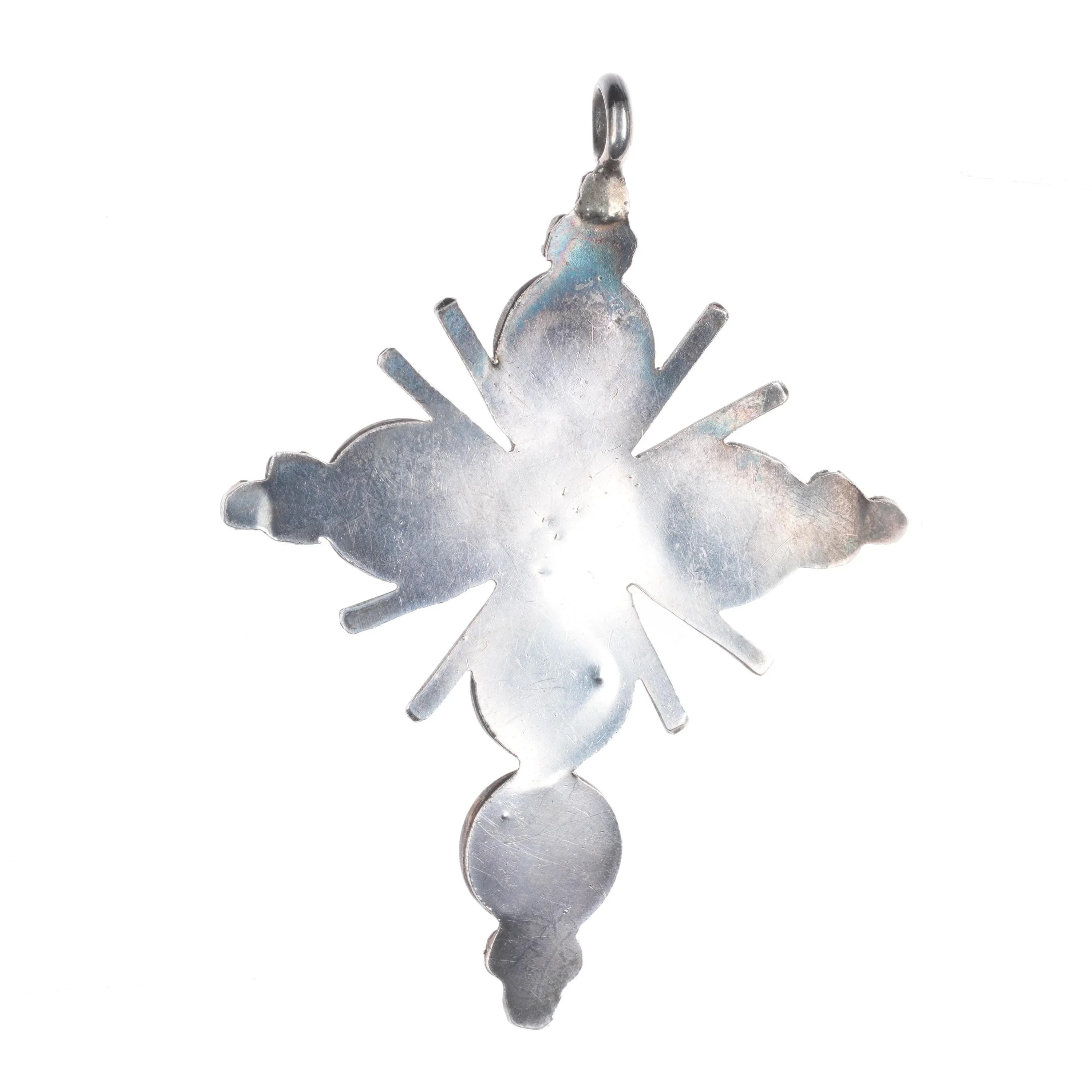 Large vintage Zuni snake eye turquoise sterling silver cross pendant. Solid sterling silver tested and guaranteed with weight and measurements in the pictures. Circa third quarter of the 20th century. Unmarked.