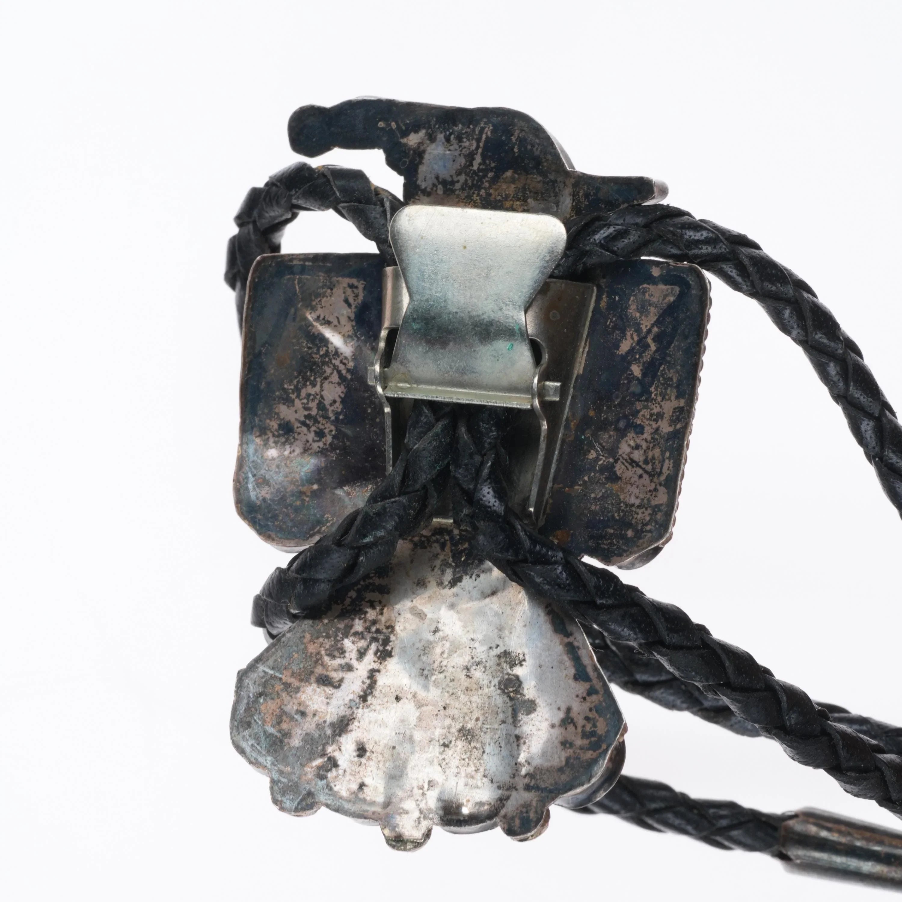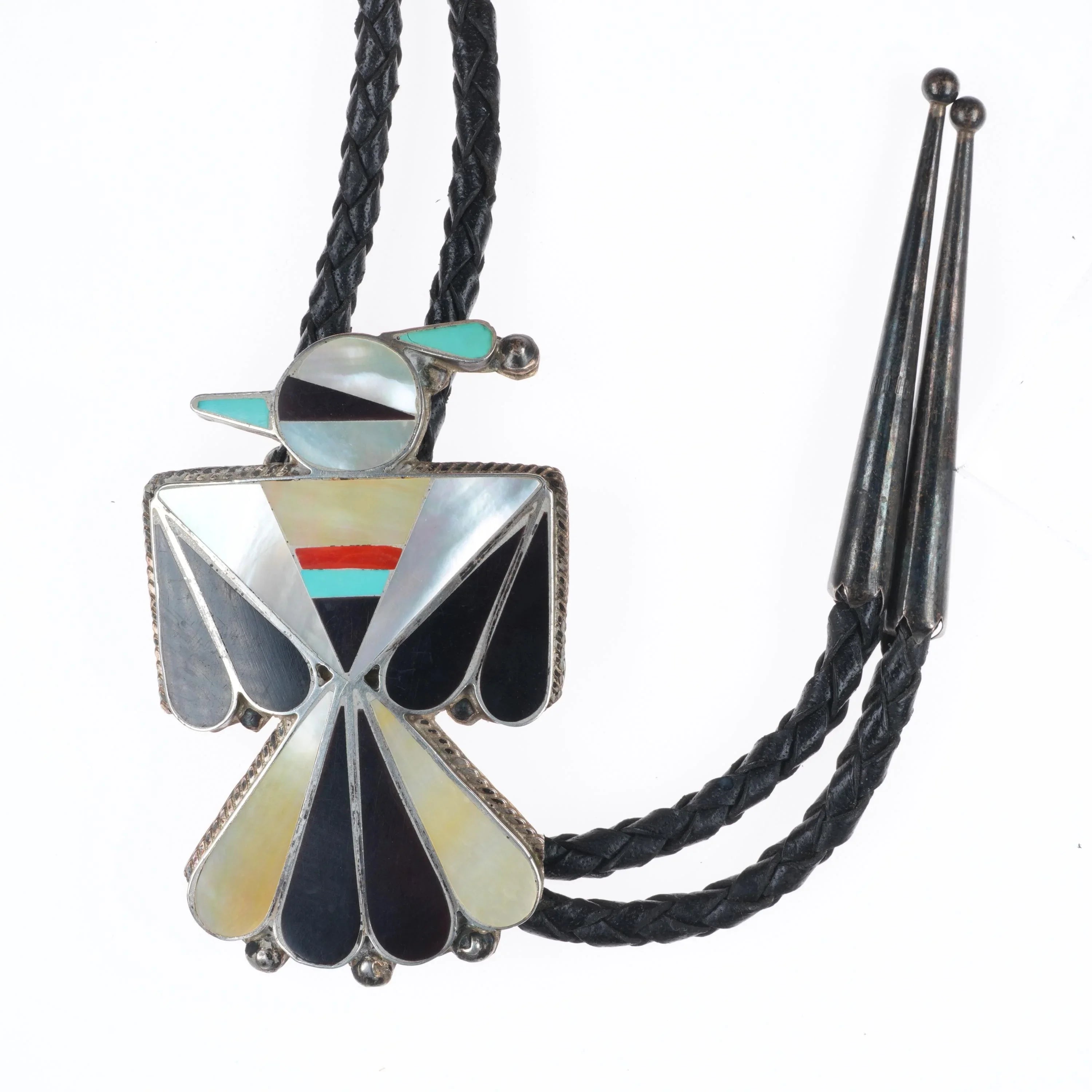 Large Vintage Zuni sterling silver thunderbird shell/stone inlay bolo tie
