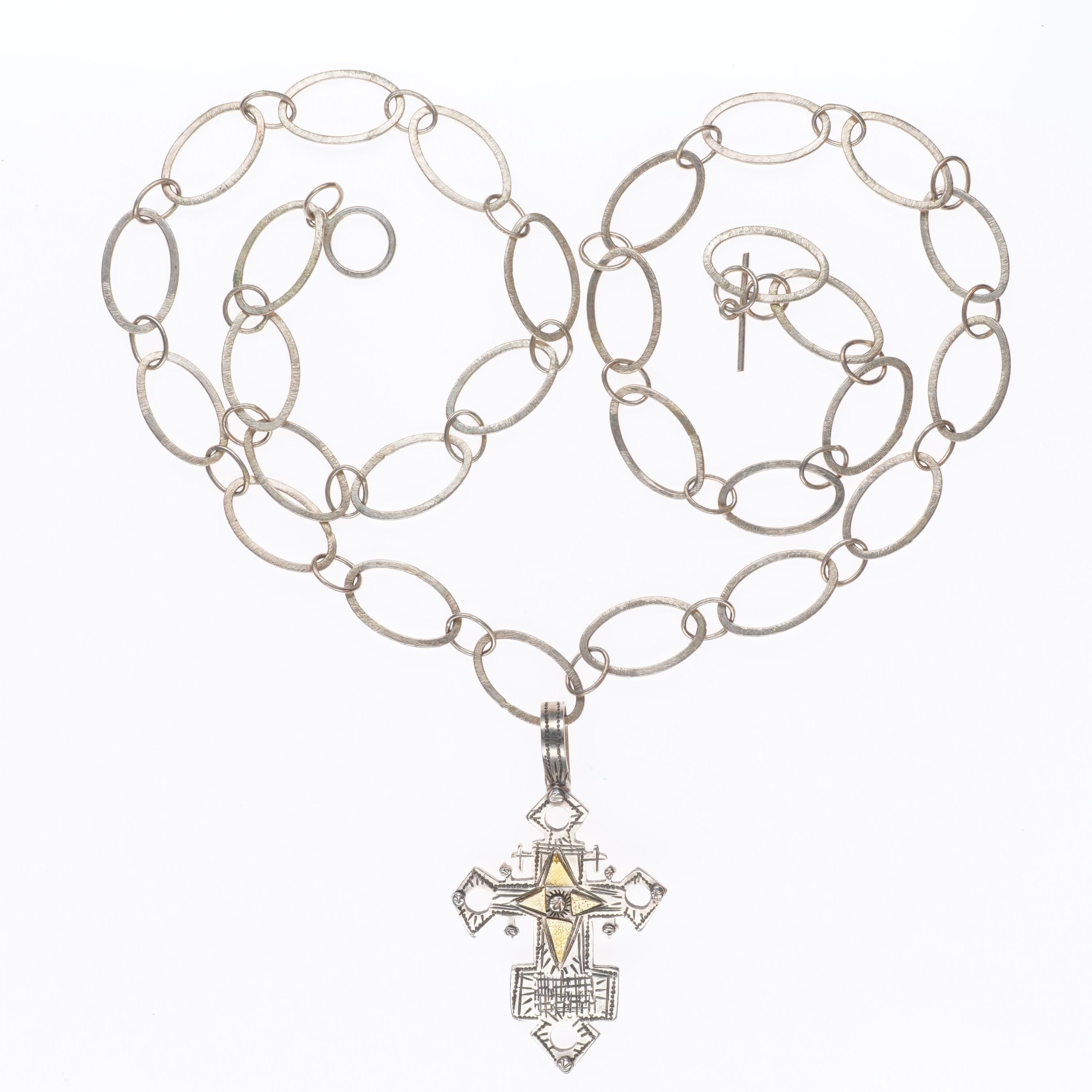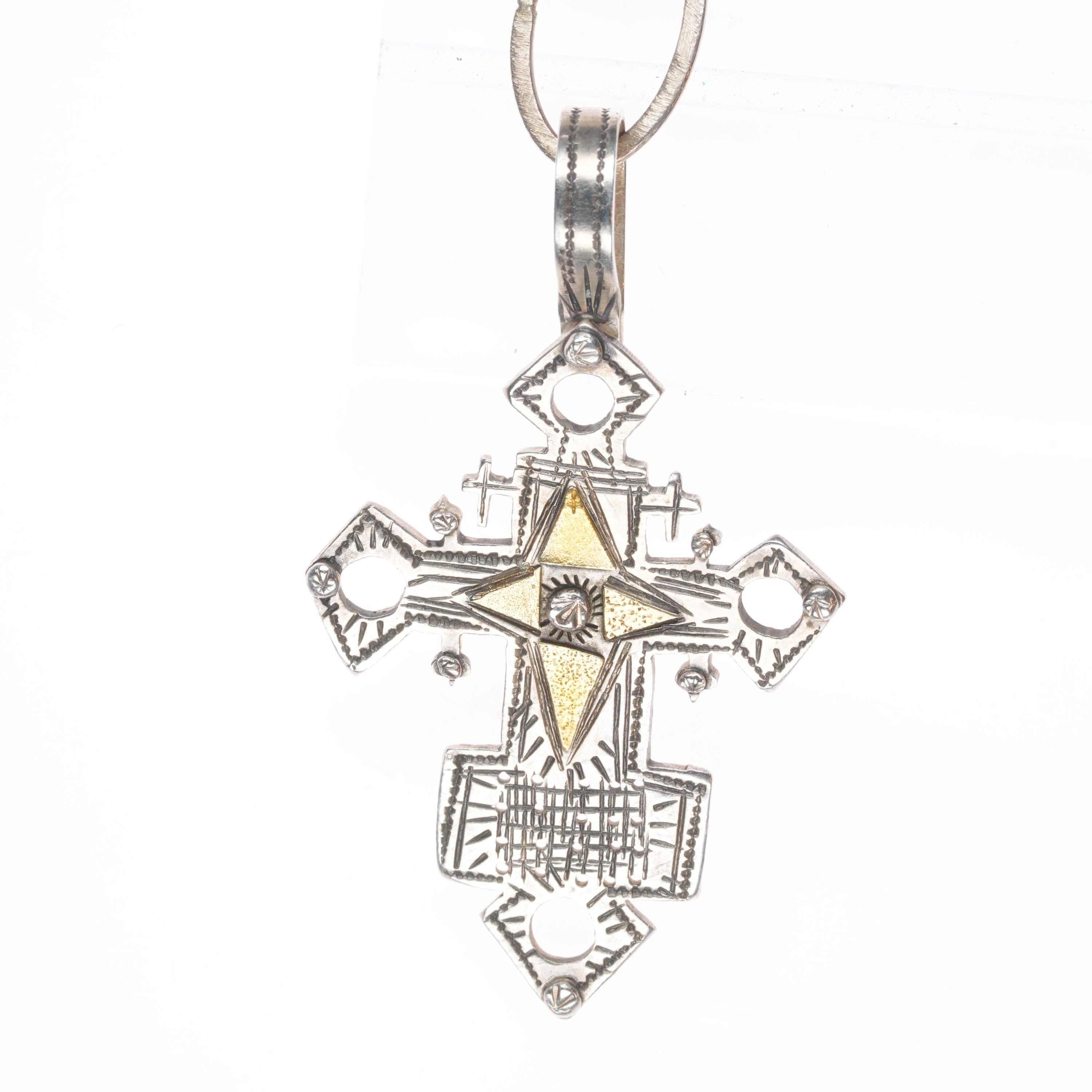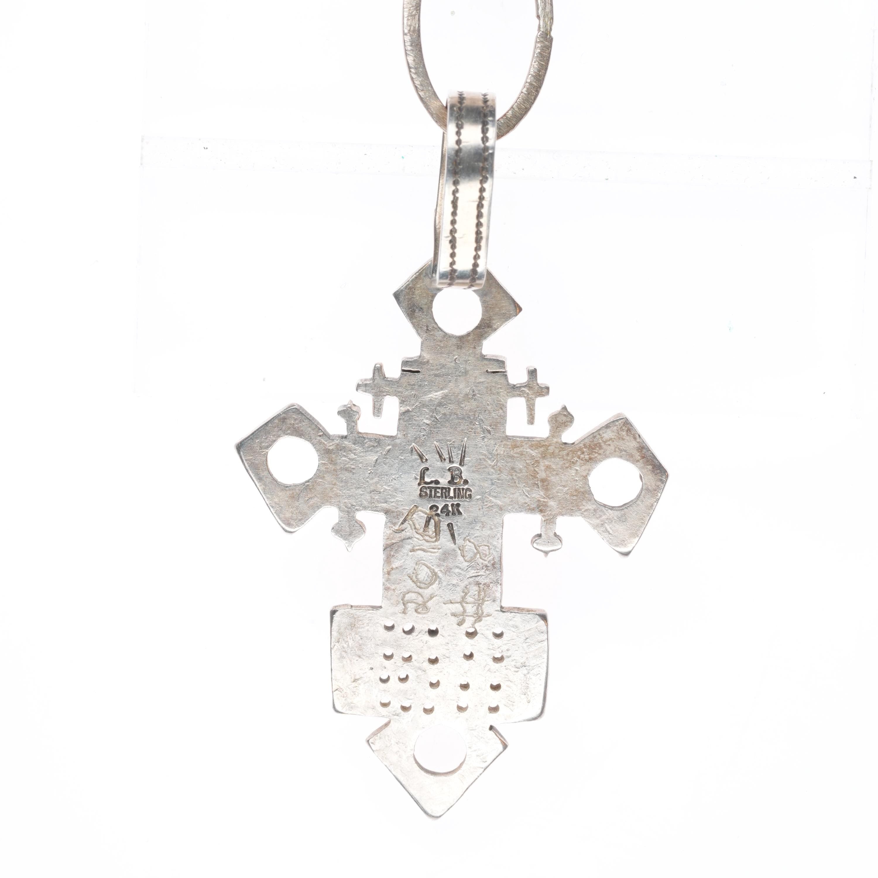 LB Southwestern sterling silver 24k gold accents cross pendant/necklace