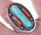 Louis Aberbach 1970's Sterling turquoise and coral ring