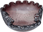 Mid century Murano Controlled bubbles silver foil bowl. Great piece from the third quarter of the 20th century with no damage. 7" x 3" tall in deep amethyst color. Nice freeform piece with large slots for a cigar ashtray if desired. tw129