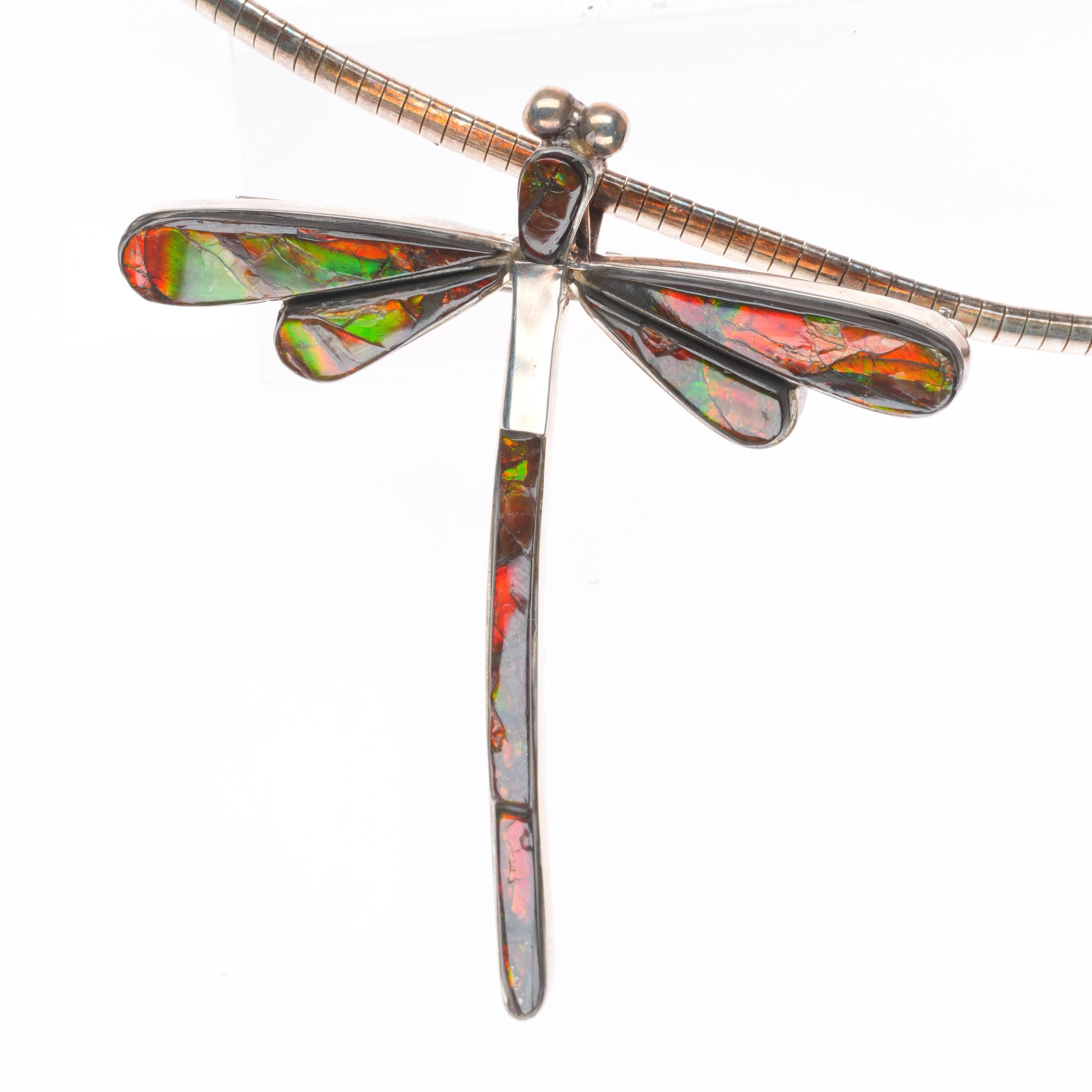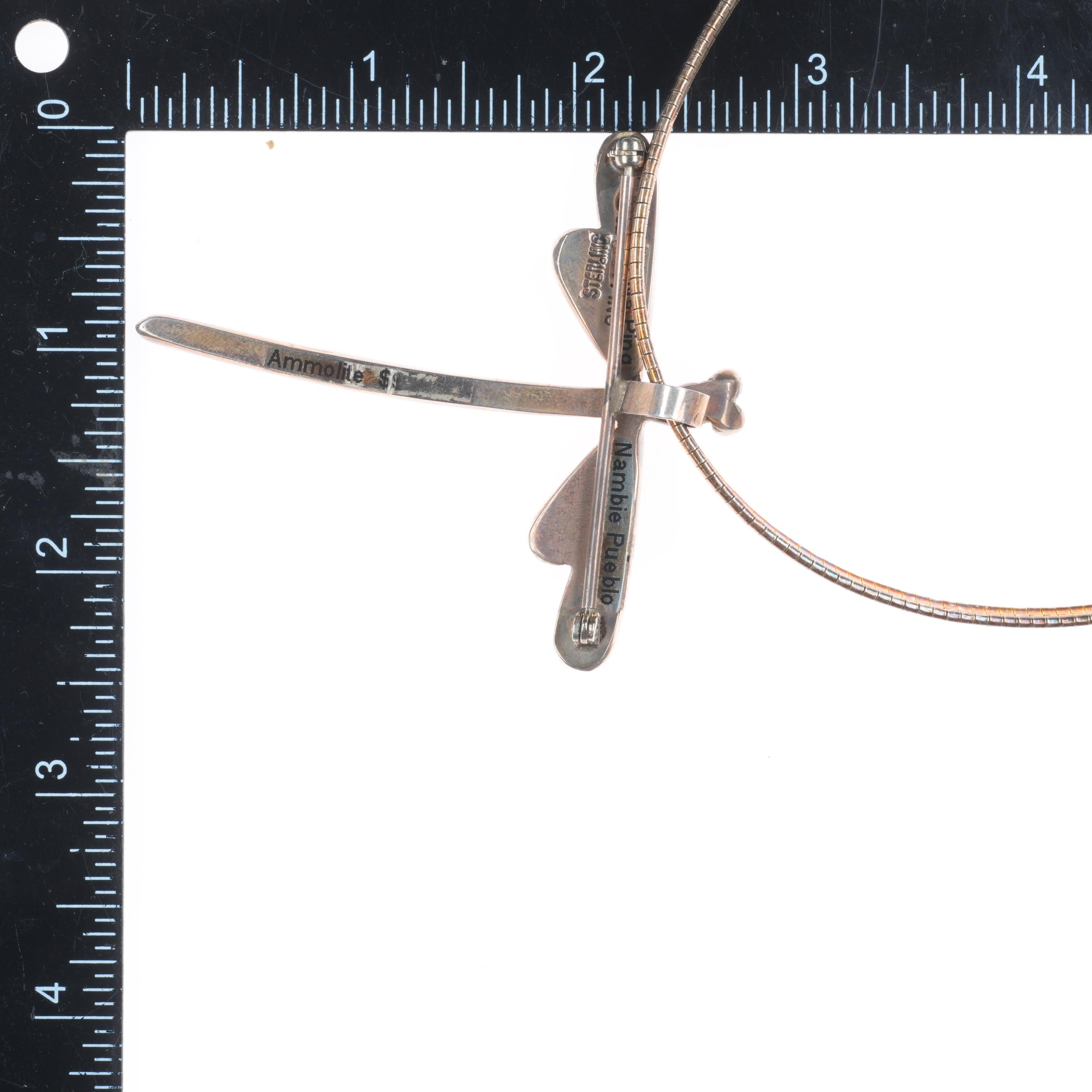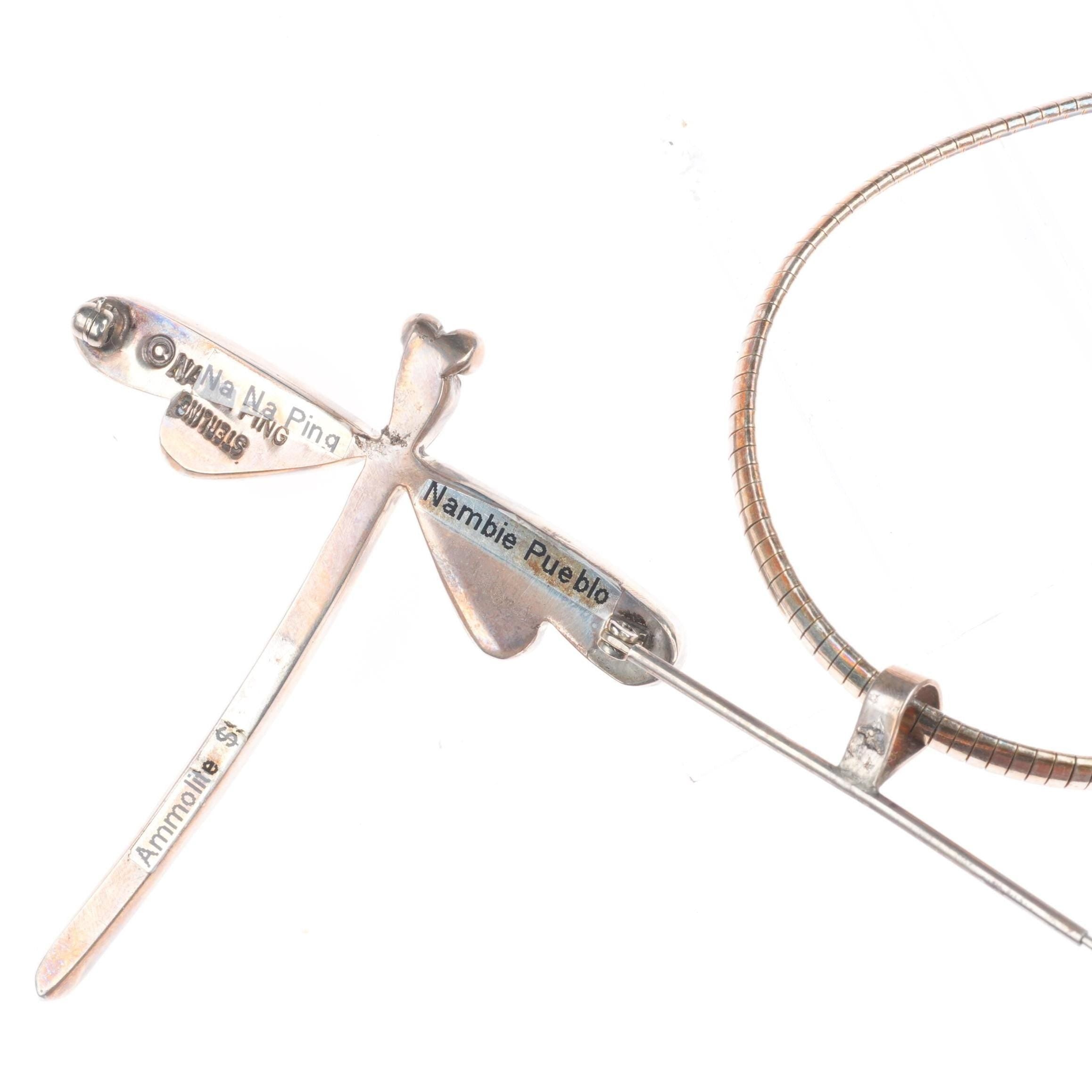 Na Na Ping Yaqui sterling silver ammolite dragonfly pendant/pin brooch. Selling the necklace shown in good condition with measurements in pictures. 18" Necklace, sterling, not by the artist. Pendant is amazing. Tested and guaranteed solid sterling silver. Weight and measurements in pictures.