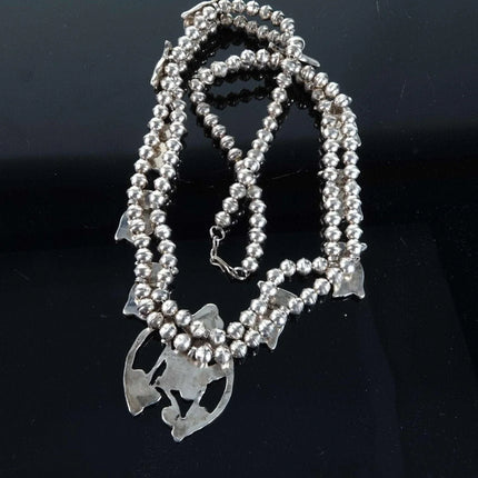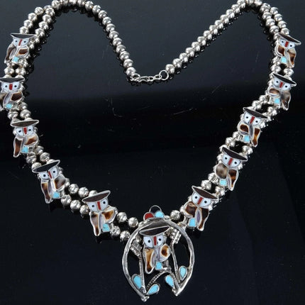 Pitkin Natewa Zuni Turquoise & Shell Inlay Owl Necklace 22" length, 1.5" x 2" center pendant | Signed: P Natewa 68.2 grams with no damage, tested sterling.