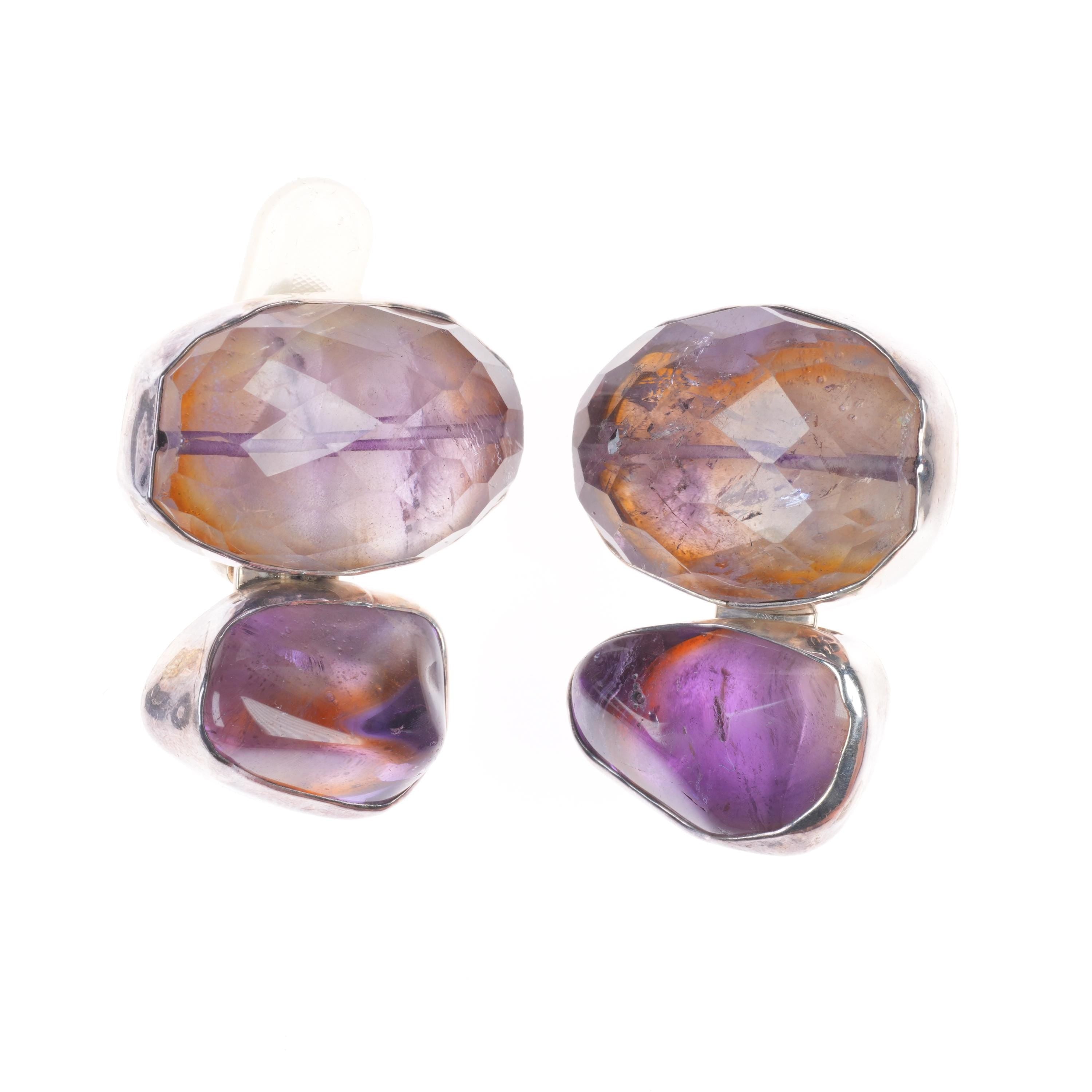 Rebecca Collins-Dallas Ametrine sterling silver earrings.. Great earrings with no issues, tested and guaranteed solid sterling silver, any marks detected, weight, and measurements will be shown in the pictures. Clip on earrings with strong springs on clips, worn little if any.