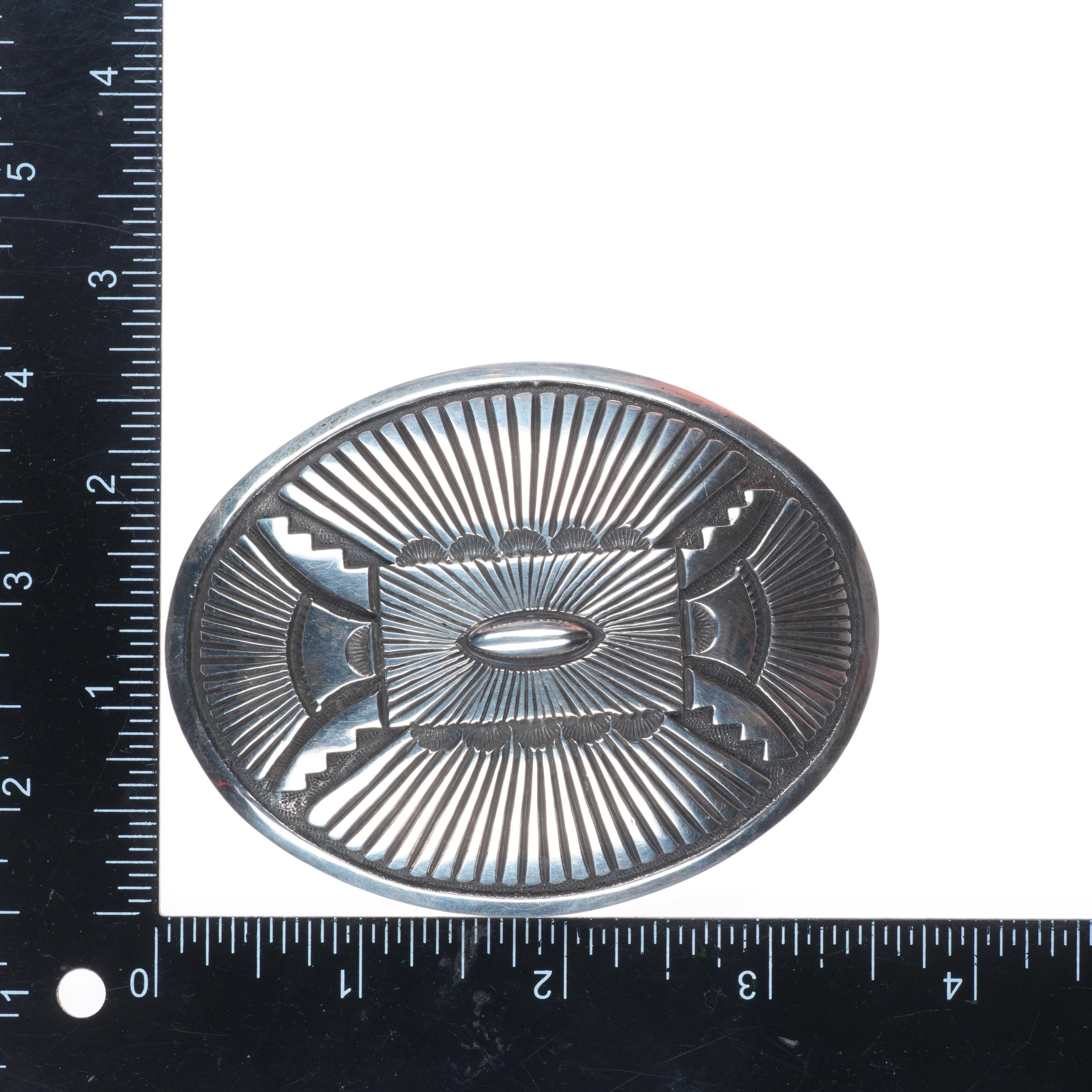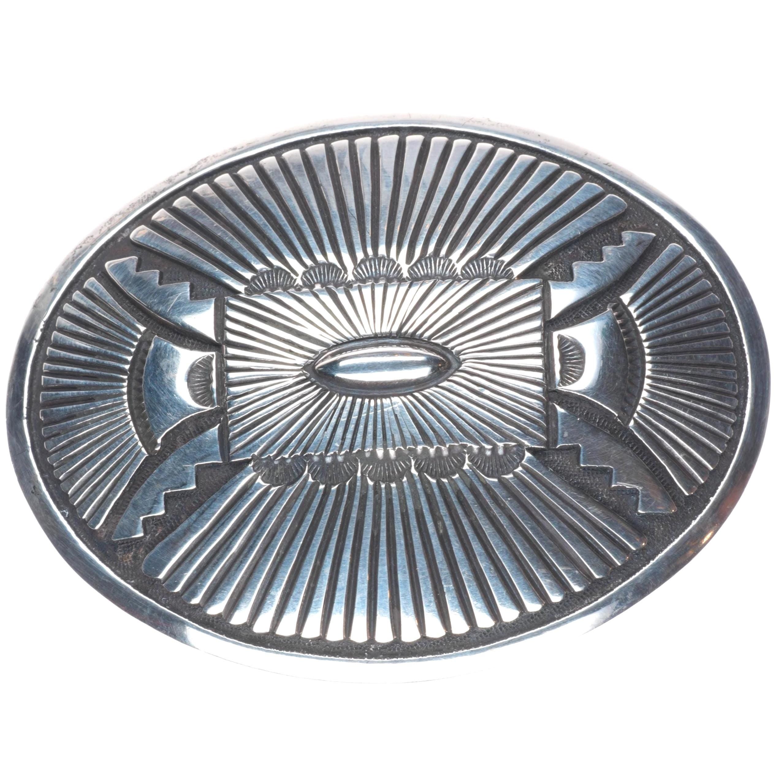 Rick Martinez Navajo sterling silver chiseled concho style belt buckle. Tested and guaranteed solid sterling silver with weight and measurements in pictures. Fully functional. All items will likely have some age appropriate/expected wear, the older they are the more wear they should have. Circa last quarter of the 20th century.. Fits up to a 1.5" belt.