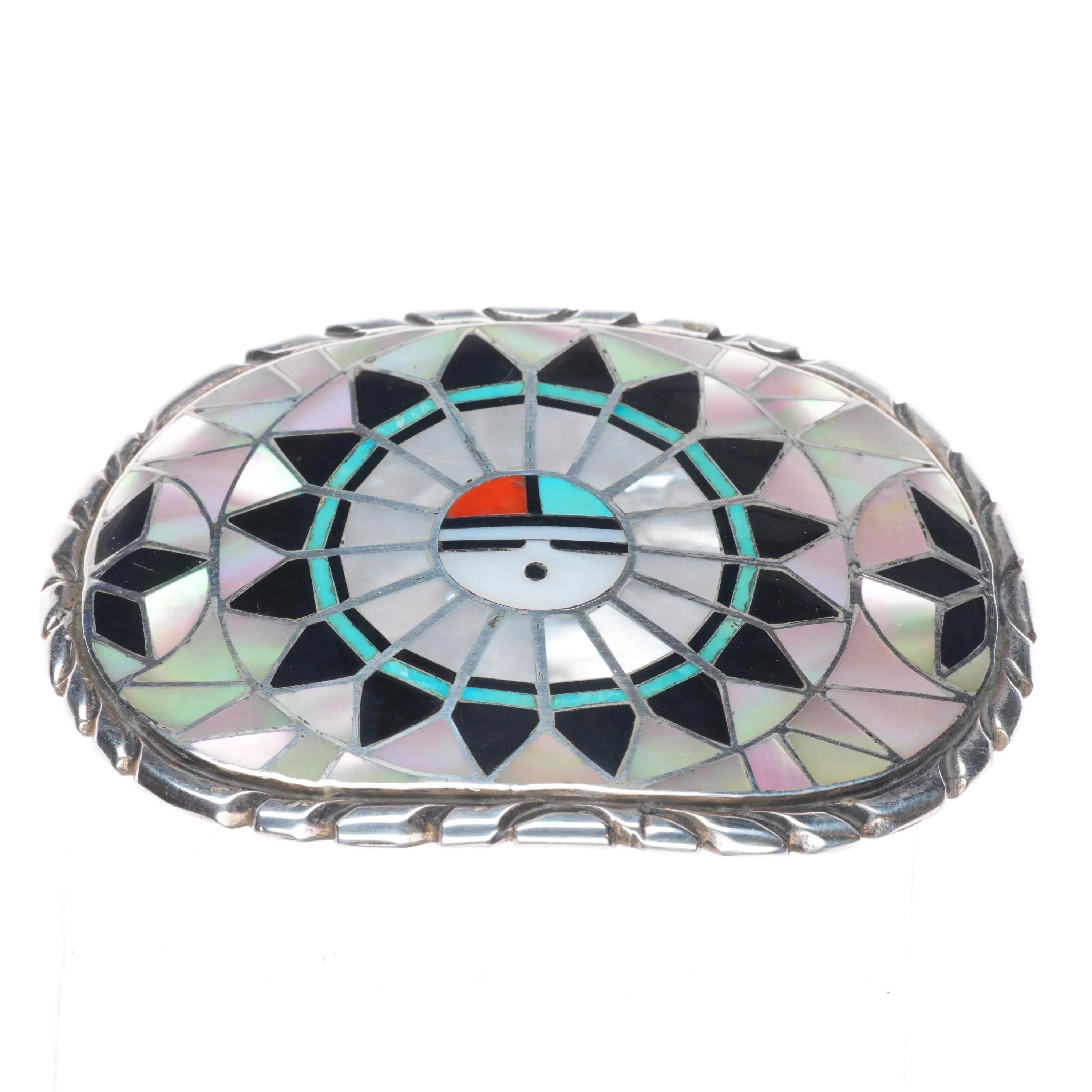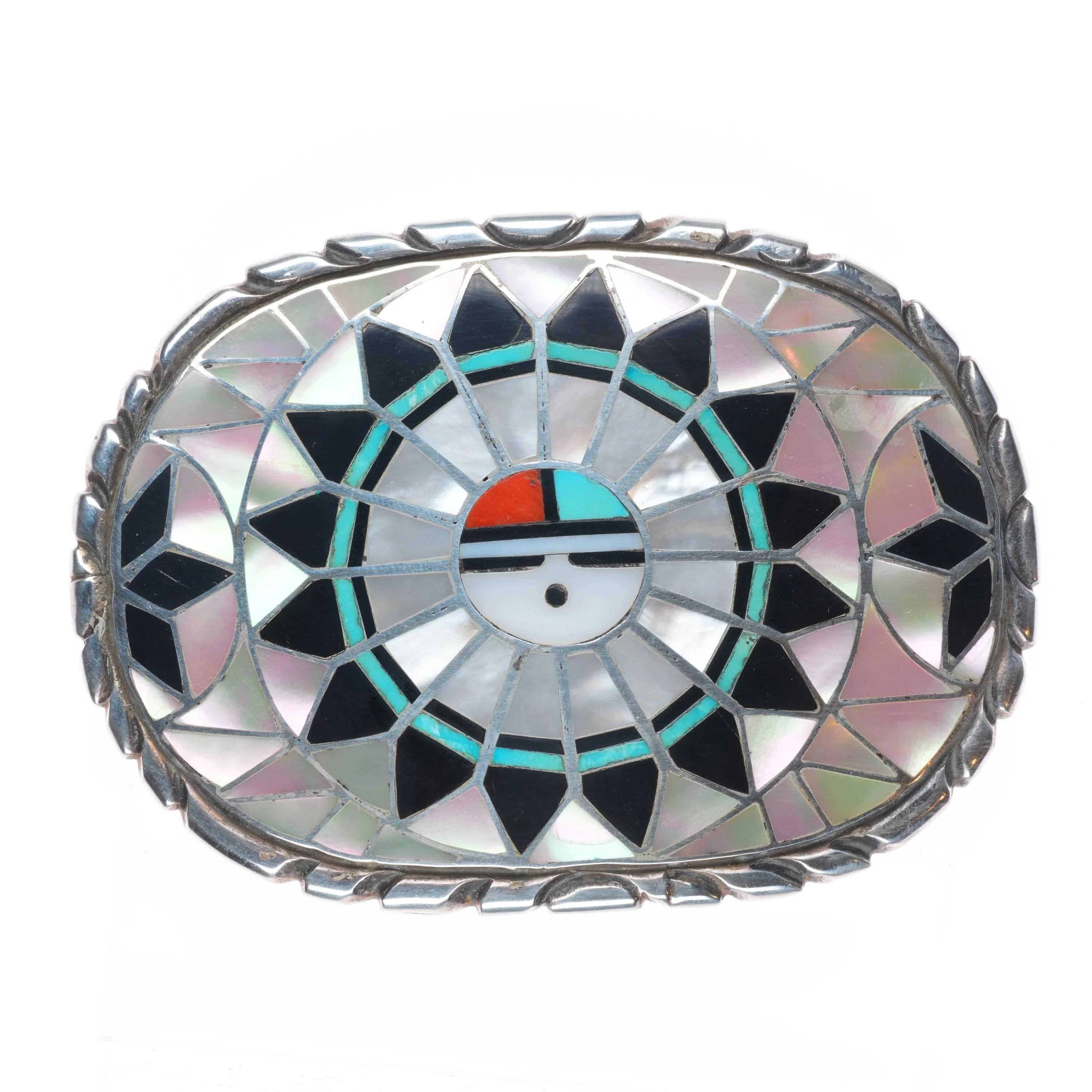 RLK Zuni Ralph and Lillie Kallestewa vintage sterling silver sunface belt buckle