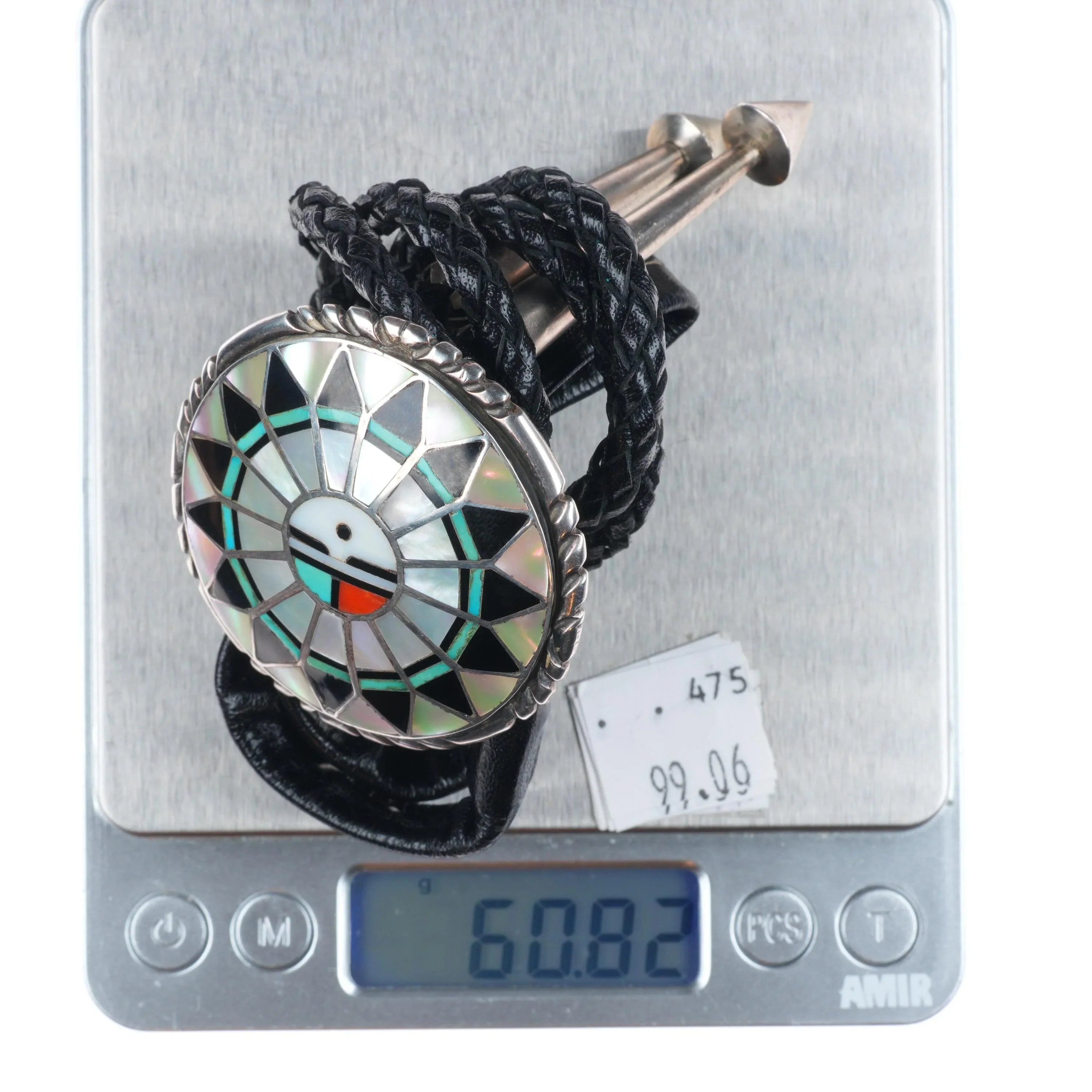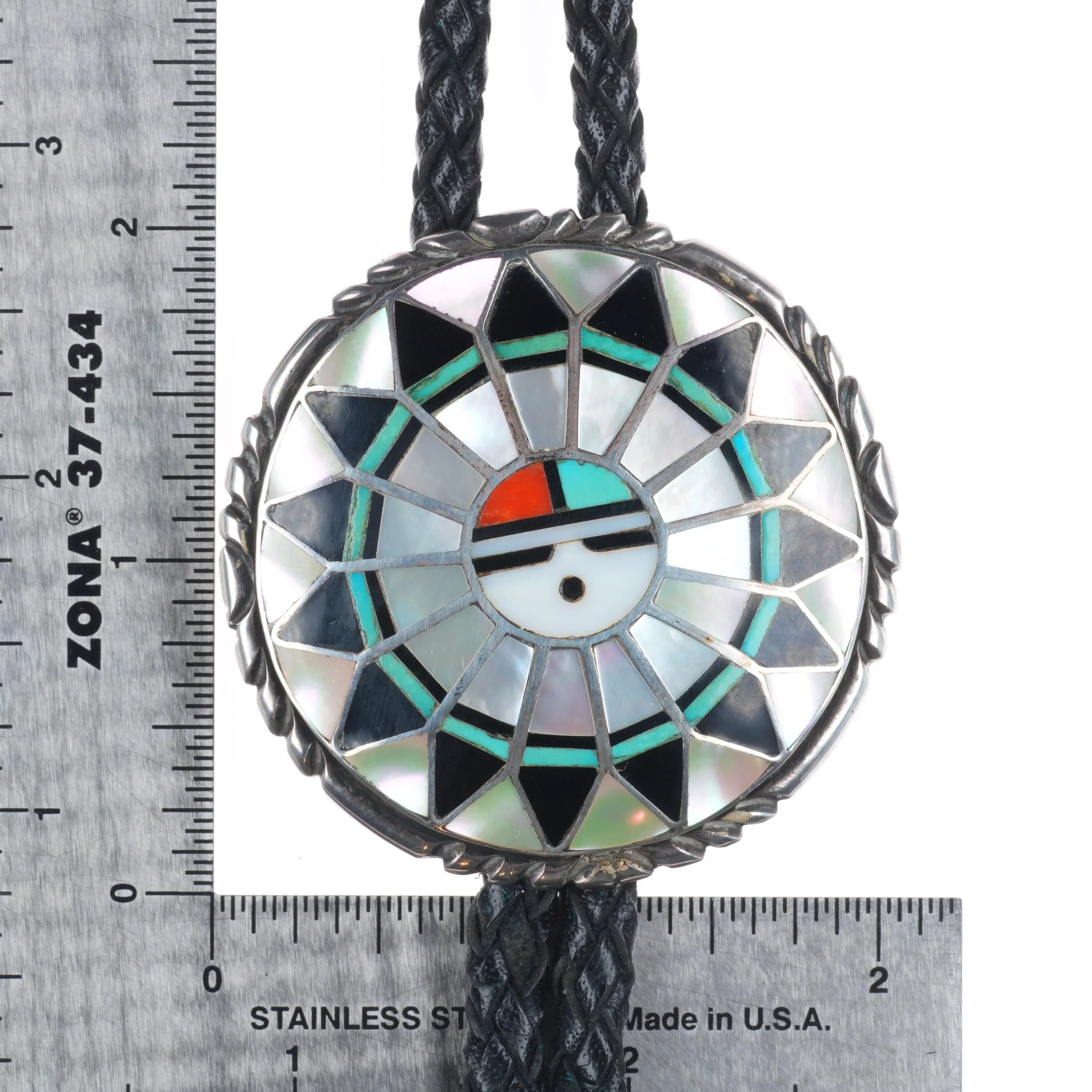 RLK Zuni Ralph and Lillie Kallestewa vintage sterling silver sunface bolo tie