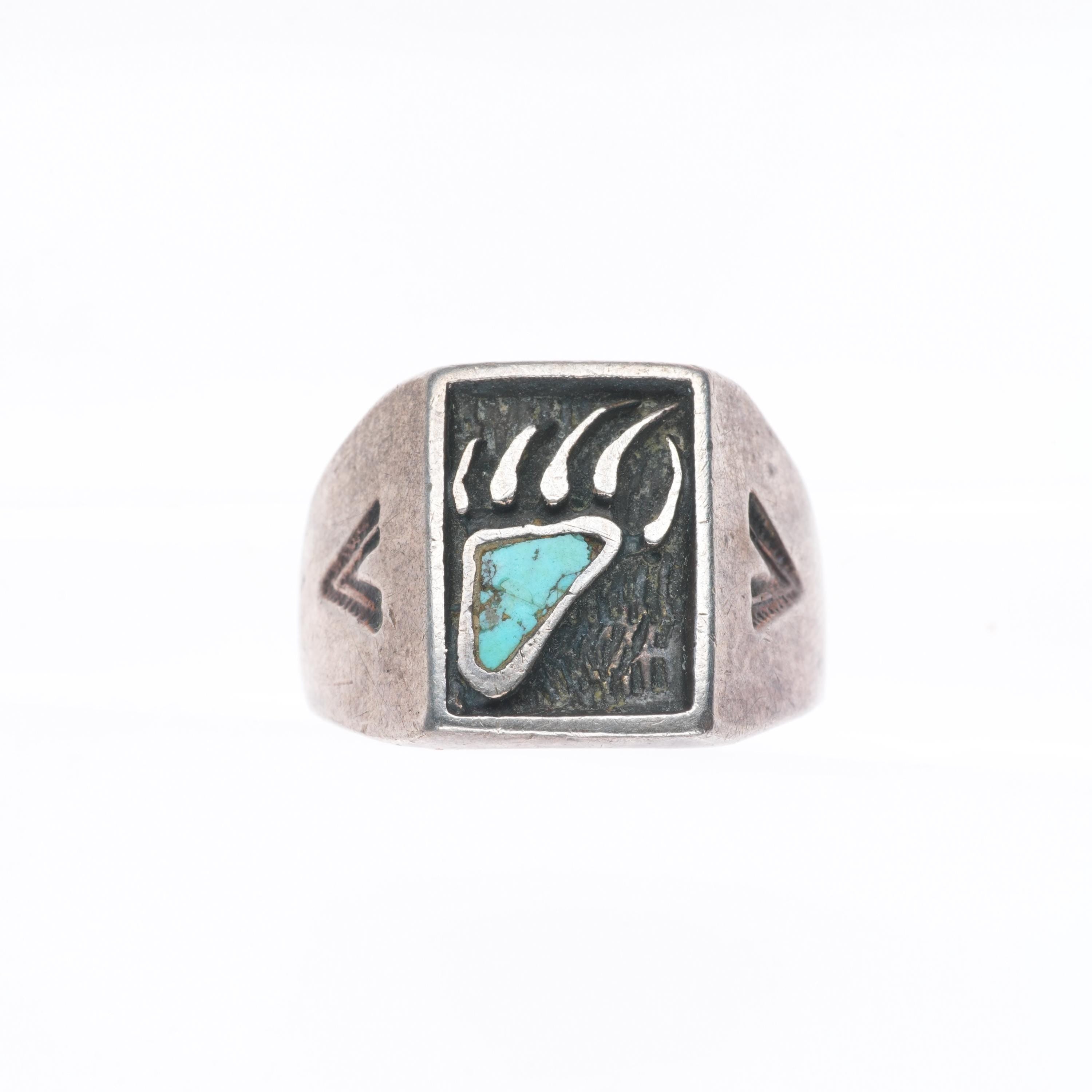 sz10.5 vintage Navajo sterling silver turquoise inlay bear paw men's ring Share WhatsApp Facebook X Pin it Messenger Email Product form $90.00 Excl. VAT 1 in stock Quantity Add to cart This item is a recurring or deferred purchase. By continuing, I agree to the cancellation policy and authorize you to charge my payment method at the prices, frequency and dates listed on this page until my order is fulfilled or I cancel, if permitted.