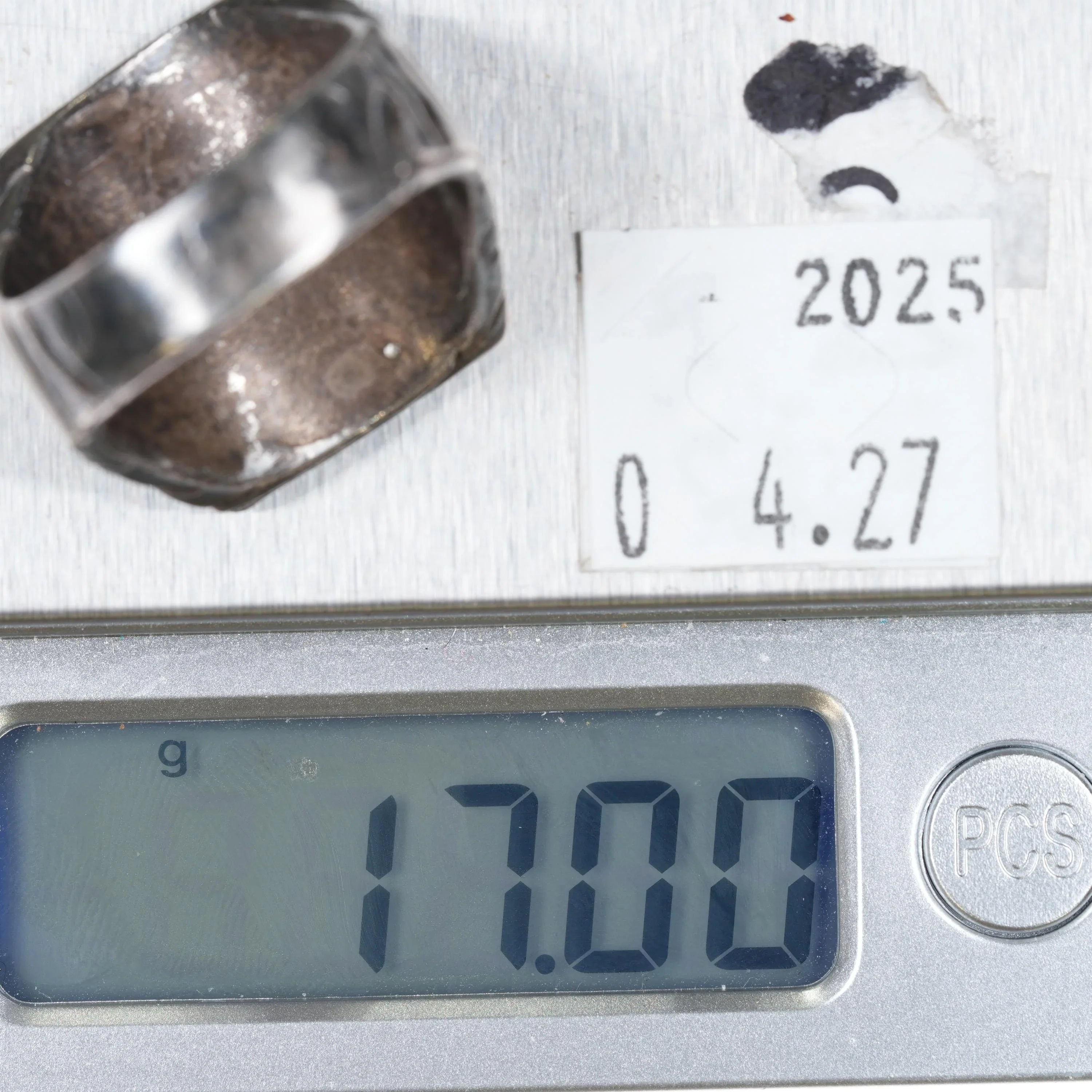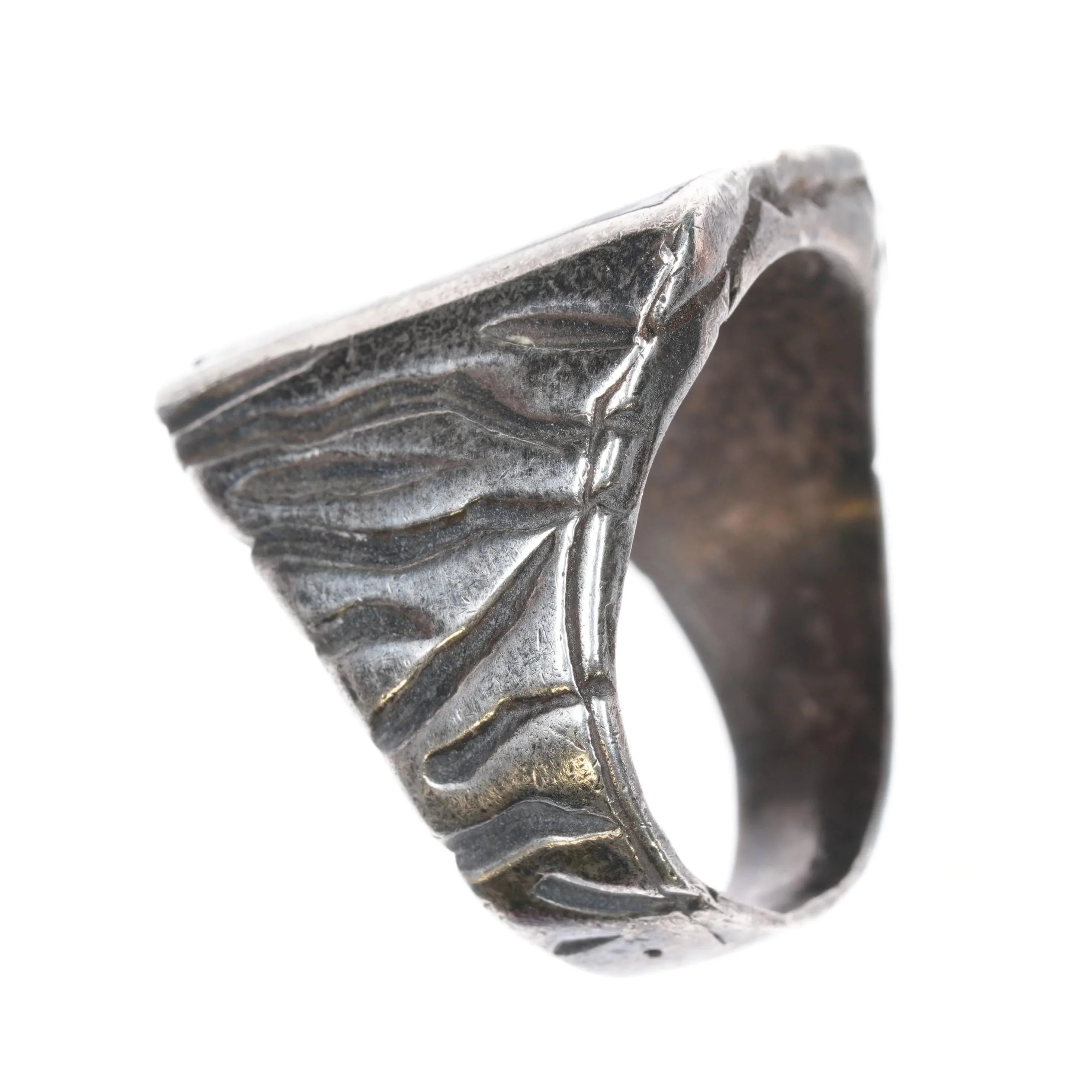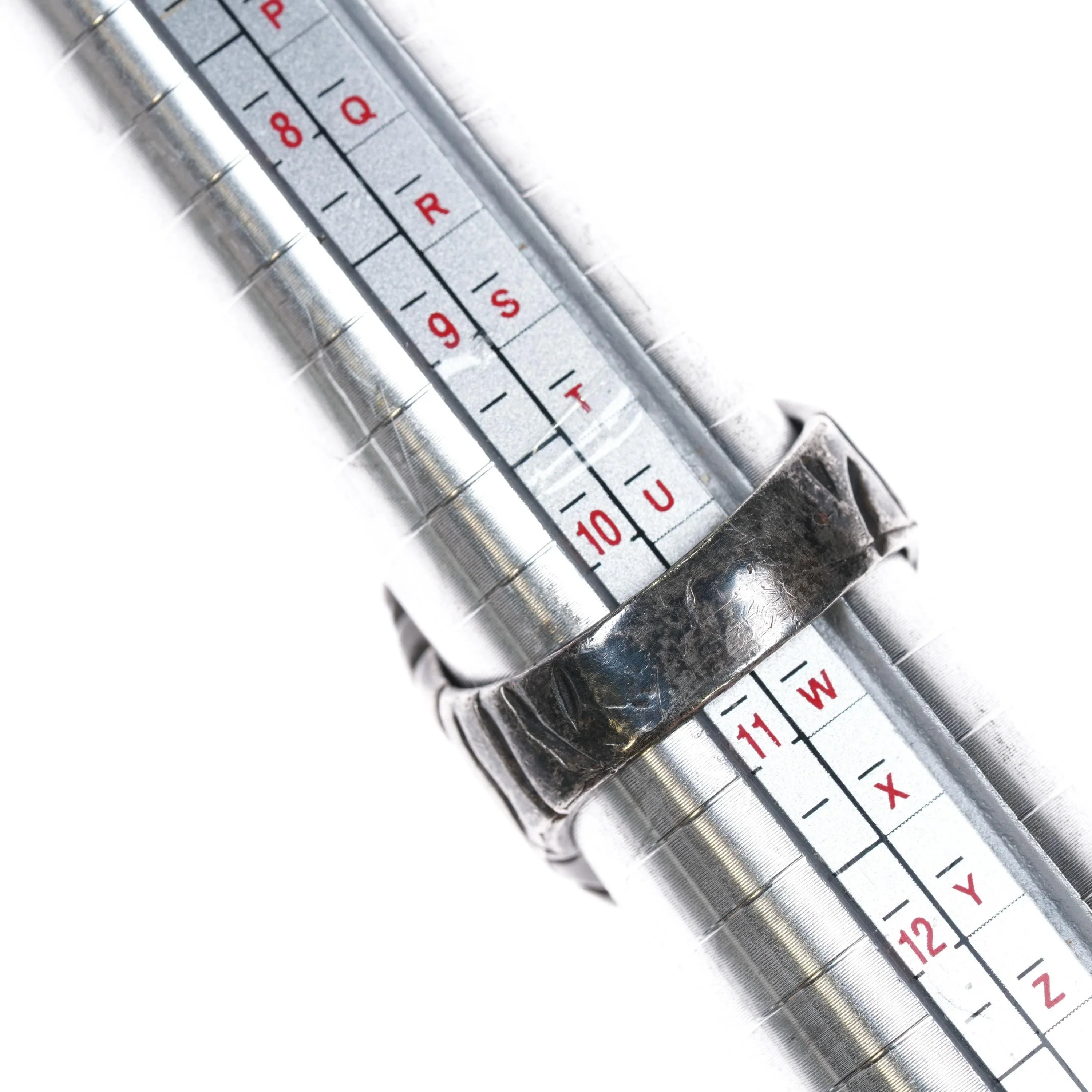sz10.75 Vintage Navajo sterling zebra striped ring with cool turquoise. Weight and measurements in pictures. No damage or issues, circa third quarter of the 20th century. Unmarked.