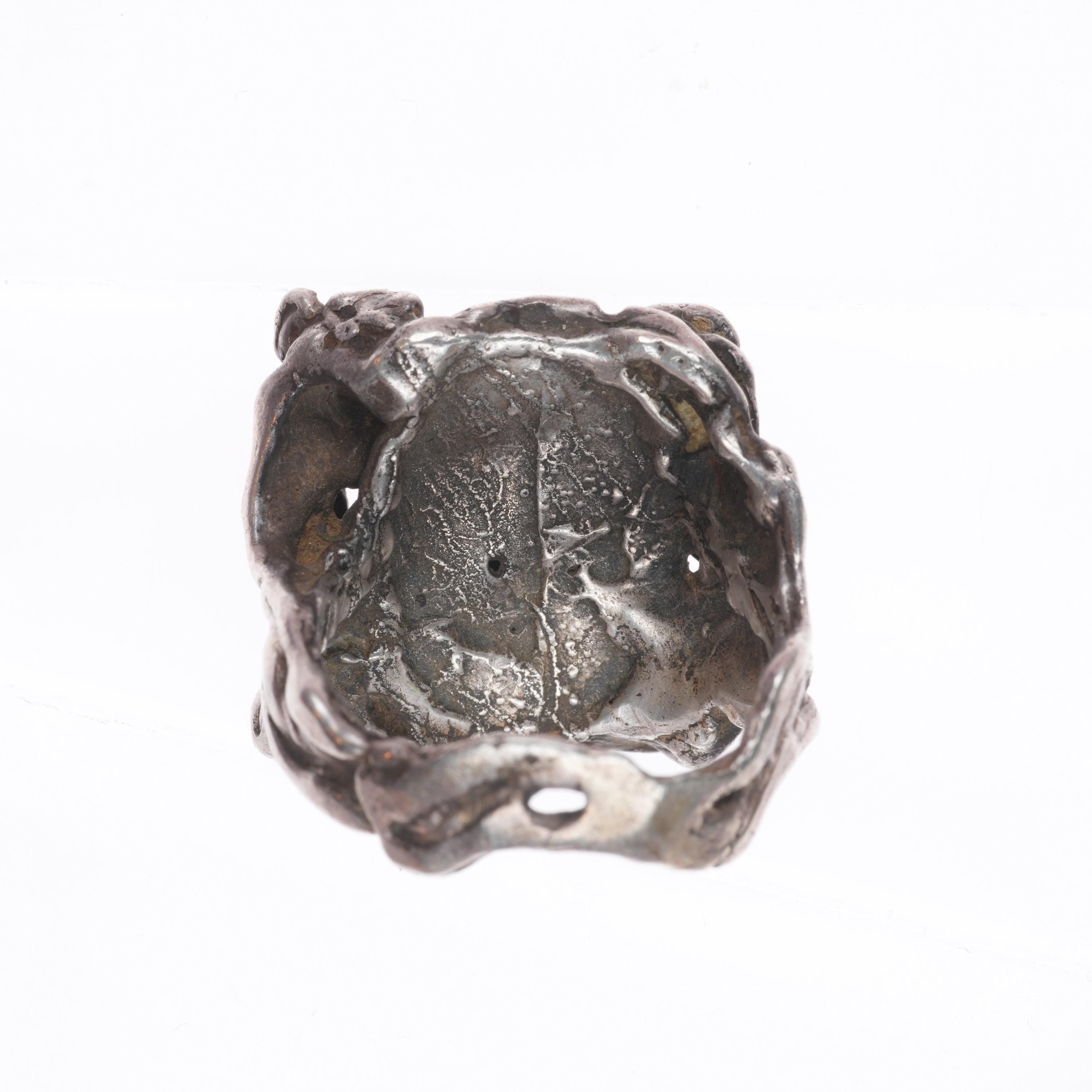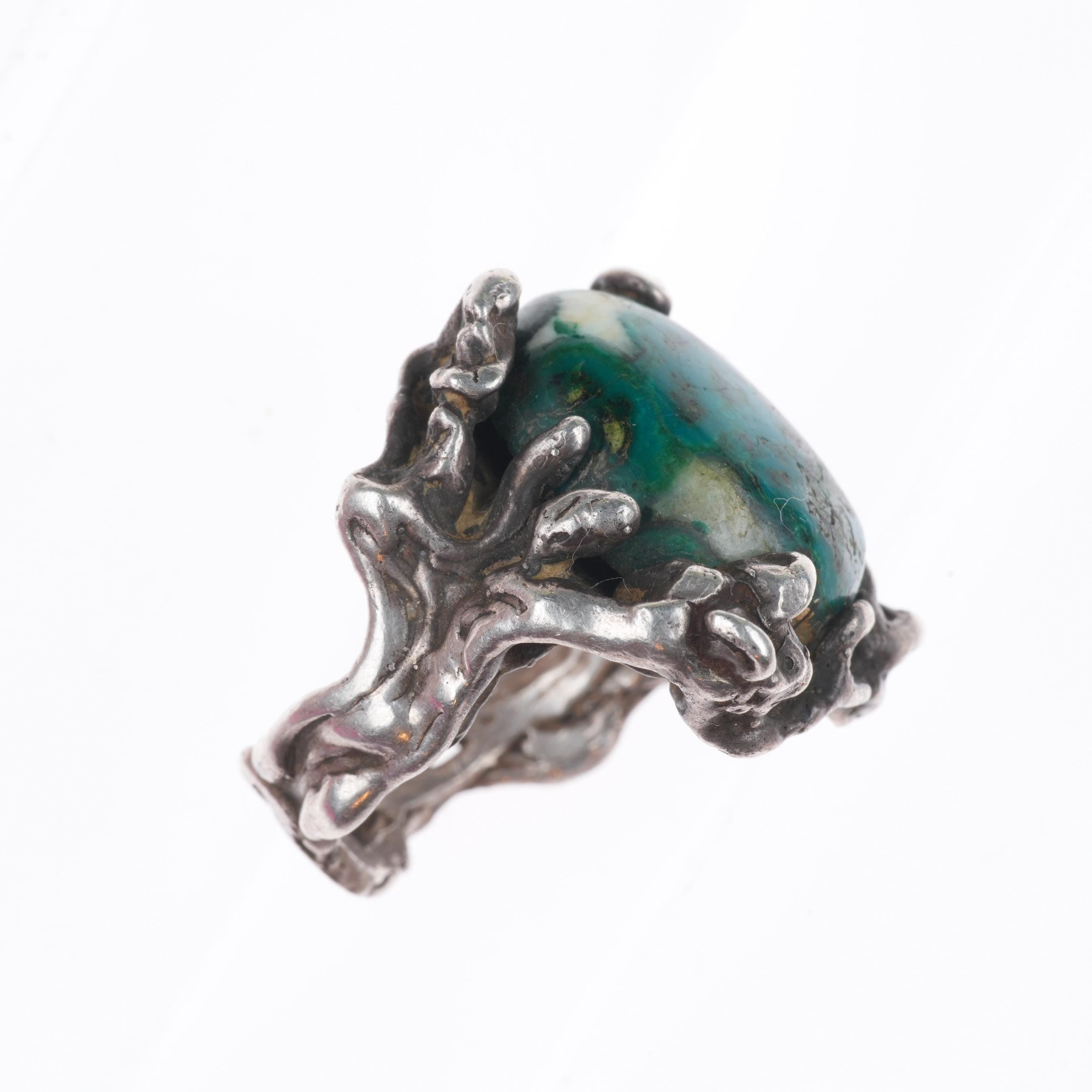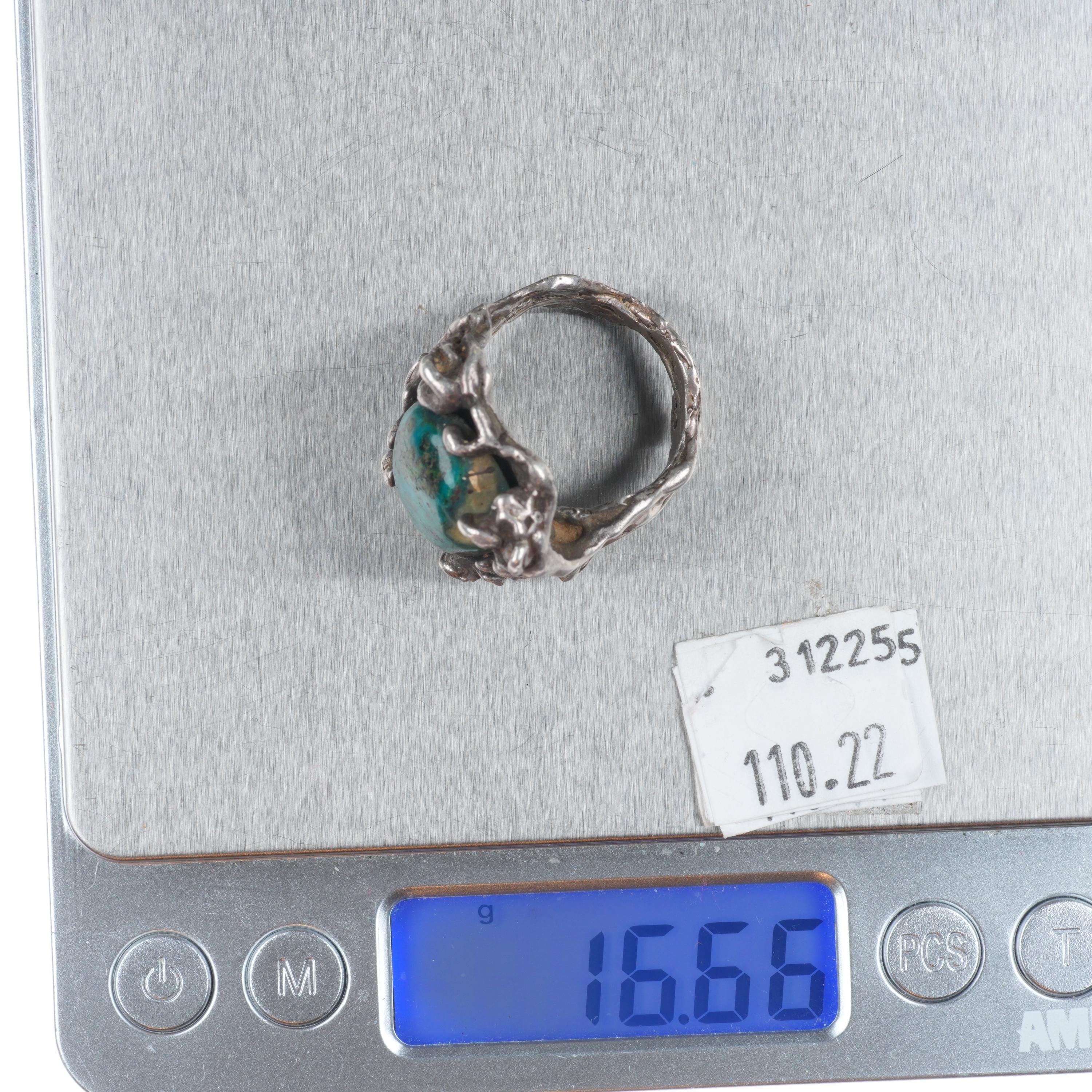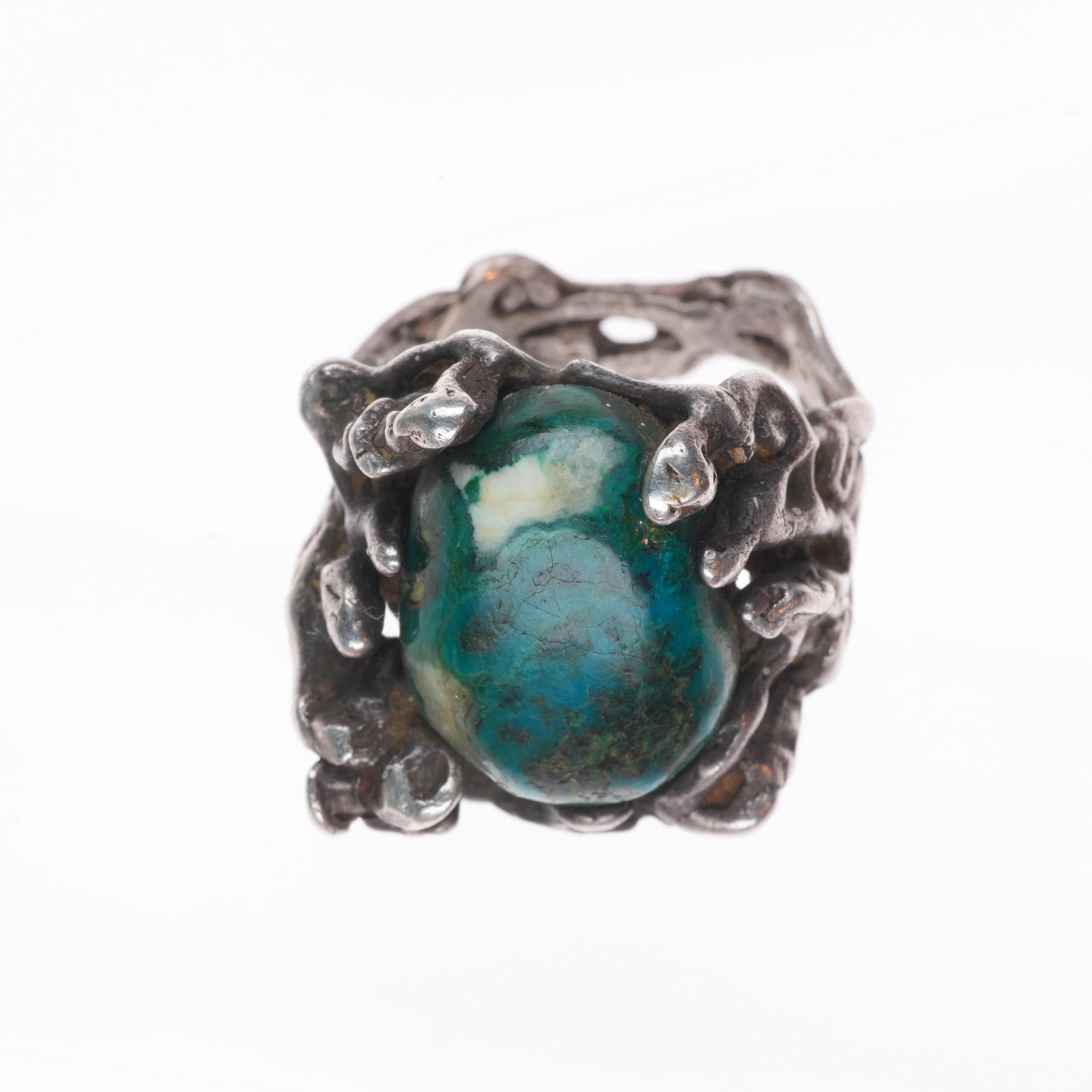 sz10 Vintage southwestern modernist brutalist sterling silver chrysocolla ring. Nice ring from the third quarter of the 20th century.