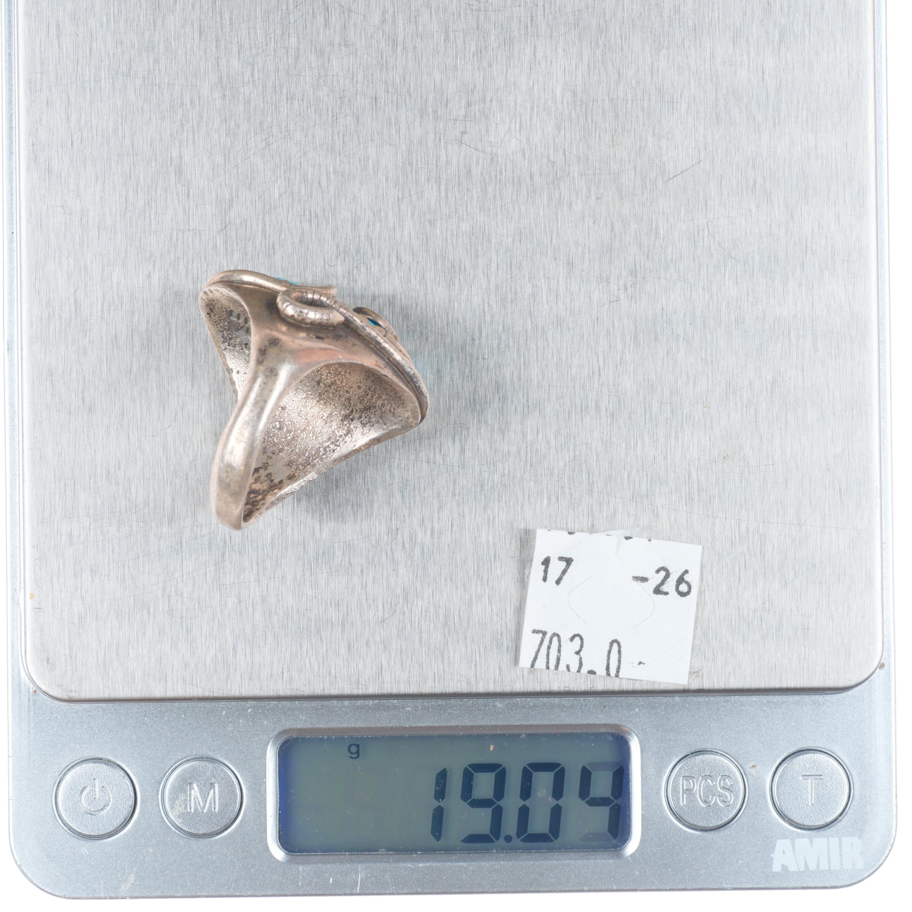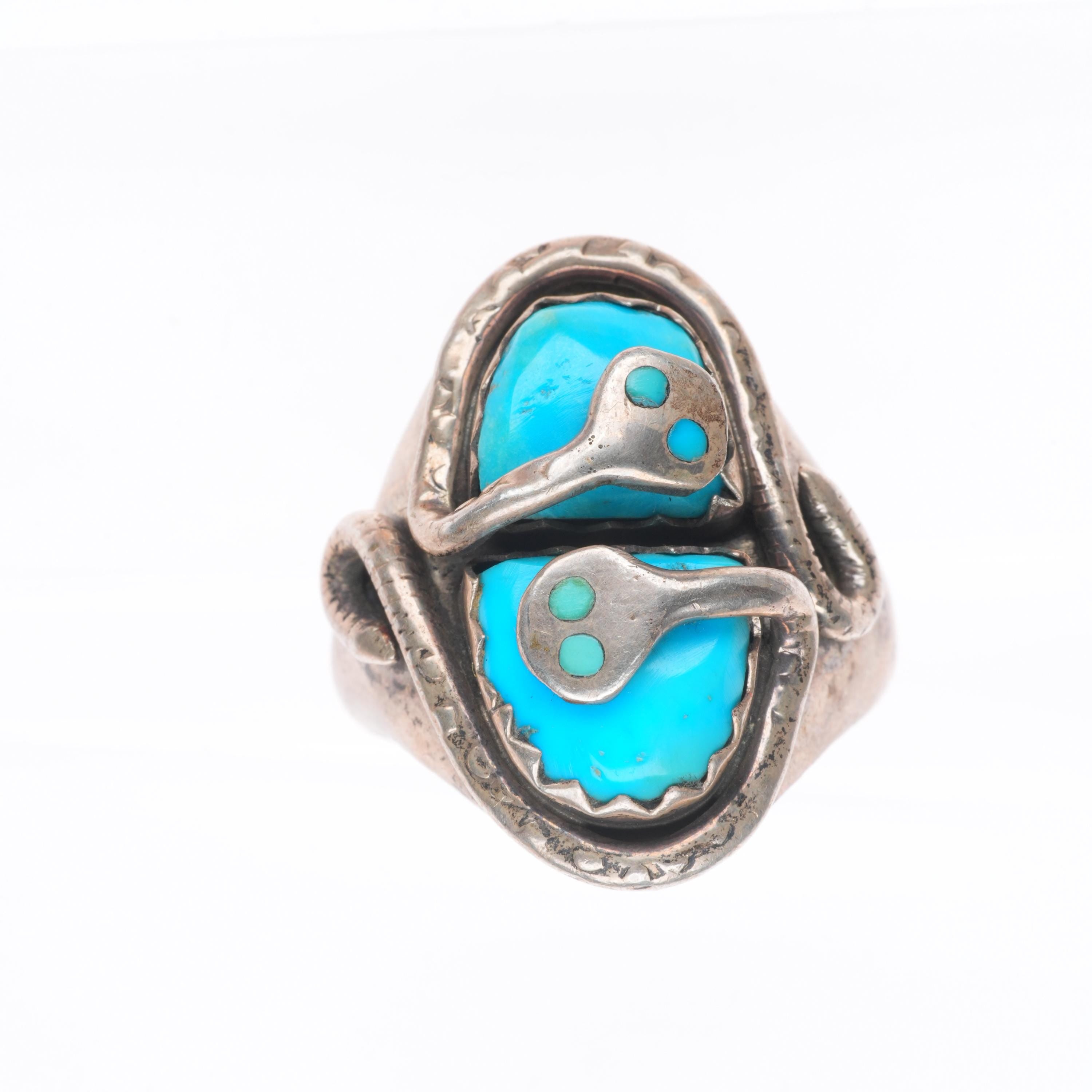 sz11.75 vintage Effie Calavaza Zuni sterling silver 2 stone turquoise snake ring Share WhatsApp Facebook X Pin it Messenger Email Product form $345.00 Excl. VAT 1 in stock Quantity Add to cart This item is a recurring or deferred purchase. By continuing, I agree to the cancellation policy and authorize you to charge my payment method at the prices, frequency and dates listed on this page until my order is fulfilled or I cancel, if permitted.