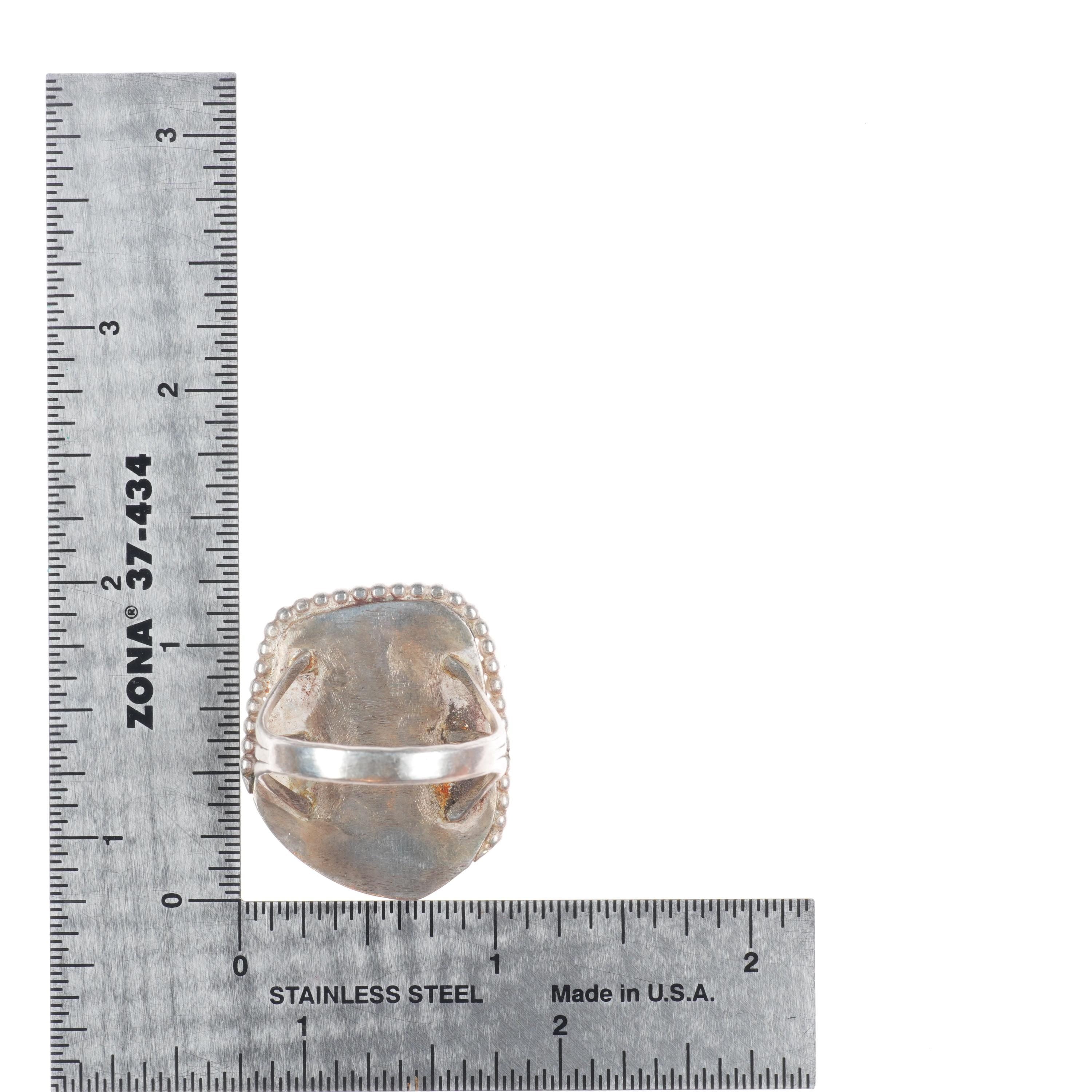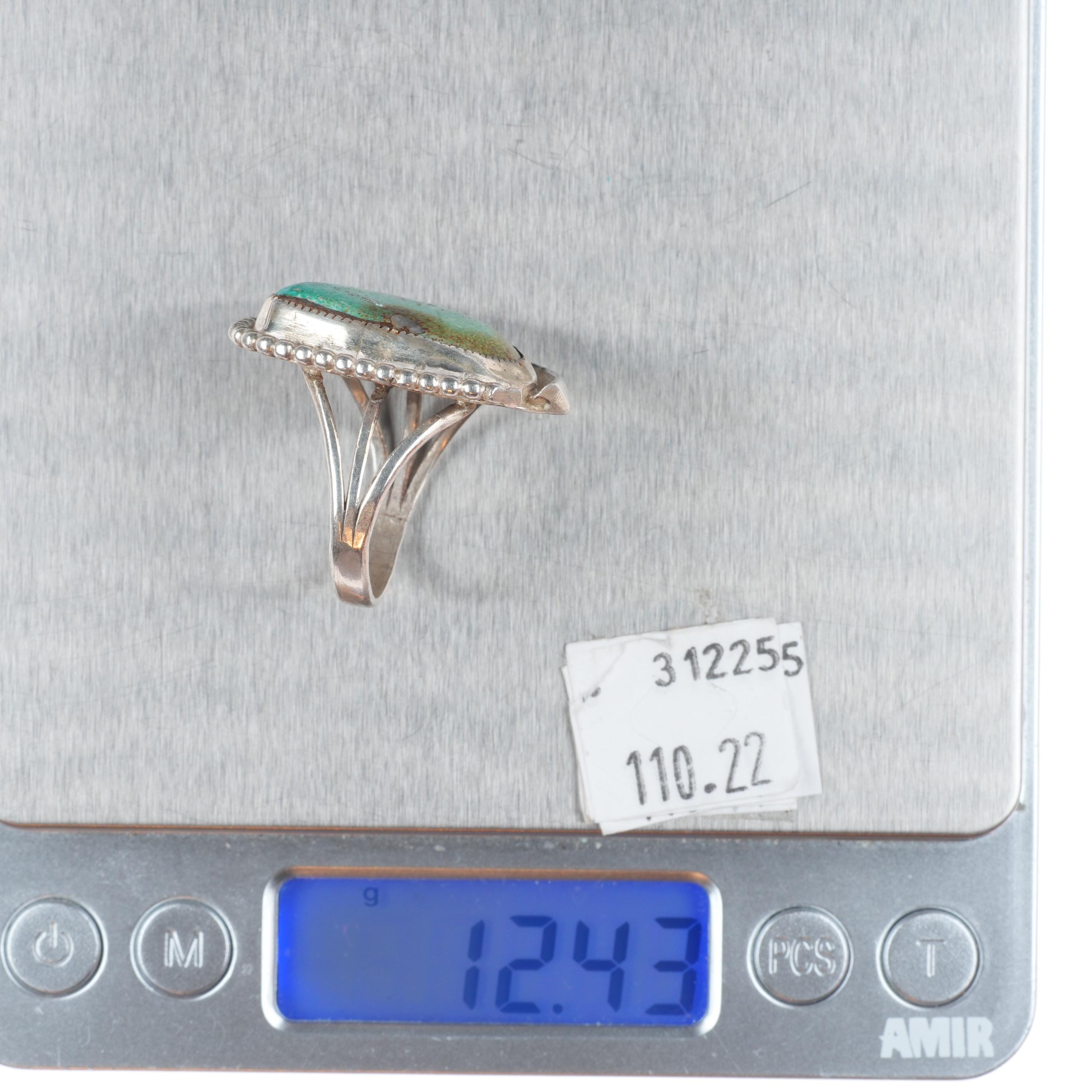 sz12 Big vintage Navajo sterling silver turquoise Men‘s ring. Nice ring from the third quarter of the 20th century.