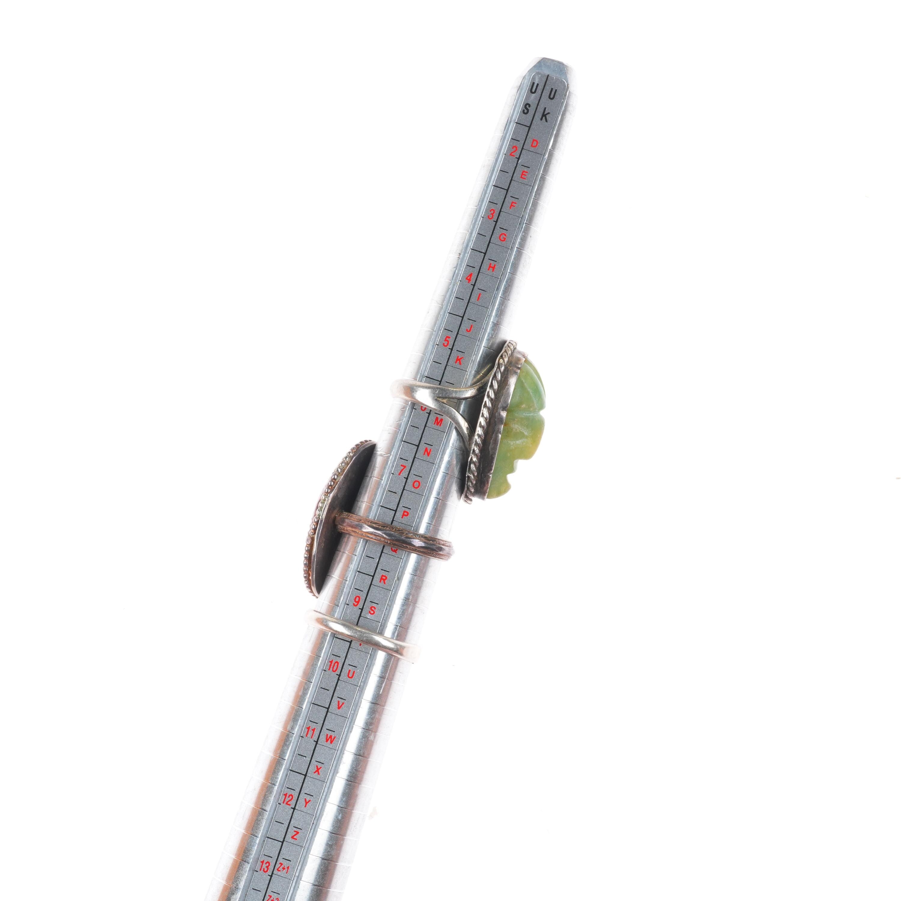 Selling the lot show, mostly Native American rings, all sterling silver, some may just be southwestern. Please examine the lot closely as I honestly am not. I looked at them, tested/verified they were silver then give them to my wife to lot up and photograph and I never look at them again. I cannot split the lots up or answer questions on specific rings as the whole point of this is to save time. May be a good deal, may be a bad deal. I'm not putting a ton of thought into it, but I did not attempt to put anything really bad in these lots. Anything with extreme damage or that I don't feel is wearable, resellable, or collectible went to the scrap pile rather than these lots.